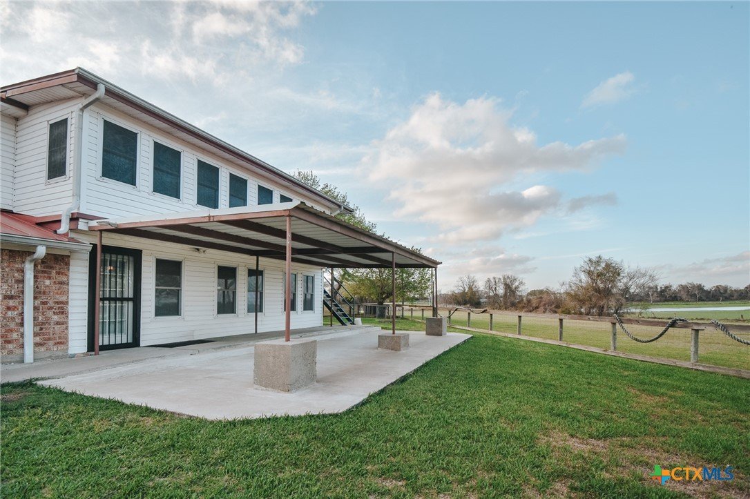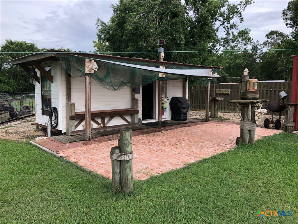 Just finished with a COMPLETE inside painting and all NEW carpets upstairs and downstairs bedrooms. Two story, 1 1/2 bath lake front home, 2,120 square feet sitting on 1/3 acre. The property behind the house is Lavaca Navidad River Authority (LNRA) owned and mowed regularly. Water well - Septic, fully fenced, pet ready. This home is storm ready with a seamless Metal roof, Hurricane Impact Windows for every window of the house. Two sheds that also have storm-protected windows. Emergency Generator that plugs into the house and powers essentials. Fireplace keeps it warm in Winter with central heat. Ceiling fans in every room keeps it cool in Summer with Central A/C. All outdoor plumbing is triple freeze protected. Two car/ One RV carport, Covered work area with storage barn and one Man Cave / BBQ area. NOTE: Update on Lake Texana water being so low. Apparently, there is damage to the dam on FM 3131 and that is why the water level is so low. Repairs are underway to the dam and the roadway 3131 is closed. When the repair is fixed water levels should resume back to normal.
