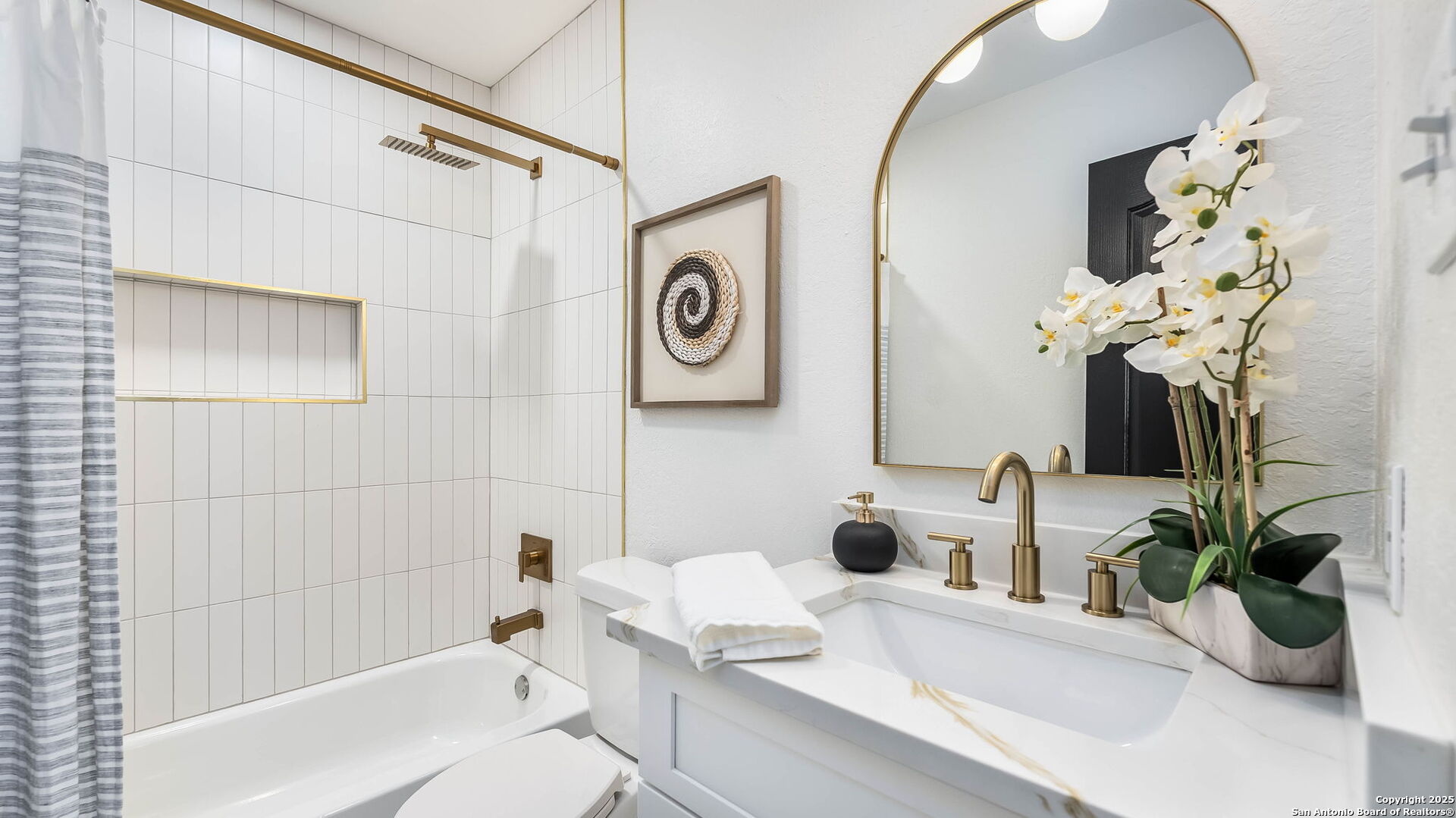 Welcome to 606 San Augustine. A beautifully updated 4-bedroom, 2.5-bath, two-story home offering 2,658 sq ft of stylish living on a desirable corner lot. Step inside to an open, light-filled layout highlighted by wide-plank flooring, recessed lighting, and modern design touches throughout. The spacious living and dining areas flow seamlessly, anchored by a striking custom accent wall and contemporary fireplace, perfect for both everyday living and entertaining. The kitchen is thoughtfully designed with crisp white cabinetry, sleek hardware, and ample storage. The large loft upstairs provide flexibility for work-from-home, play, or relaxation. The primary suite is a true retreat, featuring a spa-inspired bathroom with a freestanding soaking tub, designer tile, a walk-in shower with luxe gold fixtures, and elegant finishes that feel straight out of a magazine. Additional bedrooms are generously sized, offering comfort and versatility for family or guests. Outside, the corner lot provides added privacy and curb appeal, with room to enjoy outdoor living. Located in a growing New Braunfels community with convenient access to shopping, dining, and major roadways. Don't miss the opportunity to own this move-in-ready stunner! Schedule your private tour today!