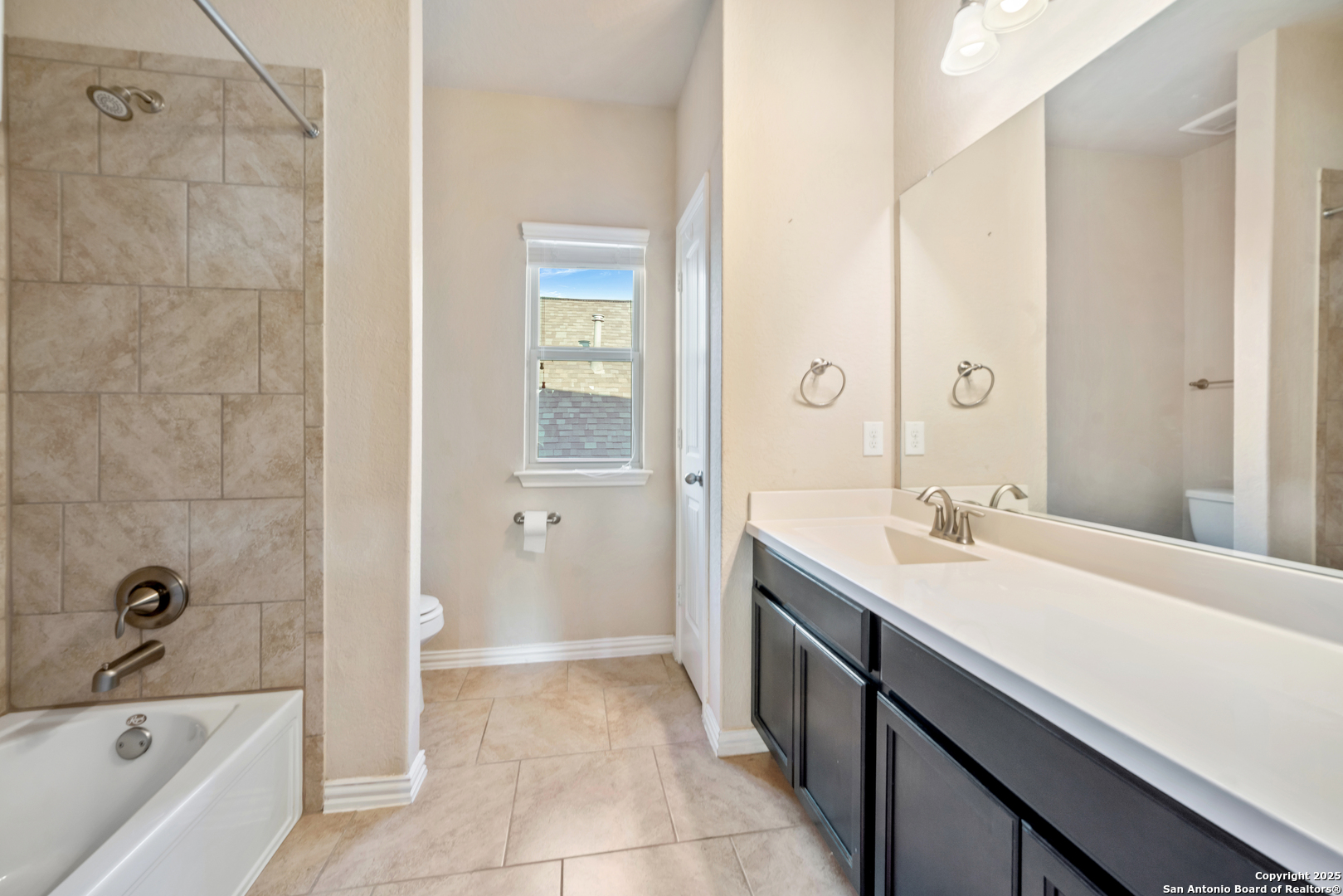 Gated Community in Wortham Oaks! Step into this spacious 5-bedroom, 3 bath, 2,827 sq. ft. home designed for modern family living. The open-concept floor plan features multiple living areas, including a large family room perfect for gatherings and an upstairs game room offering space for play, study, or relaxation. The private downstairs owner's suite provides comfort and convenience with a spacious layout for your retreat at the end of the day. Upstairs, three secondary bedrooms and a full bath offer plenty of room. Additional highlights include solar panels for energy efficiency, a water softener, and lawn maintenance included, giving you peace of mind and ease of living. Enjoy all that Wortham Oaks has to offer with two swimming pools, a fitness center, sports courts, jogging trails, and an elementary school within walking distance. With gated security and easy access to shopping, dining, and major highways, this home blends comfort, community, and convenience. Don't miss your chance to make this home yours schedule your tour today!!