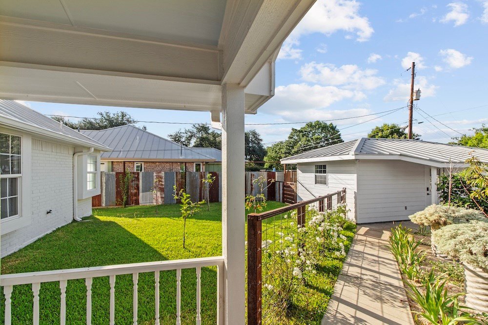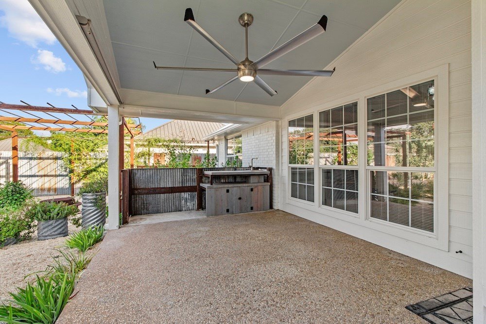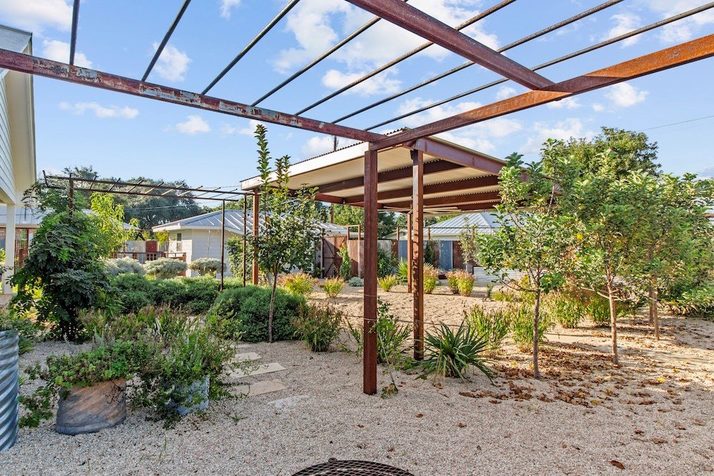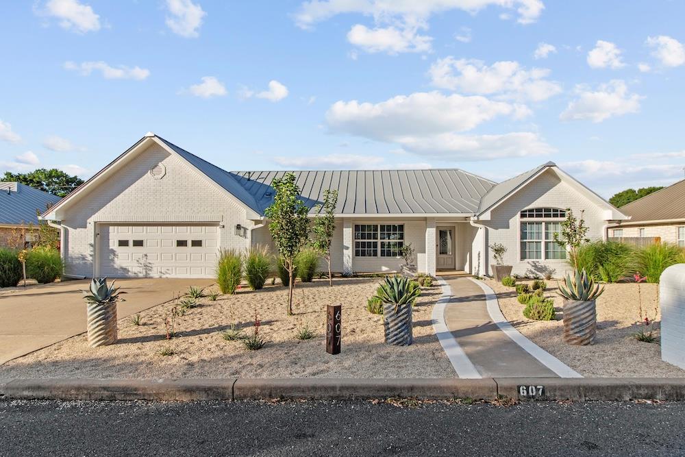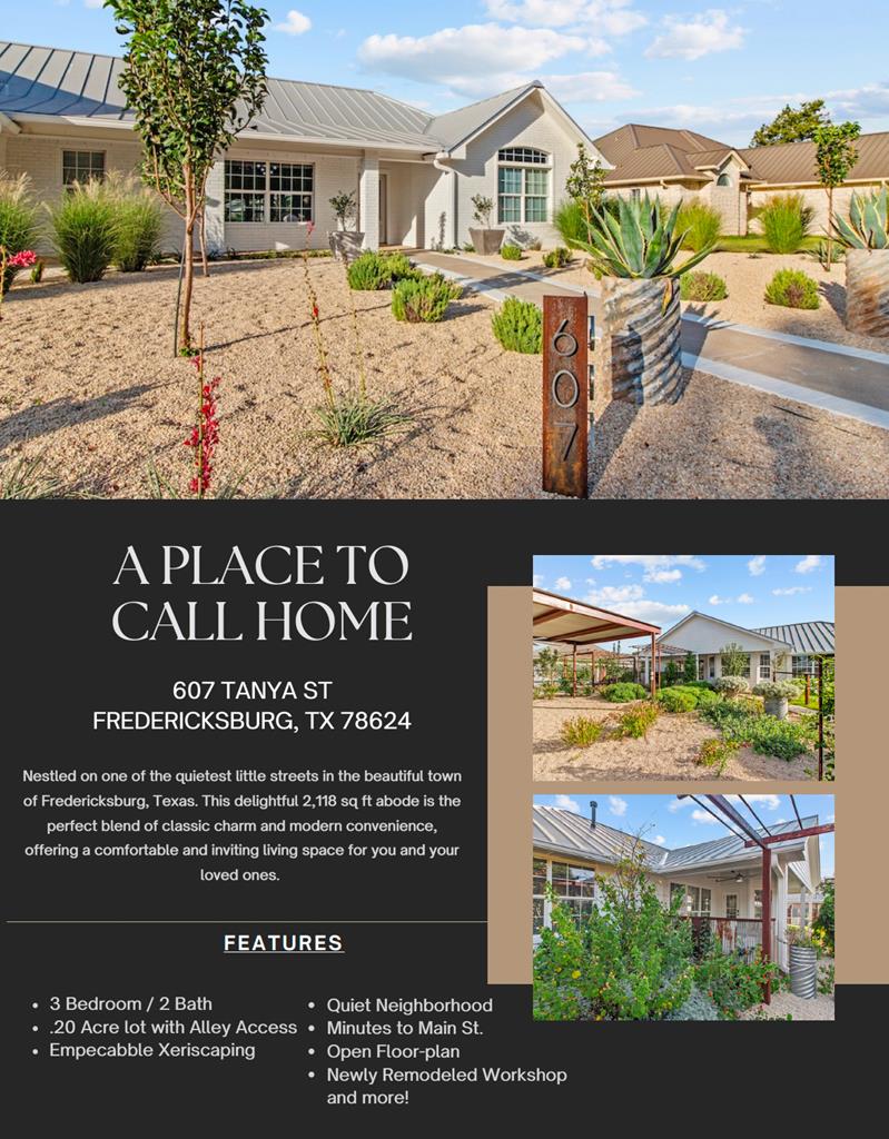 A PLACE TO CALL HOME - Nestled on one of the quietest little streets in the beautiful town of Fredericksburg, Texas. You will immediately appreciate the curb appeal of this 3-bedroom, 2-bathroom home complete with thorough updates of fresh paint inside and outside, newer stainless steel appliances in the kitchen and new fixtures throughout much of the home. This delightful 2,118 sq ft abode is the perfect blend of classic charm and modern convenience, offering a comfortable and inviting living space for you and your loved ones. Featuring all brick construction and a standing seam metal roof along with beautiful xeriscaping making this an easy home to take care of. As you step inside, you'll be greeted by a spacious and light-filled living room, adorned with large windows that allow natural light to cascade in, creating a bright and airy atmosphere. Additionally, the open floor plan connects the dining area and kitchen, making it ideal for both casual family dinners and entertaining guests. The living area boasts high vaulted ceilings, a built-in book case and attractive painted brick fireplace, all overlooking the spacious back yard which is an oasis in itself. Meanwhile, the well-appointed kitchen boasts ample storage, with a large walk-in pantry, new stainless steel appliances, granite countertops and a cozy breakfast nook all looking back into the open living area creating a delightful space for cooking adventures. There is also a well-appointed utility room with cabinetry and storage right off the kitchen and garage. The master suite offers a serene retreat with high pan ceilings, a private en-suite bathroom that includes both a walk-in shower and a walk-in tub, plus a huge walk-in closet with built-ins providing plenty of space for any wardrobe. The split floorpan offers convenience with the additional two bedrooms located on the opposite side of the house, each filled with light and warmth and sharing a guest bathroom with a shower/tub combo. The additional bedrooms are versatile and can easily adapt to your specific needs such as a home office, art studio or sewing room, you name it.OUTSIDE - The sprawling .29 acre lot, approximately 91 X 138 feet, makes for a breathtaking oasis boasting low-maintenance native plants and meticulously designed landscaping. The extended covered back porch is your personal escape, perfect for enjoying your morning coffee or afternoon beverage while soaking in the serene beauty of the backyard. While most of the yard is artfully xeriscaped, the side yard features lush grass making an ideal spot for pets. Whether you are relaxing with a beverage or picking tomatoes in the back yard you'll relish every moment spent in this private back yard paradise. WORKSHOP - Beyond the attached two-car garage, a detached workshop awaits offering abundant and versatile space for storage, hobbies, and DIY projects. Currently, remodeled and converted to a workout room with new walls, flooring and a mini-split AC, the space makes a perfect spot to embrace your hobbies, whether that be a woodworking shop, an artist studio or any creative pursuit you envision. In addition, the property provides alley access with access to an additional carport and tool shed! All this on a spacious .29 acre lot conveniently located minutes away from historic Main Street while offering a peaceful and quiet setting with minimal traffic. Don't miss the chance to make this exceptional property your own and experience the timeless charm of living in Fredericksburg, Texas.