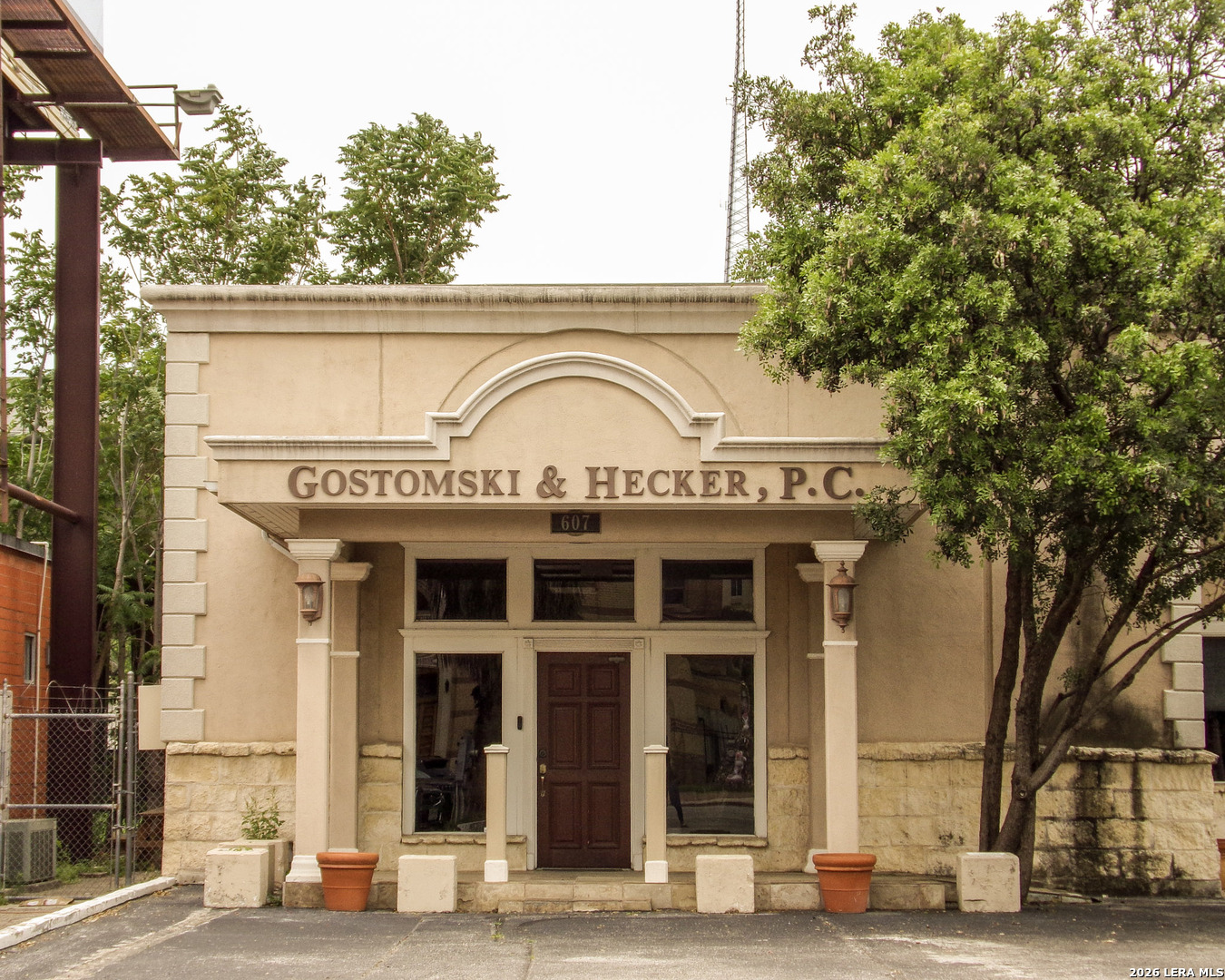 Positioned on .46 acres in the heart of downtown, this commercial lot offers location, flexibility, and future upside. With easy access to I-35 and just minutes from the Bexar County Courthouse and surrounding downtown amenities, the visibility and accessibility are hard to beat. The property currently features two office suites separated by a garage bay. Both tenants are month-to-month with a 90-day termination, creating immediate flexibility for an owner-user or developer. There is also potential for tenants to lease back at current rates, providing income while plans are finalized. Suite 607 includes five offices, two conference rooms, reception area, kitchen, utility/print room, and two restrooms. Suite 603 offers two offices, reception, and a restroom, plus patio access. The central garage accommodates 2-4 vehicles and is tall enough for RV storage with access from both the parking lot and Suite 607. Ideal for investors, developers, or owner-occupants looking to secure a prime downtown footprint with income potential now and development upside later. Seller financing available with negotiable terms.
