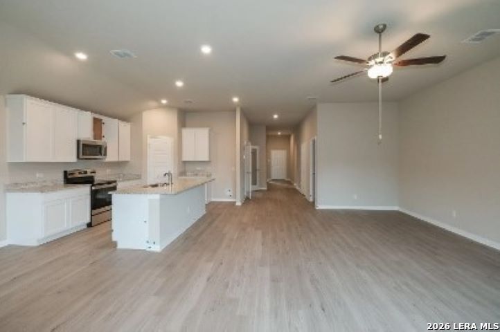 Welcome to this beautifully built single-story home located in Seguin's desirable Greenfield community. Constructed in 2024, this 2,055 square foot residence offers a thoughtfully designed open-concept floor plan with 4 Bedrooms and 3 full Bathrooms plus Office providing both comfort and functionality. The light-filled interior features low-maintenance laminate wood flooring throughout the main living areas and a spacious living and dining combination that flows seamlessly into the kitchen. The well-appointed kitchen includes stainless steel appliances, granite countertops, ample cabinetry, and generous counter space-ideal for both everyday living and entertaining. The private owner's suite offers a relaxing retreat with a walk-in closet and en-suite bath featuring a double vanity and walk-in shower. Secondary bedrooms are well-sized and provide flexibility for family and guests. Step outside to enjoy a beautifully landscaped yard with a covered patio, perfect for outdoor gatherings or quiet evenings at home. Conveniently located within walking distance to Jim Barnes Middle School and Koennecke Elementary, and just minutes from shopping, dining, and the local hospital, this home offers the perfect combination of modern living and everyday convenience.