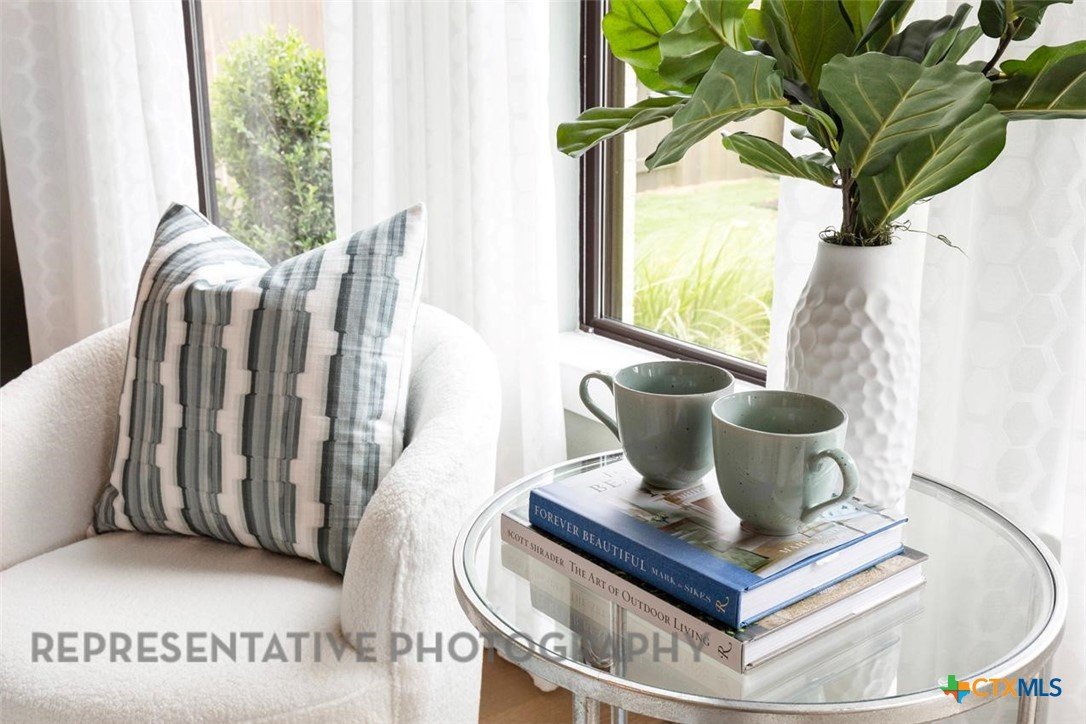 Stunning new home featuring 4 bedrooms, 4 full bathrooms, large study with spiral staircase for dramatic effect! This home features numerous upgrades including vaulted ceilings, extended patio, soaking tub at primary suite, smart home features plus full sod and sprinkler system!