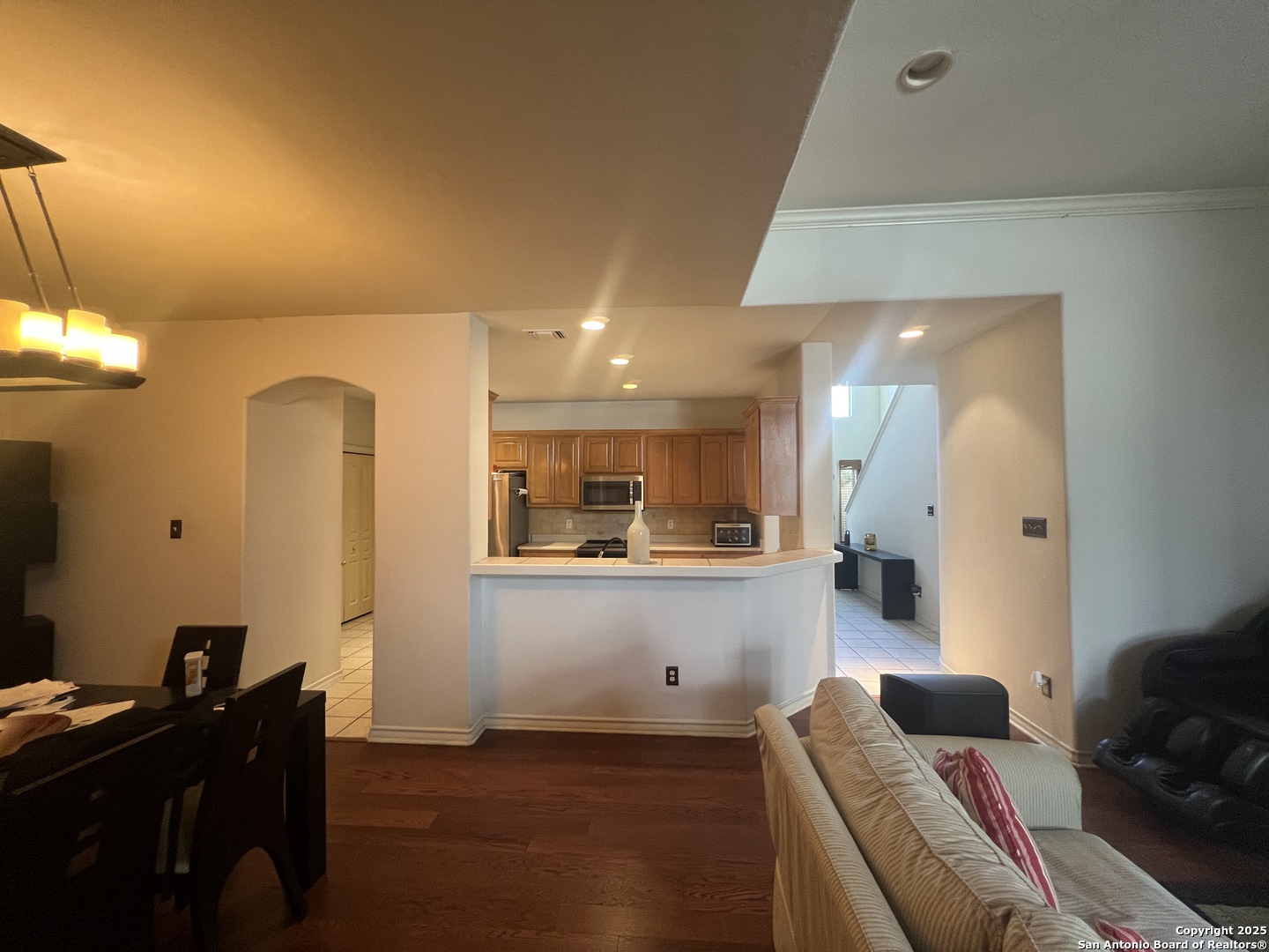 Beautiful 3 bedroom, 2.5 bath townhome located on a quiet cul-de-sac in the exclusive Sonterra Country Club community. Mediterranean-style villa with gate-guarded entrance, high ceilings, fresh paint. Front Yard maintenance is included through the HOA. Property can be leased furnished or unfurnished. Refrigerator, washer, and dryer convey with the lease. Prime location in the Sonterra/Stone Oak area-close to gyms, shopping, restaurants, gas stations, and top medical facilities including Methodist Stone Oak and Baptist Emergency. Everything you need is just minutes away. Membership at The Club at Sonterra is required to access amenities such as golf, swimming pool, tennis, gym, and more.
