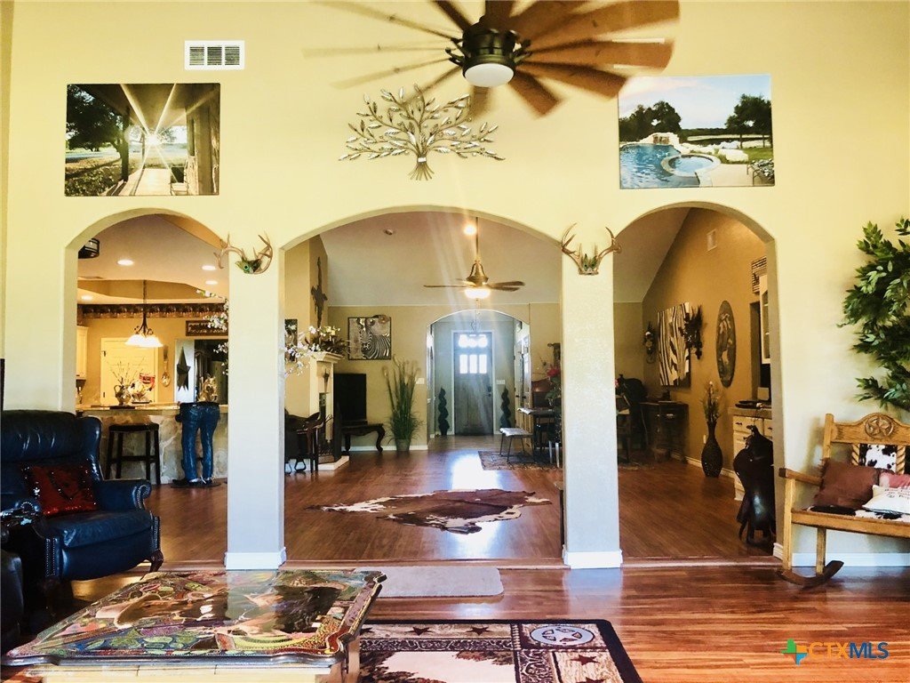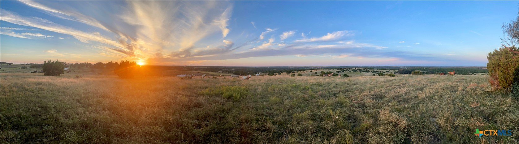 Discover this breathtaking 367-acre exotic game ranch ideally located just 6 miles west of Hwy 183 between Burnet and Lampasas, approximately 1 hour from Austin and 35 minutes from Killeen. Fully enclosed with a high perimeter fence, this exceptional property offers privacy, beauty, and endless recreational opportunities. The land features approximately 140 feet of elevation change, creating stunning long-range views, multiple elevations, and a scenic mesa. The ranch is richly wooded with oak and pecan trees, complemented by flowing wet-weather creeks and two natural spring areas scattered throughout the property. Rolling terrain and elevated vantage points provide unforgettable sunrises and sunsets across the landscape. Well-equipped for ranching and equestrian use, improvements include a covered arena, horse barn with two stalls, an exotic game barn with four stalls, a large tractor barn, a storage barn, and miles of beautiful equestrian trails to enjoy. Wildlife enthusiasts will appreciate that exotic animals are negotiable in the sale, including scimitar antelope, red deer, sika deer, whitetail deer, and aoudad. At the heart of the ranch sits a stunning 4,200± sq ft rock home, featuring a heated pool with waterfall, ideal for entertaining or relaxing while enjoying the panoramic Hill Country views. A container home is also on the property and is negotiable in the sale, offering additional guest accommodations. This rare Central Texas ranch combines natural beauty, luxury improvements, recreational versatility, and prime location—a truly exceptional opportunity.
