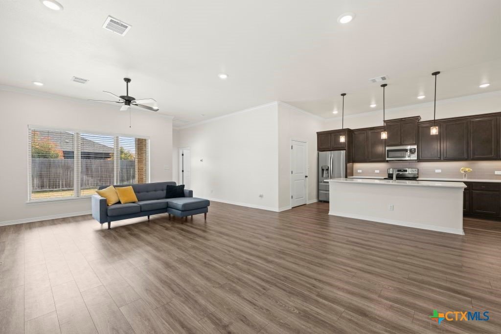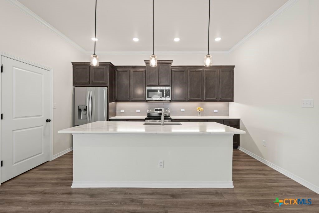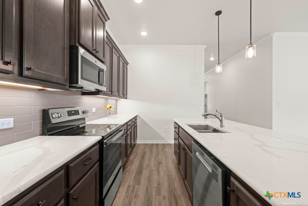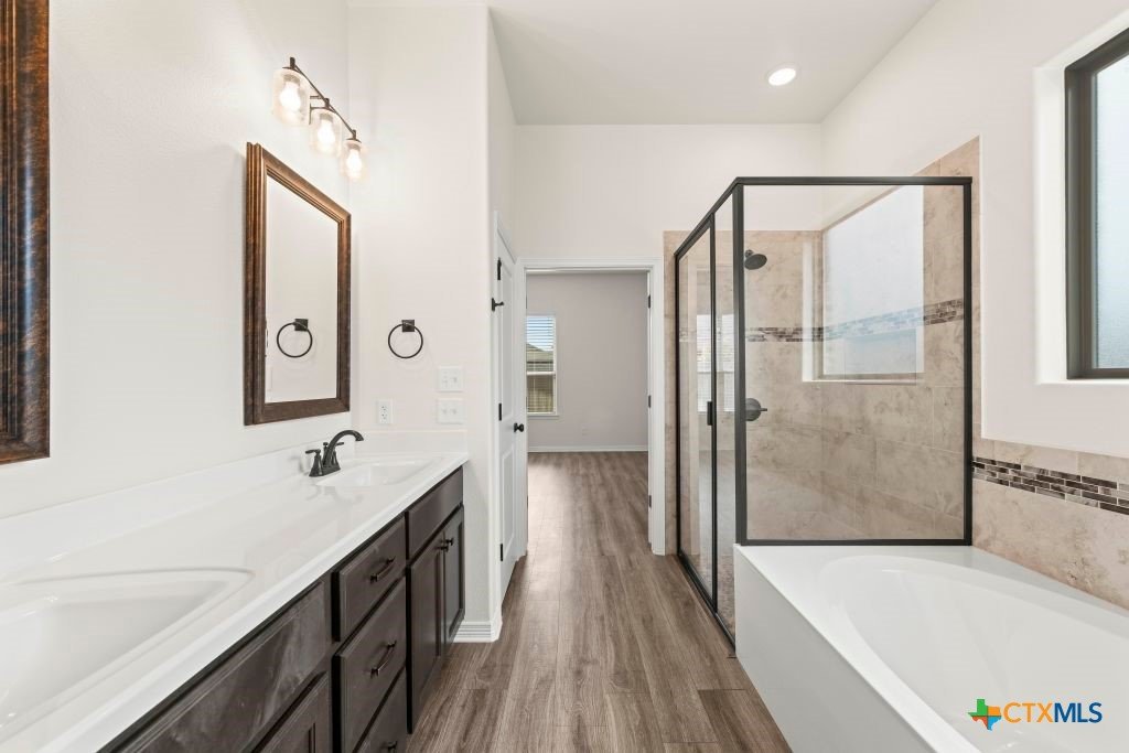 Seller is offering $10,000 for buyer's closing cost or interest rate buy down !!! This 4-bedroom home features a versatile flex space, 2 full bathrooms, covered patio and 3-car garage with sleek epoxy flooring. The open-concept living, dining, kitchen is complimented by a large quartz covered island. Retreat to the spacious master suite and enjoy the relaxing garden tub or separate shower. The remarkable master closet provides ample storage and organization. Home has no carpet. Matte-finished laminate flooring adds value throughout the home. Being well positioned in the Bella Terra community gives easy access to BSW Hospital, shopping, and dining. You'll also enjoy the playground and pool just in time for summer. Built by Carothers Exec Homes, this Hondo floor plan is 4-sides brick.