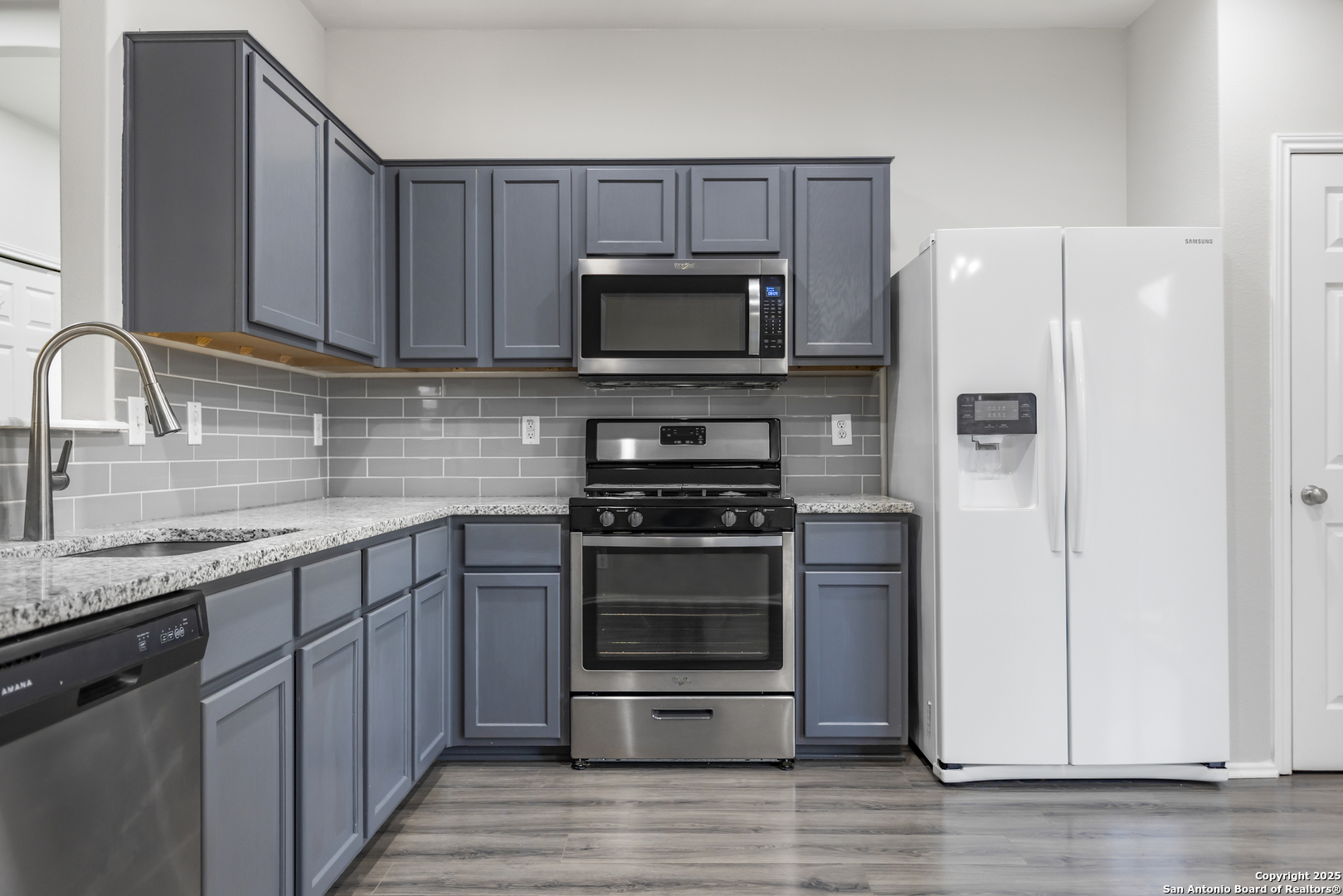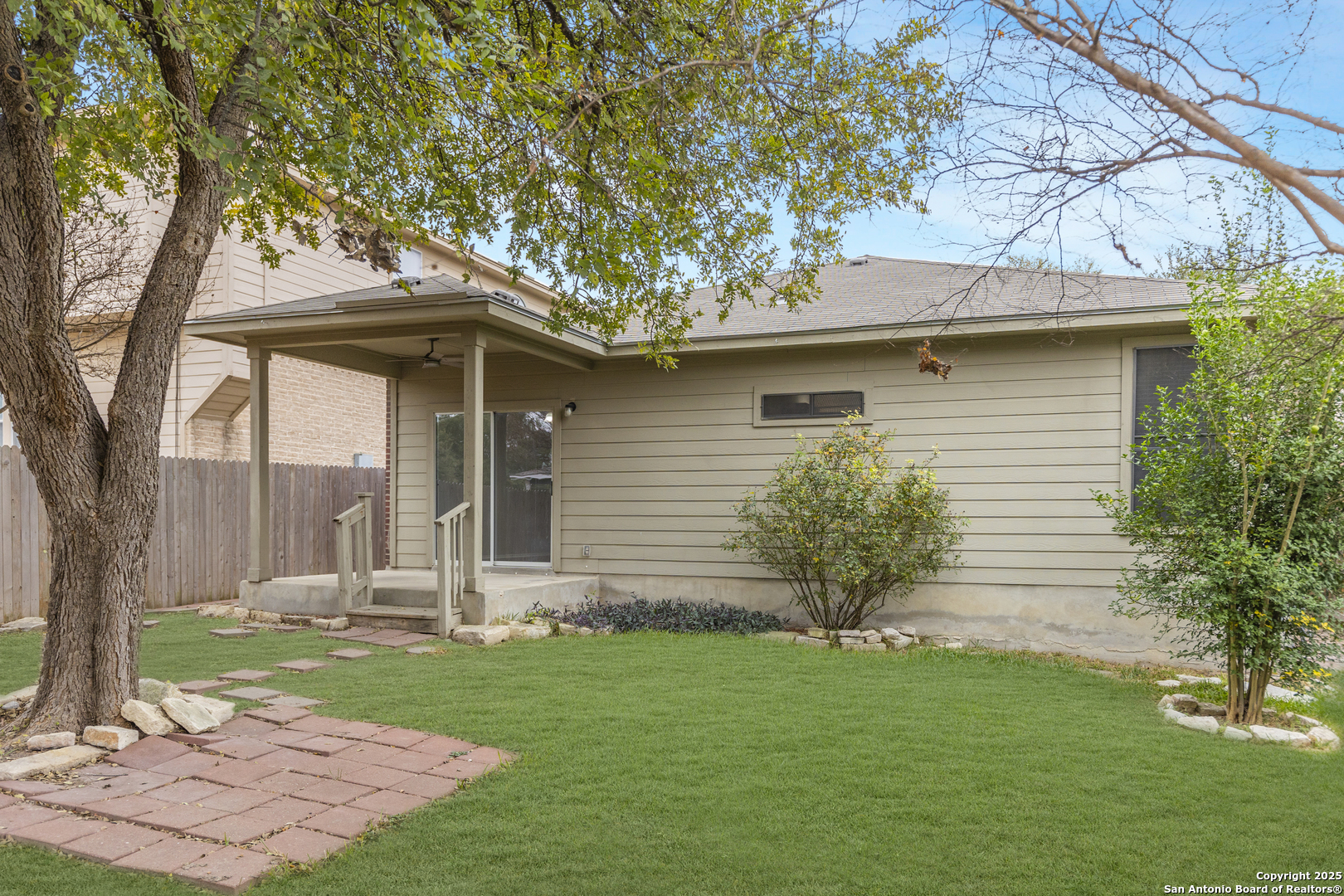 Stylish updates, great character, and a prime Alamo Ranch location. This home checks all the boxes. This move in ready 3 bedroom, 2 bath home offers an open layout with updated LVP flooring, fresh paint, granite countertops, and modern navy cabinetry paired with a gray tile backsplash and gas range. Just off the primary suite is a versatile flex room, ideal for a home office, nursery, library, or sitting area. The primary bedroom features two closets, while the secondary bedrooms include charming trim details that add character throughout. Enjoy a spacious, private backyard with mature trees and a covered patio, plus a two car garage, all conveniently located near schools, parks, shopping, and H-E-B in one of Alamo Ranch's most desirable neighborhoods.
