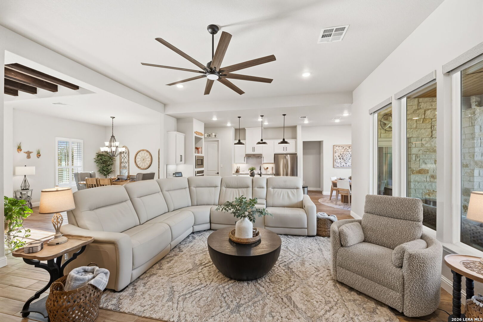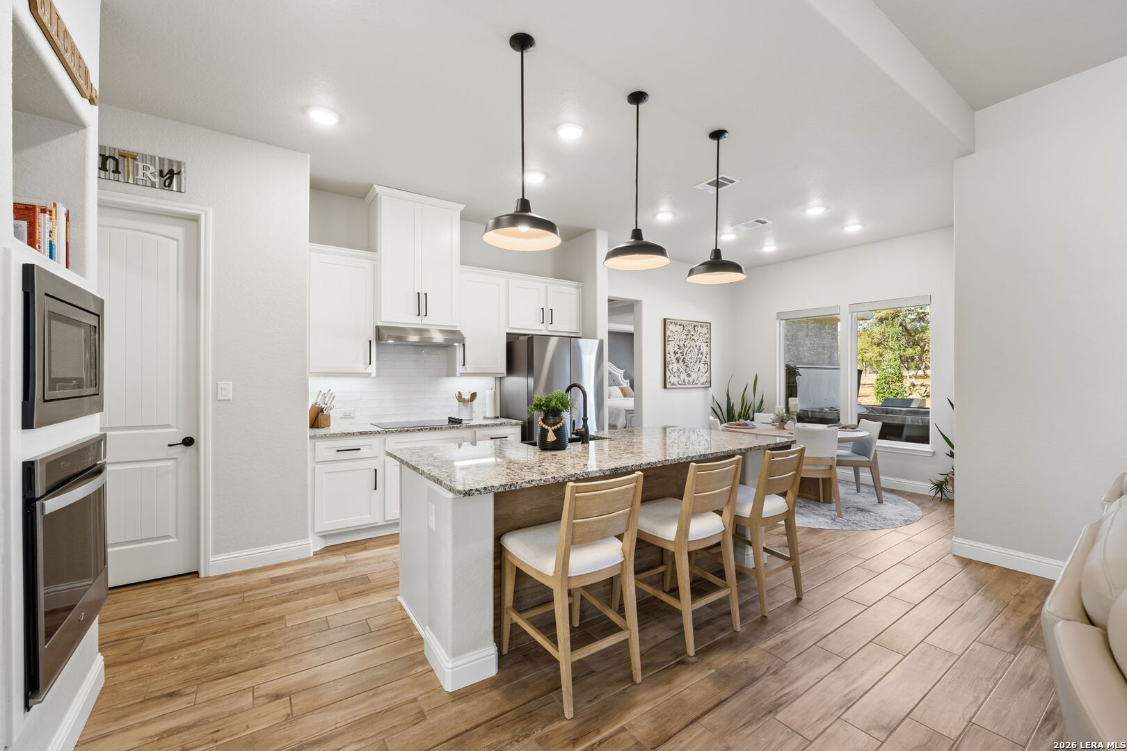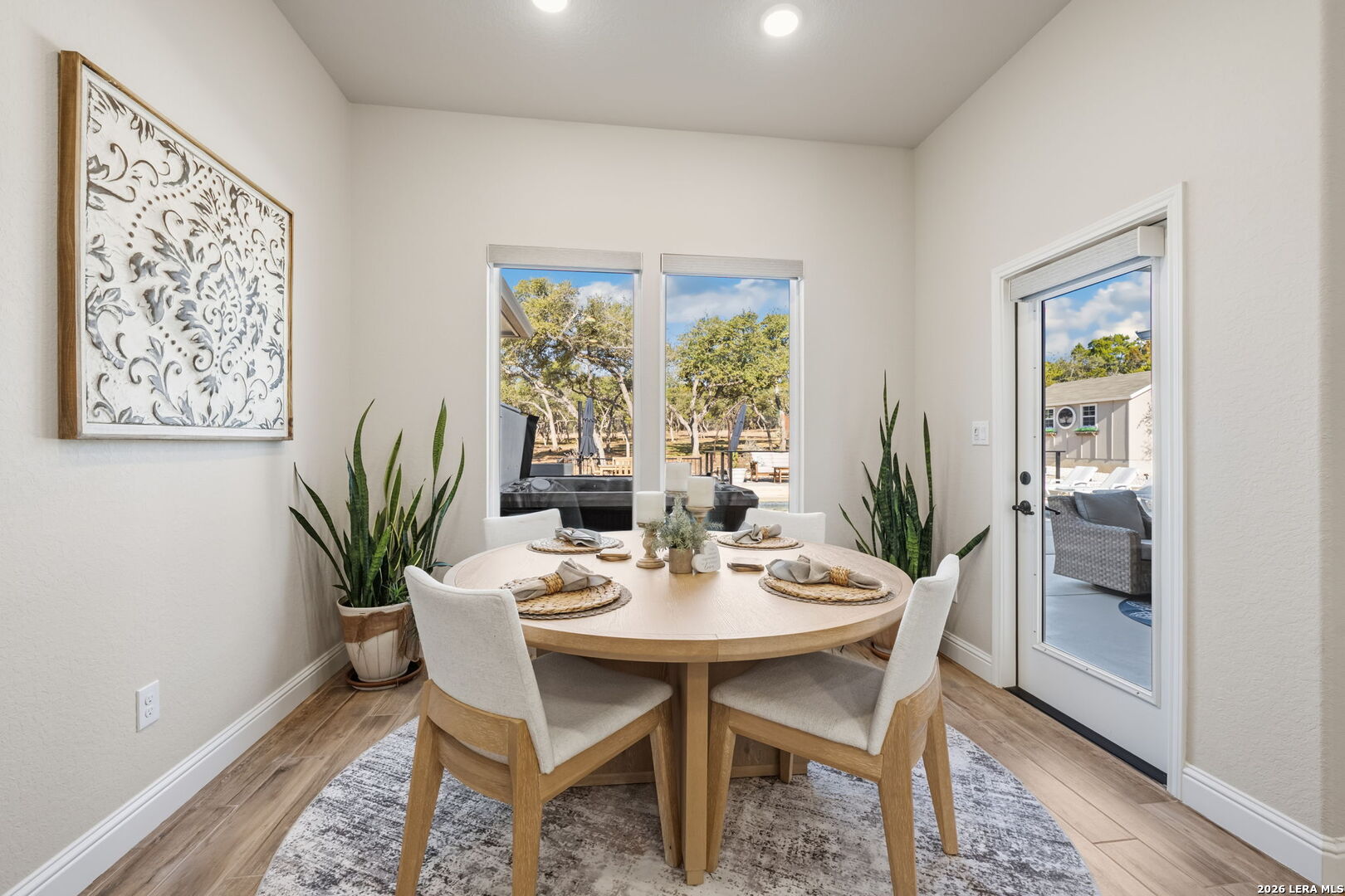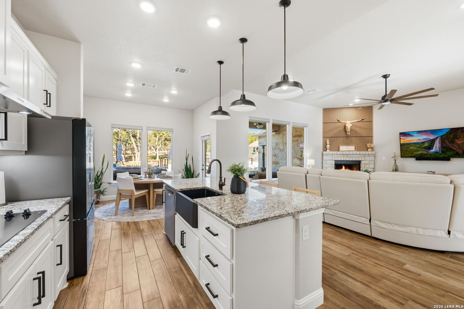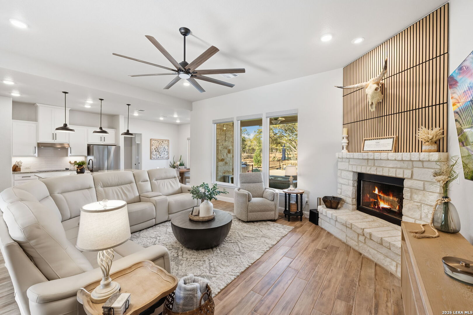 You found it... the perfect blend of comfort, craftsmanship, and Hill Country living! Welcome to 611 Cielo Vista, a thoughtfully upgraded retreat that blends comfort, craftsmanship, and exceptional outdoor living just off the southern shore of Canyon Lake. This 4-bedroom, 3-full bathroom home was completed in 2022 and has been enhanced with extensive improvements that elevate both everyday living and entertaining. The open floor plan boasts wood plank tile and real wood floors, complemented by custom plantation shutters and Wi-Fi/remote controlled Hunter Douglas blinds that offer style and effortless light control. The garage features a sleek poly-coated floor, adding durability and a clean finished look, perfect for your workout facility or man cave. The backyard is a true resortstyle oasis. A stunning pool with elegant rodiron accents, a cool deck surface, and an inviting hot tub, making it ideal for relaxation or hosting guests. Both the pool and hot tub were added 2 years ago! Expanded cement patio spaces, beautiful rock work and the irrigation system add to the incredible landscape. Clear of all cedar trees, the land has an abundance of live oak and fruit trees and is private looking out the front or back. A full metal perimeter fence, gutters, hard wired alarm system, and a whole-home water softener add functionality and peace of mind. The additional outbuilding, designed with stucco and board and batten to match the house, provides flexible space for storage, hobbies, or a workshop. Located in Ensenada Shores, you'll enjoy resort-style living with top-notch amenities, including a lakefront park and pavilion, walking and biking trails, playground, and neighborhood swimming pool. 611 Cielo Vista isn't just a home... it's a lifestyle!