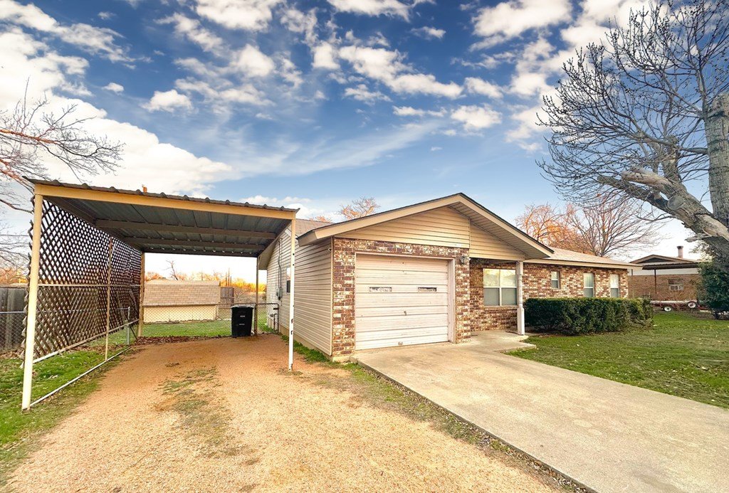 Located in a well-established Fredericksburg neighborhood, this home has two bedrooms, one bathroom, and an enclosed garage that could serve as a potential third bedroom. The kitchen is well laid out with plenty of counter space and opens to the dining area. The cozy living room and utility room add extra convenience. Outside, you'll find a one-car carport, a spacious covered patio, and a storage shed-perfect for extra storage and outdoor fun.