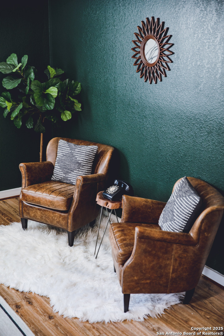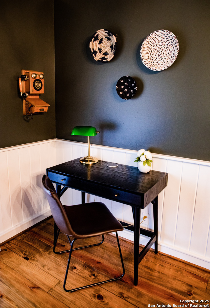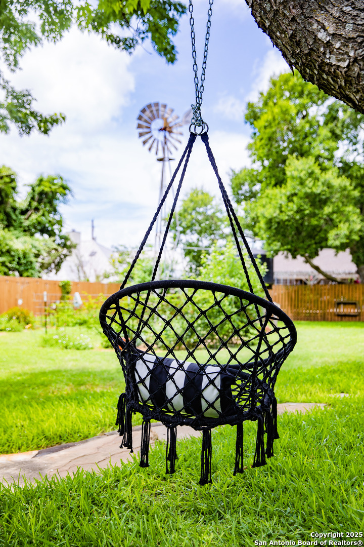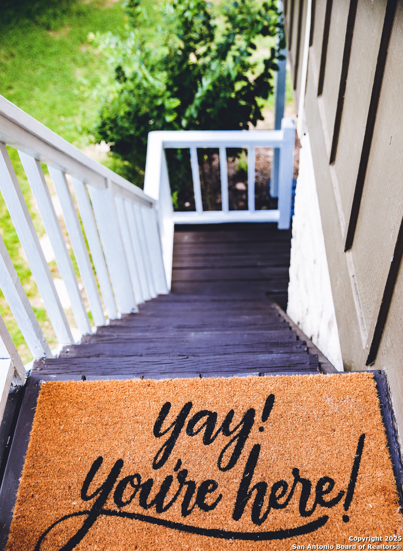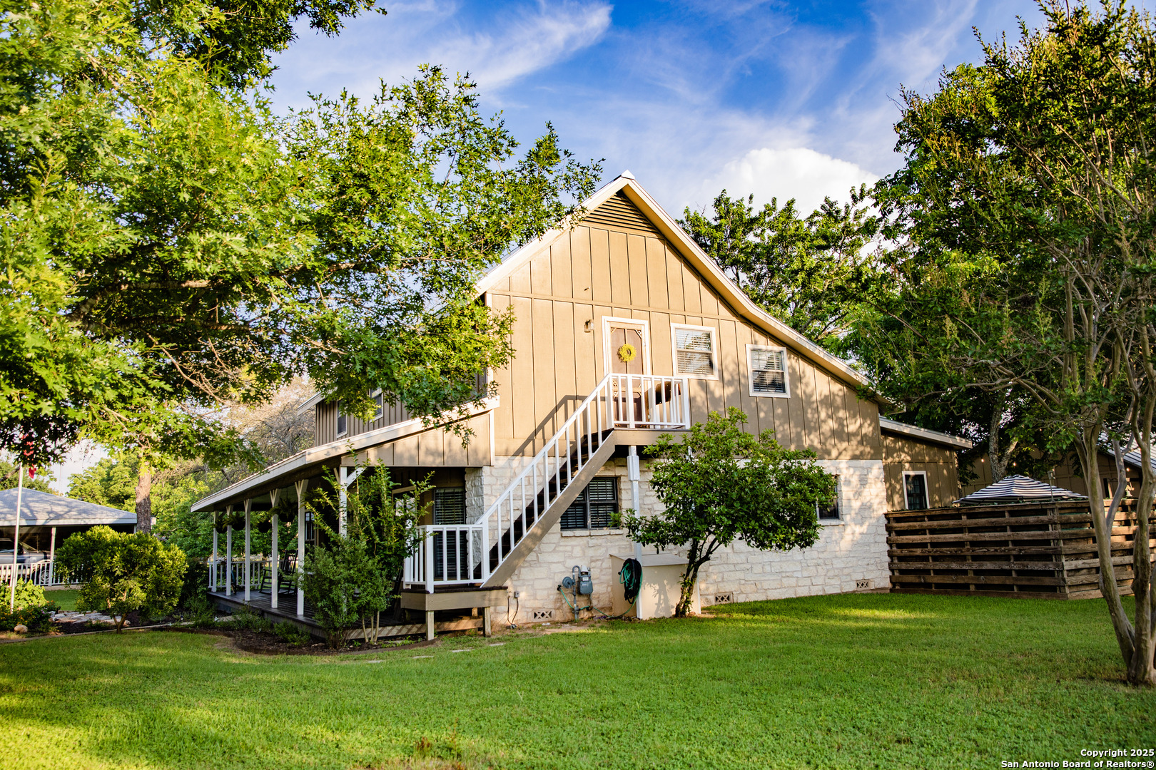 Discover this delightful Fredericksburg residence, ideally located just minutes from Main Street, boutique shopping, award-winning dining, and the heart of Texas Wine Country. Brimming with Hill Country charm, the home offers an airy, open layout filled with natural light and thoughtfully designed living spaces. Curb appeal abounds, welcoming you into a spacious home perfect as a full-time residence, weekend retreat, or high-performing vacation rental. The downstairs features a generous living area, dedicated dining room, and an updated kitchen with stainless steel appliances and granite countertops. Just off the kitchen is a bath, and office nook. The primary bedroom with en suite bath is also located on the main level for easy living. Upstairs, you'll find a large open bedroom and an additional bedroom with its own en suite bath-ideal for guests or family. Situated on an expansive lot, the property includes a three-car garage (with one bay outfitted as a workshop and a half bath), an attached carport, and an operating gym. For charm, a windmill connected to a rainwater collection system for irrigation. The generous outdoor space is perfect for entertaining, gardening, or simply relaxing under the wide Texas sky. Majority of furniture and decor can be sold with the property. This well-located Fredericksburg gem offers comfort, character, and exceptional potential-an opportunity not to be missed.