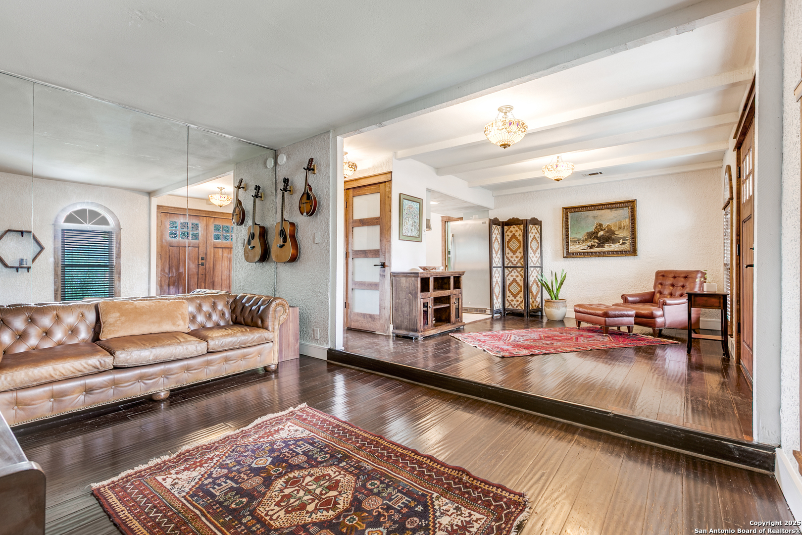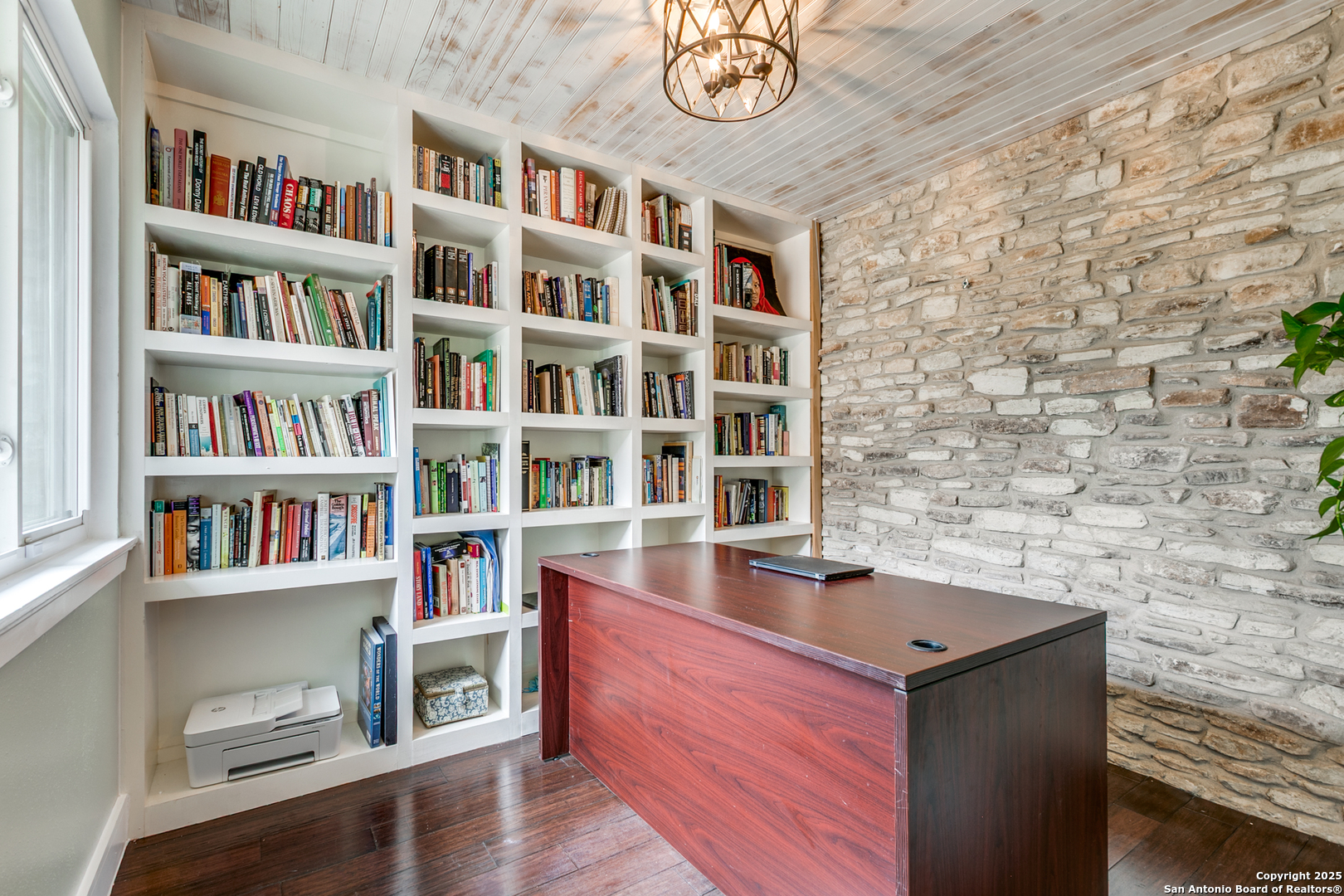 Welcome to this stunning home tucked away in a private cul-de-sac! Set on a beautifully landscaped half-acre lot, this charming residence boasts curb appeal that only a professional touch can achieve. From the moment you arrive, you're greeted by gorgeous custom carpentry throughout, including solid mahogany entry doors, with matching mahogany interior doors and window trim that add warmth and elegance throughout the home. Custom floor-to-ceiling built-in bookshelf, modern closet, infrared sauna, and swing set. The updated kitchen is a true centerpiece - perfect for a peaceful morning breakfast or entertaining guests with ease. Rich wood floors flow seamlessly through the home, guiding you to modernized bathrooms, a cozy study area, and spacious living spaces designed for comfort and style. Can't forget the property is graced with a variety of mature trees, including fig, pomegranate, live oak, pecan, mesquite, mountain laurel, Texas redbud, and crape myrtle - offering beauty, shade, and seasonal interest throughout the year. With thoughtful updates, timeless details, and a serene location, this home truly has it all. Don't miss your chance to make it yours!