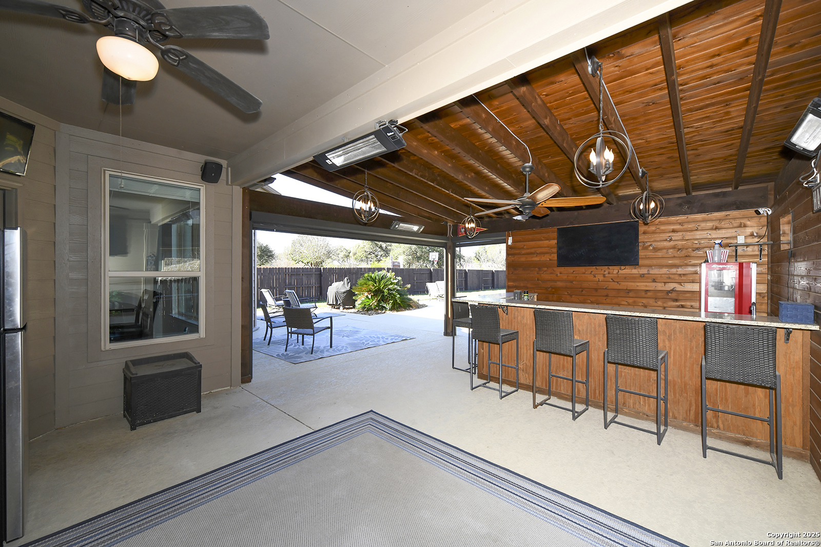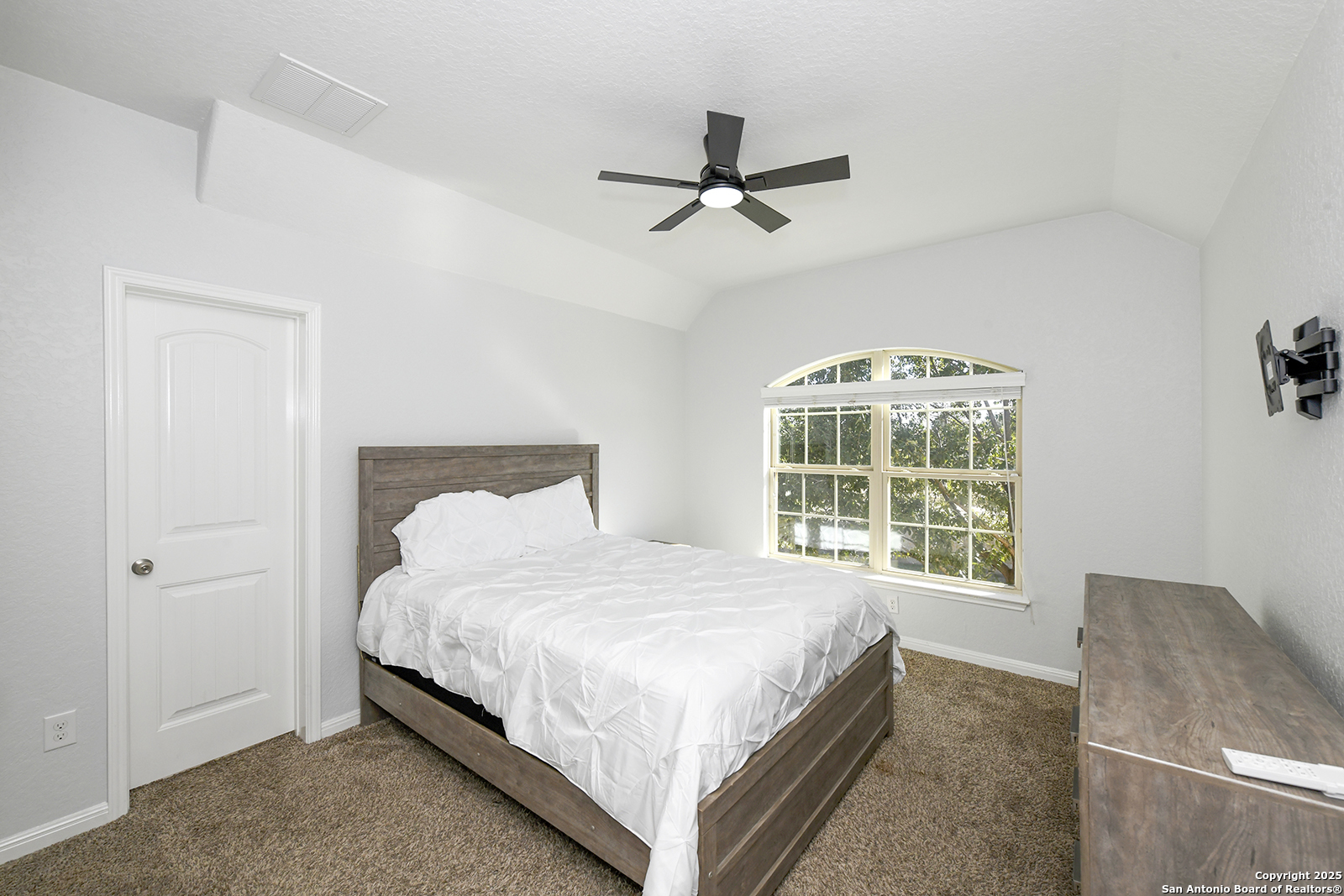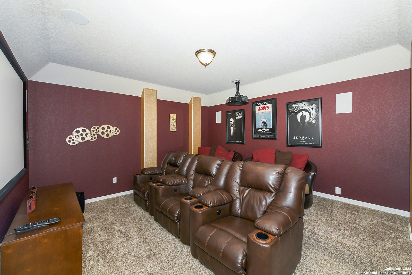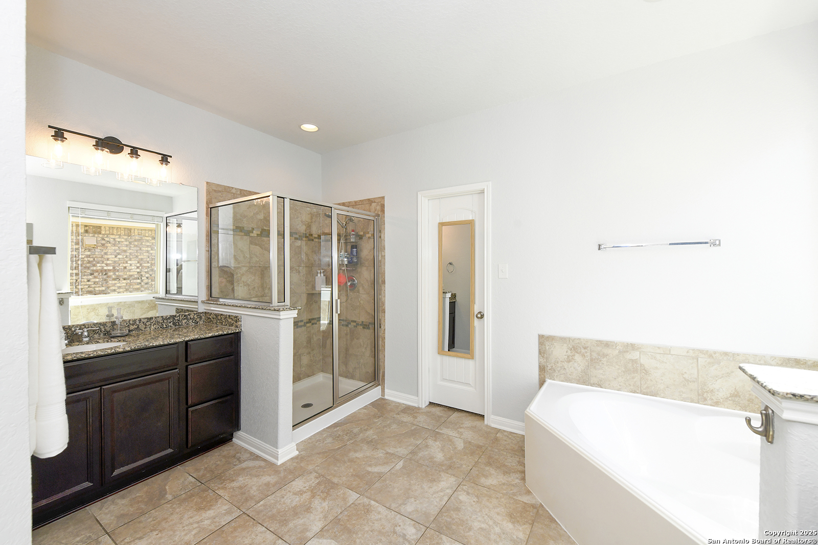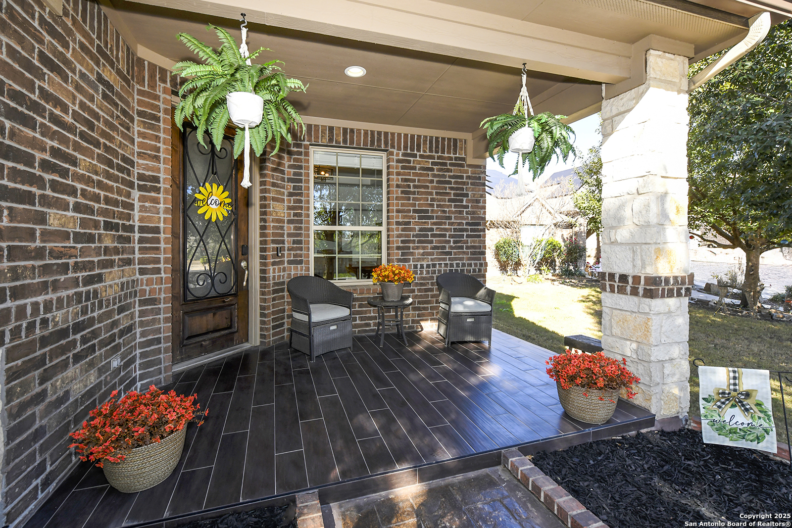 Welcome to this exceptional 5-bedroom, 4-bathroom residence offering 3,439 square feet of thoughtfully designed living space on a private cul-de-sac in a gated community with NO CITY TAX. Upon entry into the spacious foyer, potential buyers will find a fully-equipped functional kitchen, multiple eating areas, and a stone fireplace in a living area filled with natural light. The over-sized primary suite is conveniently located on the main level, providing a private retreat with room to unwind. Also downstairs is a dedicated study-ideal for working from home-as well as a secondary bedroom and bathroom. Spaces found upstairs include three generously sized secondary bedrooms, two full bathrooms, a game room and a separate media room, perfect for movie nights, entertaining, and everyday fun. Step outside to your private outdoor living area complete with a swimming pool with no backyard neighbors, creating a peaceful setting for relaxation and gatherings. Whether hosting friends or enjoying a quiet evening, this backyard oasis offers both privacy and enjoyment. Located just minutes from abundant dining and shopping options, H-E-B, and highly rated schools, this home combines comfort with convenience. Enjoy easy access to Government Canyon State Natural Area, Lackland Air Force Base, UTSA, and more-making this an ideal home for both lifestyle and location. 6123 Gypsy Bell offers many extras- from the impressive stamped concrete sidewalk and tiled front porch to the whole house generator to the FULLY EQUIPPED media room- yes, you read that right! All media room furniture and equipment convey. This is a rare opportunity to own a spacious, well-appointed home with resort-style amenities in an unbeatable area.