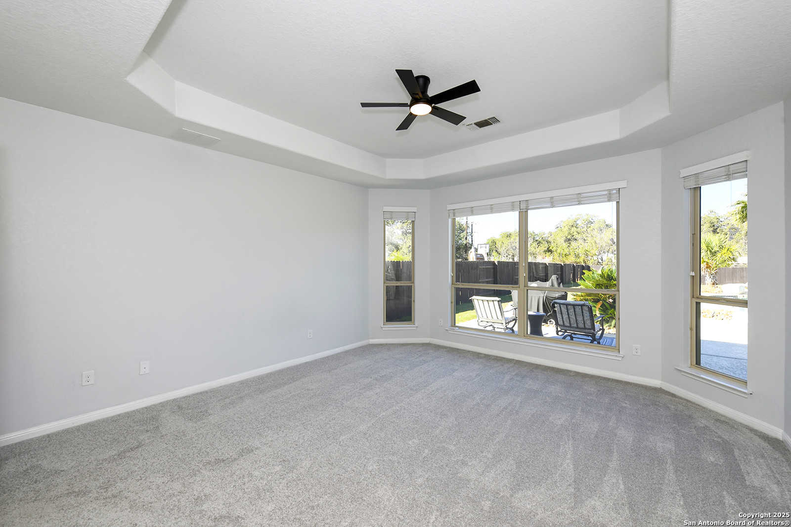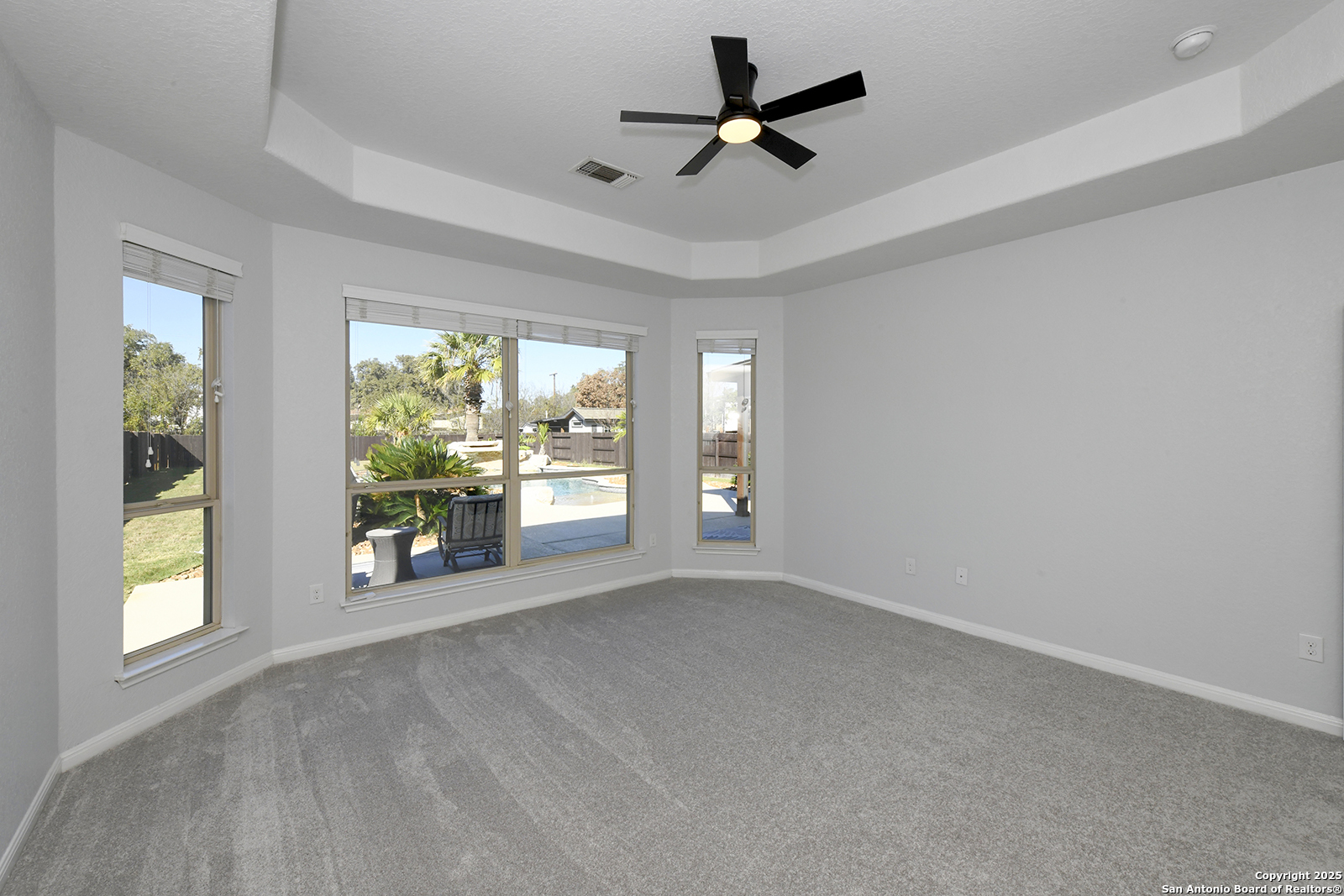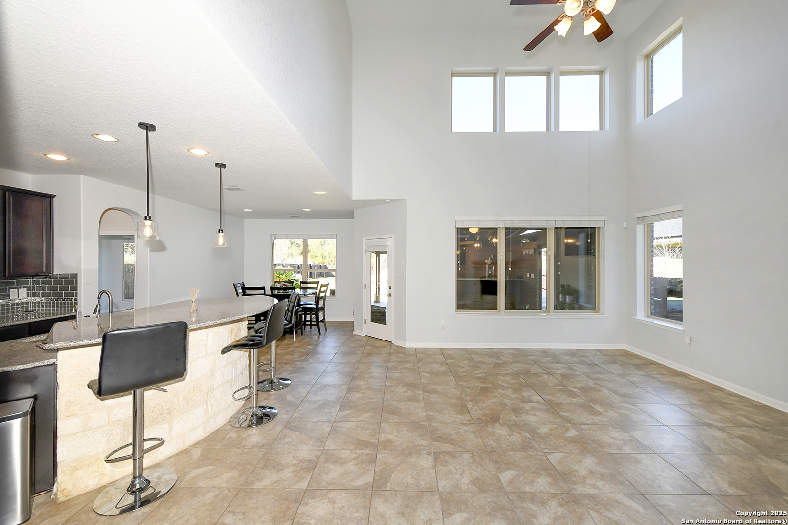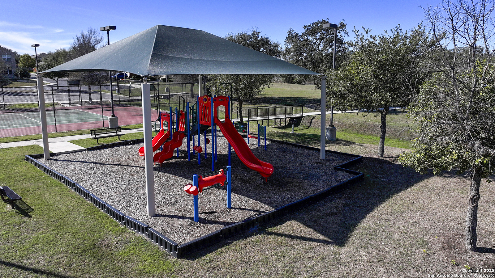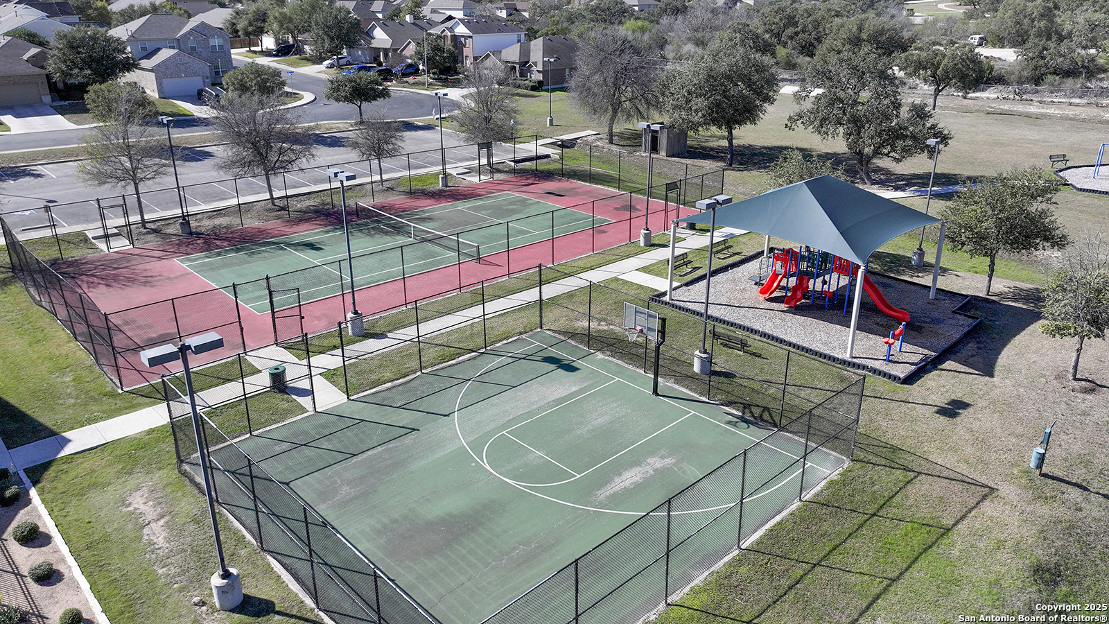 Welcome to this exceptional 5-bedroom, 4-bathroom residence offering 3,439 square feet of thoughtfully designed living space on a private cul-de-sac in a gated community with NO CITY TAX. Upon entry into the spacious foyer, potential buyers will find a fully-equipped functional kitchen, multiple eating areas, and a stone fireplace in a living area filled with natural light. The over-sized primary suite is conveniently located on the main level, providing a private retreat with room to unwind. Also downstairs is a dedicated study-ideal for working from home-as well as a secondary bedroom and bathroom. Spaces found upstairs include three generously sized secondary bedrooms, two full bathrooms, a game room and a separate media room, perfect for movie nights, entertaining, and everyday fun. Step outside to your private outdoor living area complete with a swimming pool with no backyard neighbors, creating a peaceful setting for relaxation and gatherings. Whether hosting friends or enjoying a quiet evening, this backyard oasis offers both privacy and enjoyment. Located just minutes from abundant dining and shopping options, H-E-B, and highly rated schools, this home combines comfort with convenience. Enjoy easy access to Government Canyon State Natural Area, Lackland Air Force Base, UTSA, and more-making this an ideal home for both lifestyle and location. 6123 Gypsy Bell offers many extras- from the impressive stamped concrete sidewalk and tiled front porch to the whole house generator to the FULLY EQUIPPED media room- yes, you read that right! All media room furniture and equipment convey. This is a rare opportunity to own a spacious, well-appointed home with resort-style amenities in an unbeatable area.
