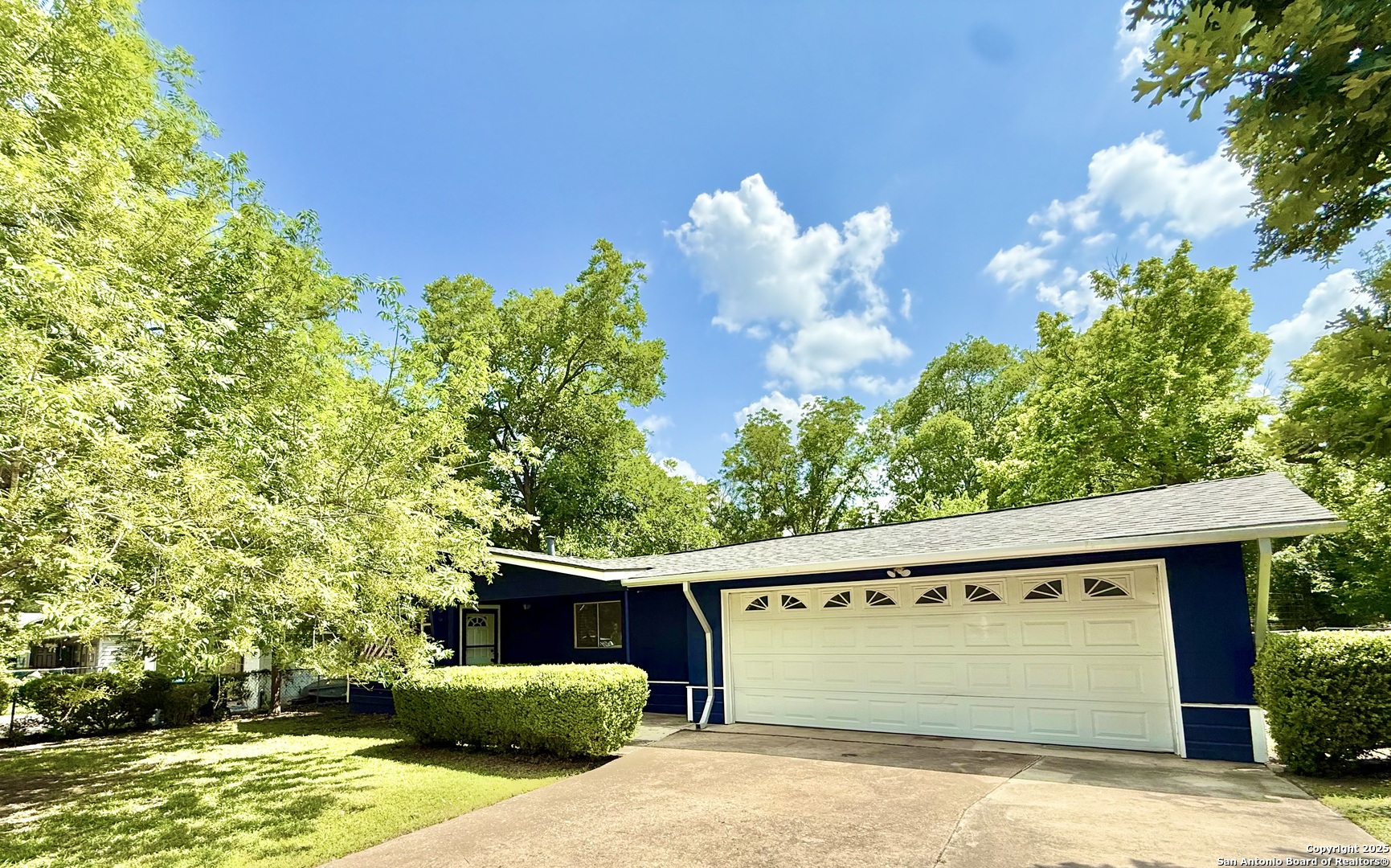 Super clean, freshly painted with stylish light fixtures, this Mid-century, modern home offers a generous, well maintained yard, perimeter fenced with blooming Oleander, Esperanza, and sage, mature trees, a screened covered patio for year round enjoyment, large shed, workshop AND two car attached garage! Double closets in the primary bedroom with attached ensuite bath plus door to patio. New roof 2023, new water heater 2021. Kerrville is a music friendly community with arts, live music, wineries, breweries, cultural events, and designated bird city.