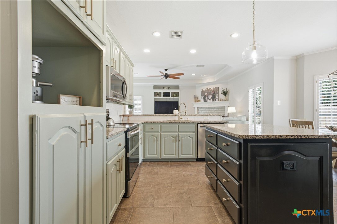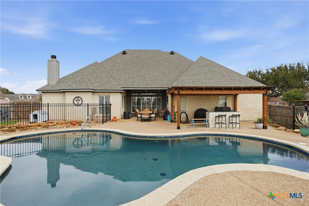 Situated on a spacious half-acre lot in the established Robinson ISD, this beautifully updated 4-bedroom, 2.5-bath home spans 3,001 square feet and blends timeless craftsmanship with modern upgrades. Built in 2001, the home showcases soaring ceilings up to 14+ feet, extensive crown molding, plantation shutters throughout, and a warm wood-burning fireplace with updated tile detail. The remodeled kitchen features freshly painted custom cabinetry, new backsplash, newer oven, dishwasher, microwave, upgraded lighting, and flows seamlessly into the main living areas, all enhanced by a surround sound system that connects indoors and out. Recent improvements include new carpet, full interior paint, updated fixtures and ceiling fans, attic spray foam insulation, and all new windows in 2025 for improved efficiency and comfort. The guest bath has been beautifully renovated with new vanities and a walk-in shower, and a large pantry located in the laundry room adds exceptional storage. Step outside to your private backyard retreat featuring a resurfaced pool with new decking, iron fencing installed in 2025, a custom-built pergola and outdoor island, French drain system, upgraded exterior lighting, and a replaced pool pump. The property also includes a 30x40 shop with 14-foot walls, electricity, engineered slab with soil injections, driveway extension, and double gate access, plus an additional storage building behind the shop. Completing the property is a 2-car garage with epoxy floors and a newly installed 5-camera security system, creating a well-rounded home with space, functionality, and thoughtful updates throughout.