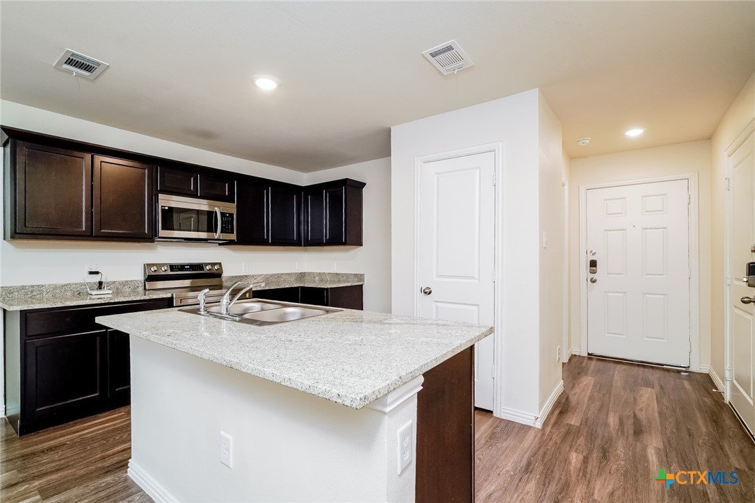 Check out this 3 bedroom, 2 bathroom home with a HUGE island in the kitchen, complete with stainless steel appliances, solid countertops and modern amenities throughout. A kitchen large enough to enjoy cooking and a pantry for extra storage. The primary bedroom offers a walk in closet and an ensuite bathroom! Schedule your showing today.