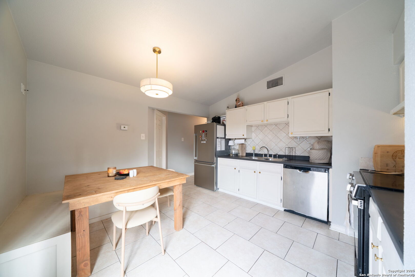 Welcome to this beautifully appointed single-story home located in the desirable Emerald Valley community. Thoughtfully designed, this home offers three bedrooms, two full bathrooms, a dedicated study, providing ample space to accommodate a variety of lifestyle needs. The interior features no carpet throughout, enhancing both style and ease of maintenance. The inviting living room is highlighted by a cozy fireplace, creating a warm and welcoming atmosphere. Step outside to a generous backyard with a privacy fence, backing to a greenbelt, ideal for relaxing or entertaining while enjoying added privacy. Conveniently situated near neighborhood amenities and various dining and shopping options. This home also offers excellent accessibility to Loop 1604, Lackland AFB, UTSA, and SeaWorld. Combining comfort, functionality, and a prime location, this exceptional home is one you won't want to miss.