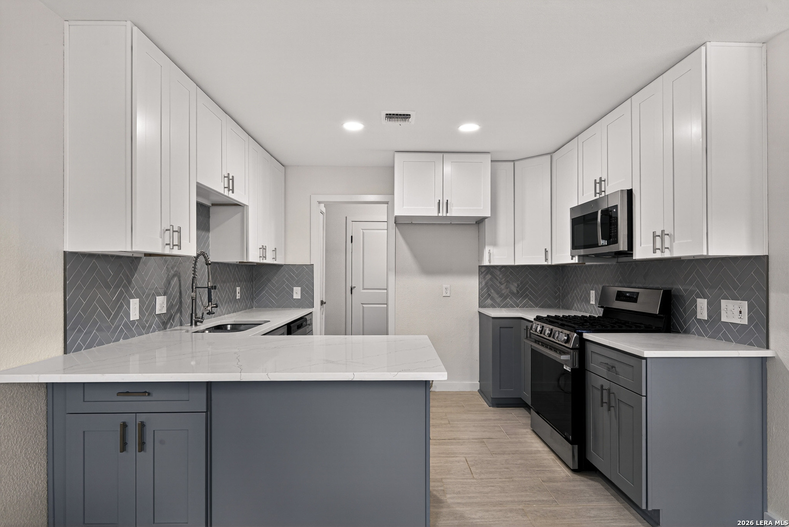This is the home you've been searching for! Owner spared no expense in renovating this GORGEOUS home in the highly coveted 78249 zip code! Open Concept Design featuring Soaring Ceilings, Wood Burning Fireplace, 3 bedrooms and 2 Baths. New New New! All New Windows, Interior Doors, Front Door, Fire Rated Garage Door, Cabinets, Vanities, Quartz Countertops, Luxury Vinyl Plank Flooring, Porcelain Tile, Electrical & Plumbing Fixtures, Plugs & Switches, Recessed LED Lights, Smoke Alarms, Scraped Ceilings and Retextured Walls, Baseboard and Trim, Hardware, Interior and Exterior Paint, Front Gates, and Landscaping. Kitchen features a functional design including a Breakfast Bar with seating, Brand New Appliances, and Gas Cooking! Renovated Bathrooms include Porcelain Tiled Bath Surrounds, New Mirrors & Fixtures. Separate Laundry Room with Shelving and Pantry. Huge Backyard with Privacy Fence & 2 New Front Gates. Front Yard features Modern Landscaping including Mulch Flowerbeds, & Stylish Garage & Porch Lights. Fantastic Location: 3 mi UTSA, 4 mi La Cantera & The Rim, 5 mi Medical Center & USAA, 20 min to Downtown.