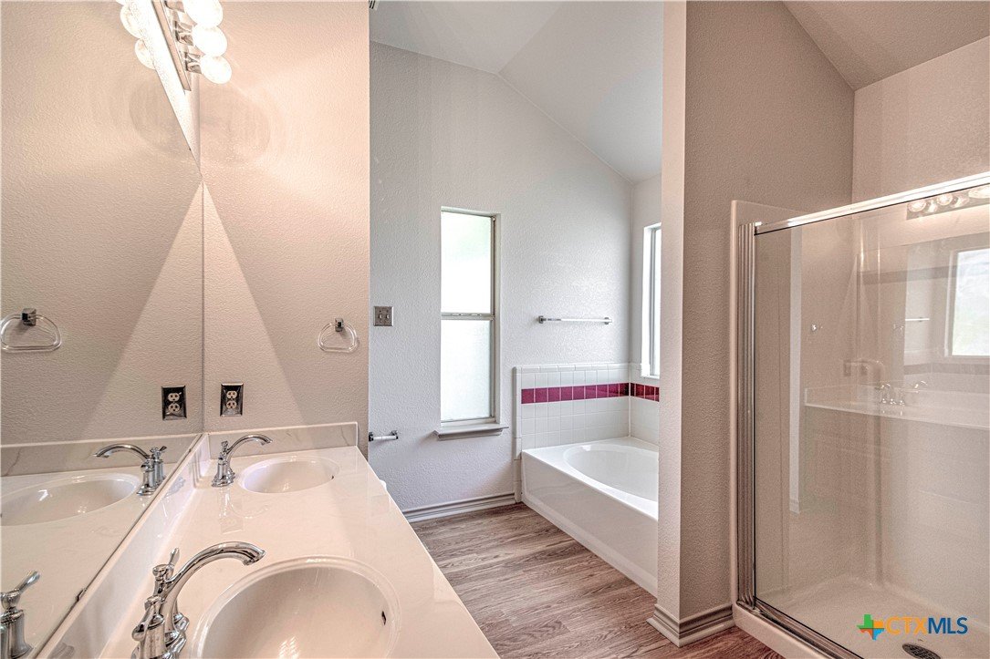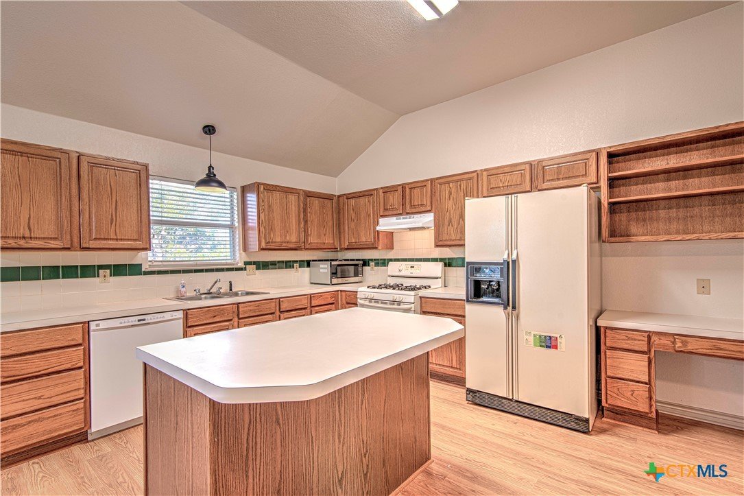 Welcome home to this beautifully updated 4-bedroom 2 bath, 2 car garage. Home is located on a large corner lot in a cul-de-sac in Western Hills subdivision. Features a spacious floorplan including two living areas, formal and informal dining, 2" wood blinds throughout home. Open concept kitchen with center island, ample cabinets & cabinet space, pantry, work study space, refrigerator, washer & dryer will convey. Primary suite is spacious with nice bathroom and double vanities, separate shower, garden tub, and his and hers closet. The minor bedrooms can be easily adapted for a home office, playroom, or guests. Enjoy new Pergo laminate wood flooring, Updated light fixtures that adds a stylish touch and freshly painted throughout. Peaceful backyard with storage shed. Schedule your showing today!