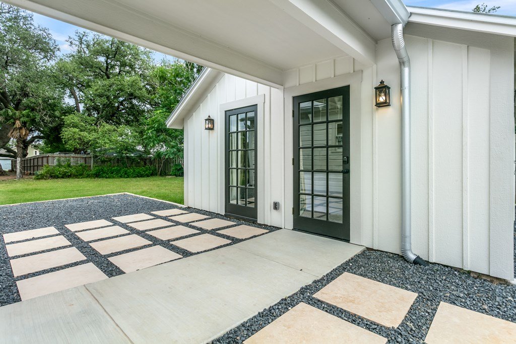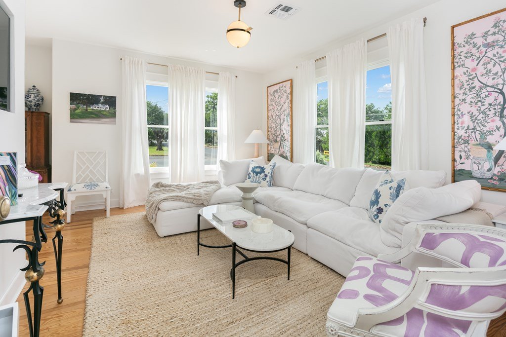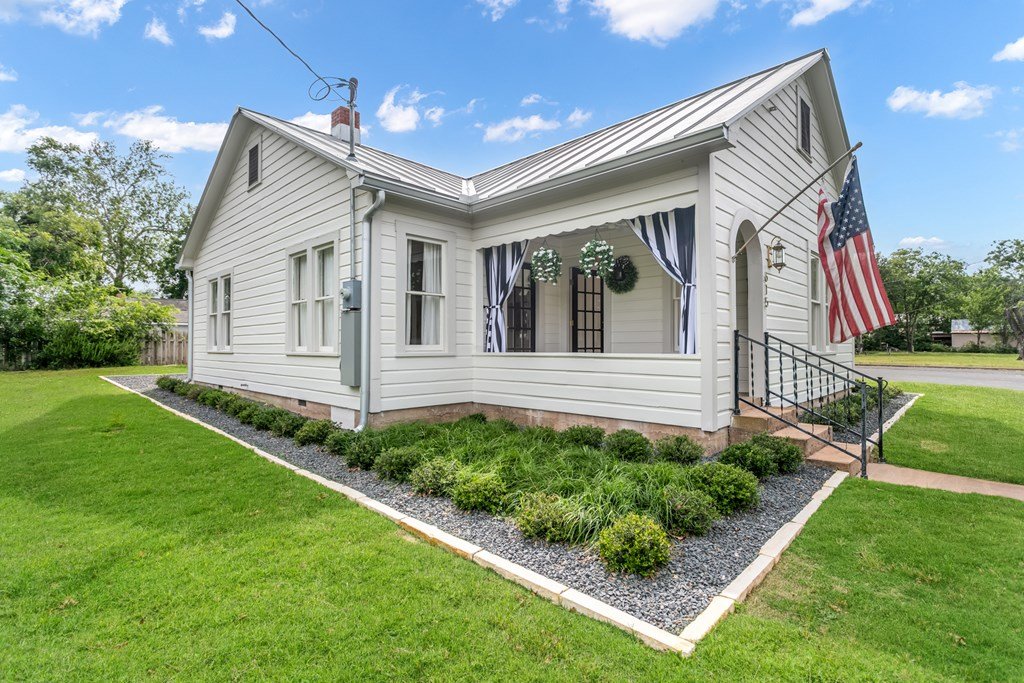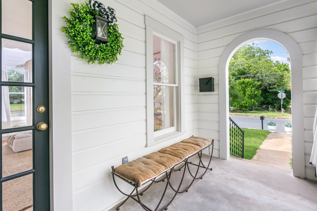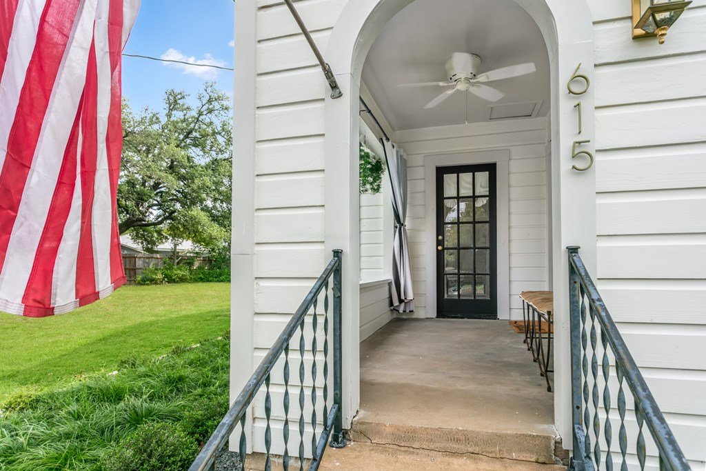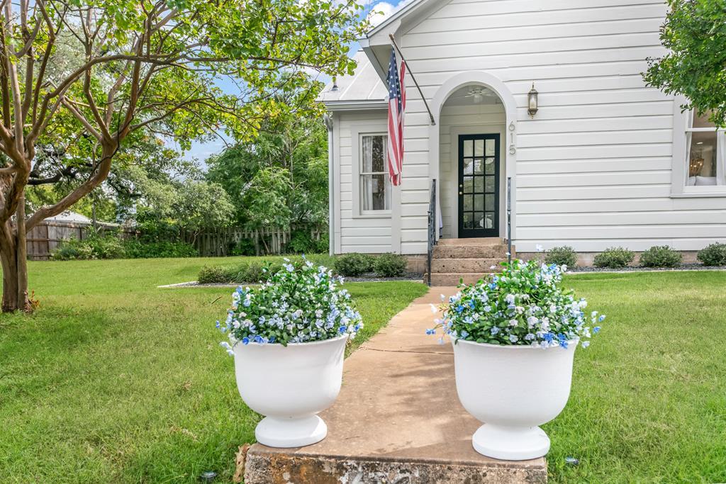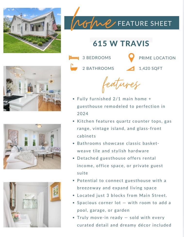 A true showcase of style and sophistication, the interior design vibe of this home + guesthouse is like something out of Architectural Digest, stunning! Offered fully furnished down to the final detail, this property invites you to simply arrive and embrace the Fredericksburg lifestyle. Set on a generous corner lot in a prime location, the home captivates from the moment you arrive. A graceful arched front porch, manicured landscaping and timeless architecture set the tone. Inside, the main home is dialed in with designer flair featuring a statement crystal chandelier, custom glass-front cabinetry, quartz countertops, a gas range, and a vintage island that adds warmth and charm. Bathrooms showcase classic basket-weave tile and upscale fixtures. And yes...every beautifully curated piece of furniture and dcor conveys. The detached guesthouse offers flexible income potential. Whether used as a STR (by right), a long-term rental, a private office, or guest quarters, the space adapts beautifully to your lifestyle. For those envisioning more, consider enclosing the breezeway to create a spectacular primary suite. The oversized corner lot provides additional opportunities: room for a pool, garden, garage, or outdoor entertaining space. Whether you're searching for a personal retreat or a primary residence with supplemental income, this Fredericksburg stunner is truly one-of-a-kind!