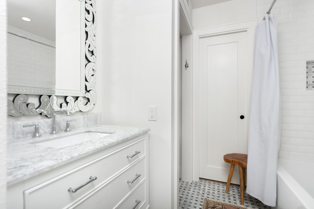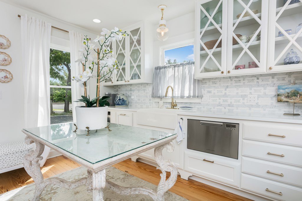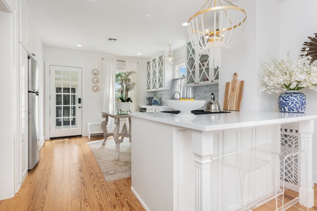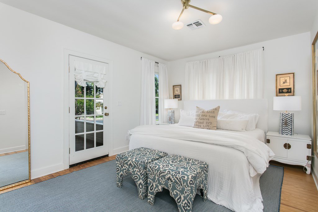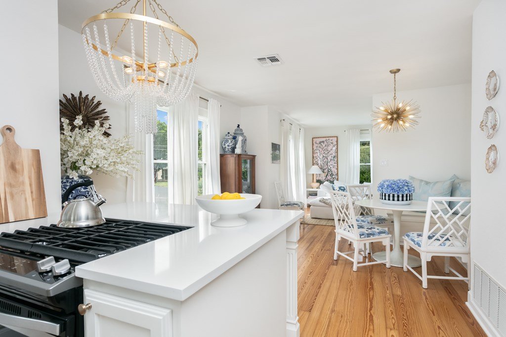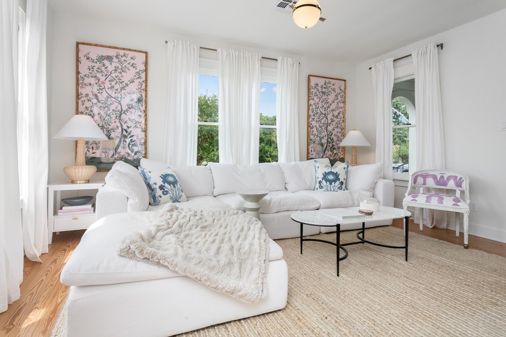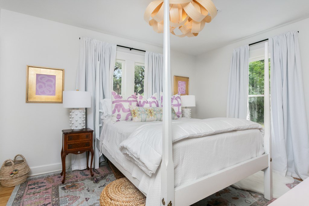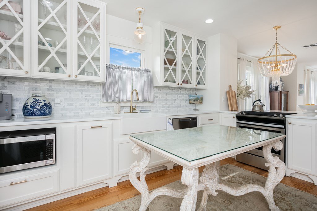 A true showcase of style and sophistication, the interior design vibe of this home + guesthouse is like something out of Architectural Digest, stunning! Offered fully furnished down to the final detail, this property invites you to simply arrive and embrace the Fredericksburg lifestyle. Set on a generous corner lot in a prime location, the home captivates from the moment you arrive. A graceful arched front porch, manicured landscaping and timeless architecture set the tone. Inside, the main home is dialed in with designer flair featuring a statement crystal chandelier, custom glass-front cabinetry, quartz countertops, a gas range, and a vintage island that adds warmth and charm. Bathrooms showcase classic basket-weave tile and upscale fixtures. And yes...every beautifully curated piece of furniture and dcor conveys. The detached guesthouse offers flexible income potential. Whether used as a STR (by right), a long-term rental, a private office, or guest quarters, the space adapts beautifully to your lifestyle. For those envisioning more, consider enclosing the breezeway to create a spectacular primary suite. The oversized corner lot provides additional opportunities: room for a pool, garden, garage, or outdoor entertaining space. Whether you're searching for a personal retreat or a primary residence with supplemental income, this Fredericksburg stunner is truly one-of-a-kind!