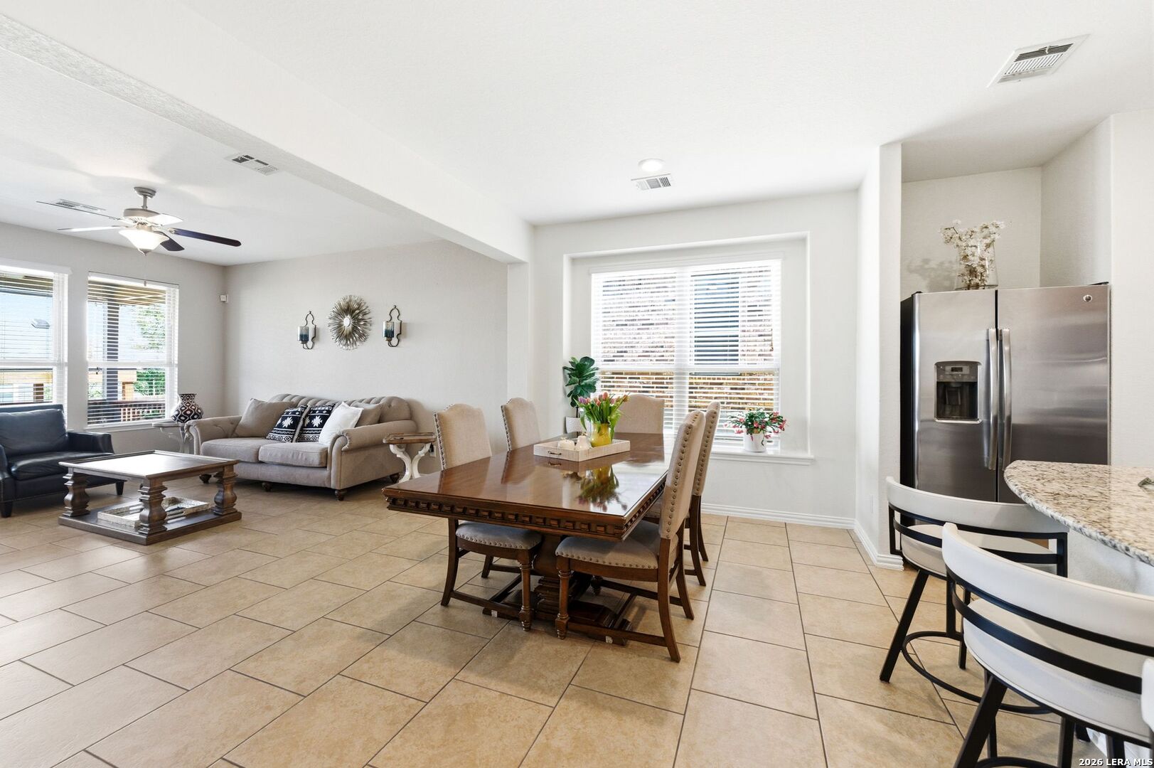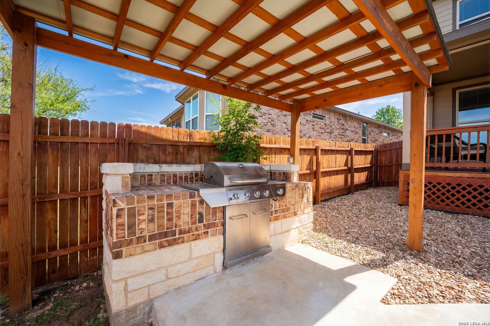 Spacious 4 bedroom, 3 bath home with a flexible and well-designed layout within a gated community. The split primary suite is located downstairs with high ceilings, along with two additional bedrooms on the main level. Upstairs features one private bedroom, a full bath, and a separate living area, ideal for guests, a game room, or a private retreat. The backyard is designed for outdoor enjoyment with a large covered patio and a covered gazebo featuring a gas grill on a patio slab, perfect for entertaining and gatherings. OPEN HOUSE, SATURDAY, MARCH 28TH FROM 12-3 PM