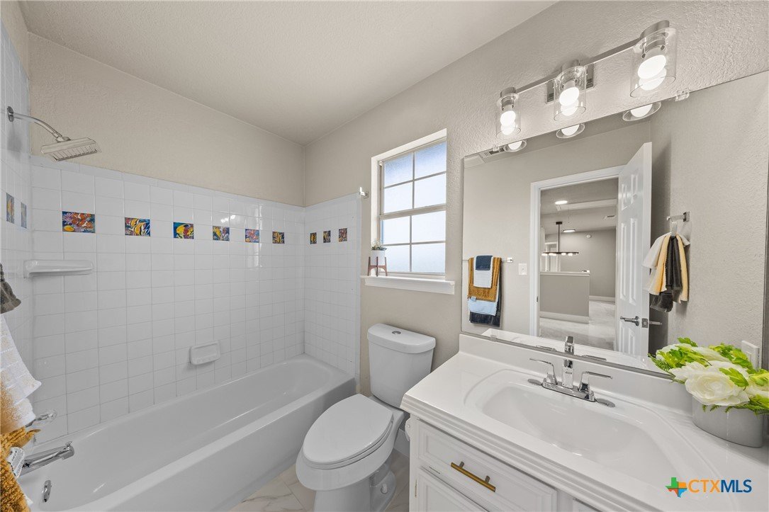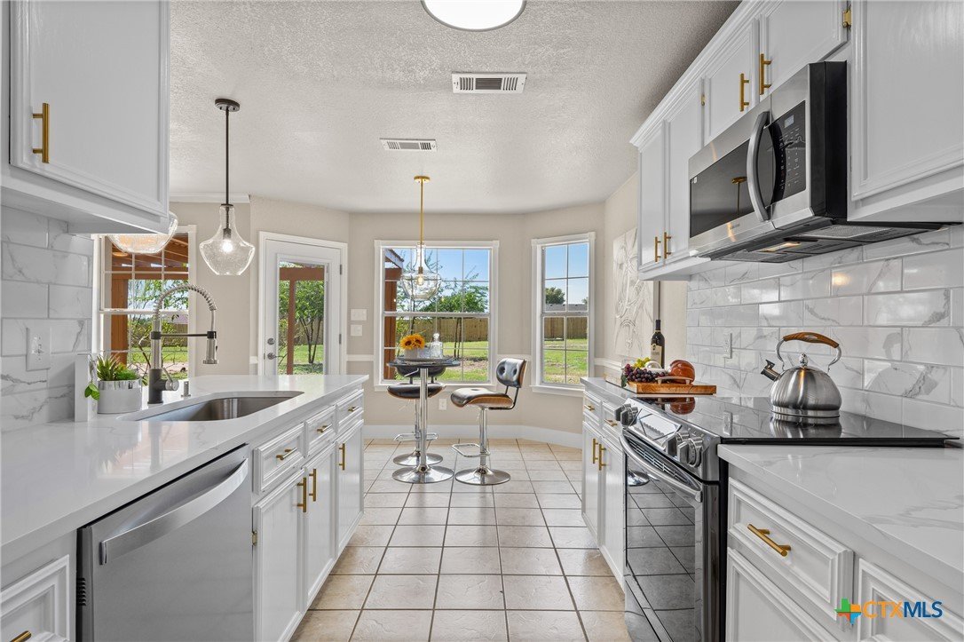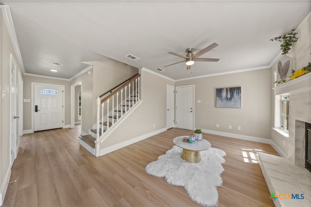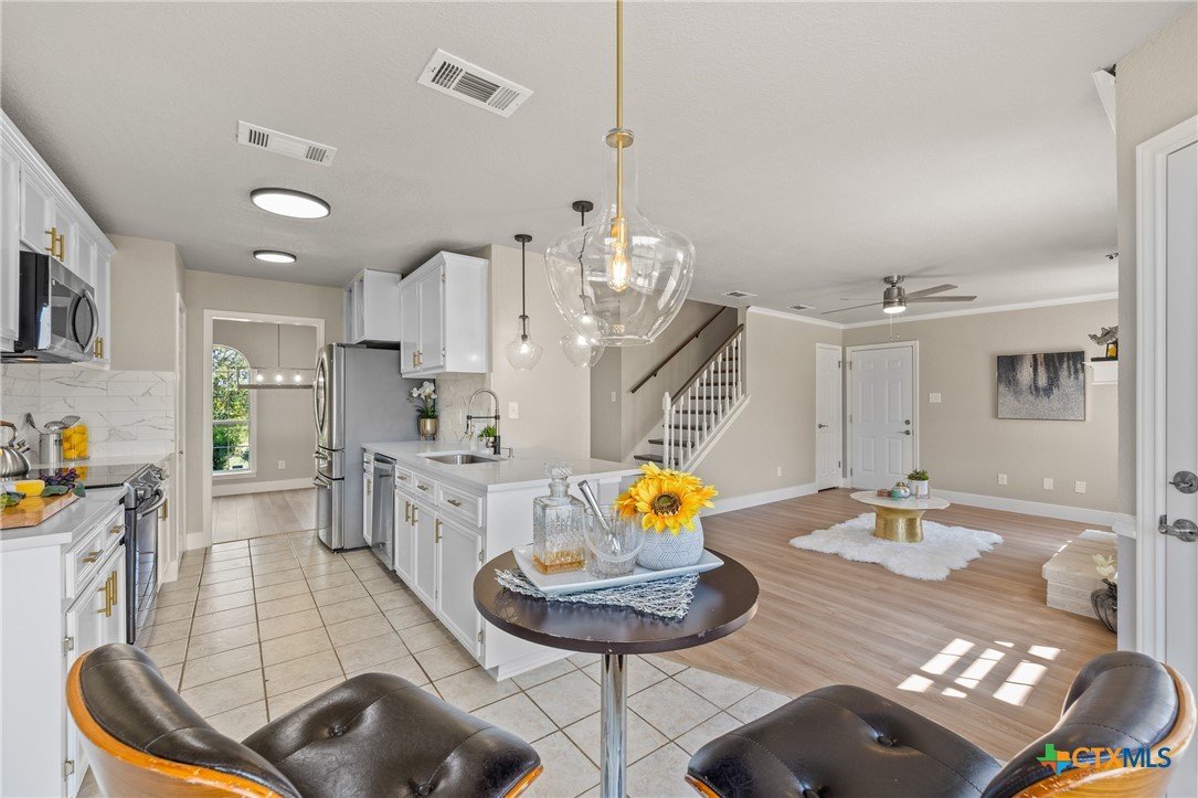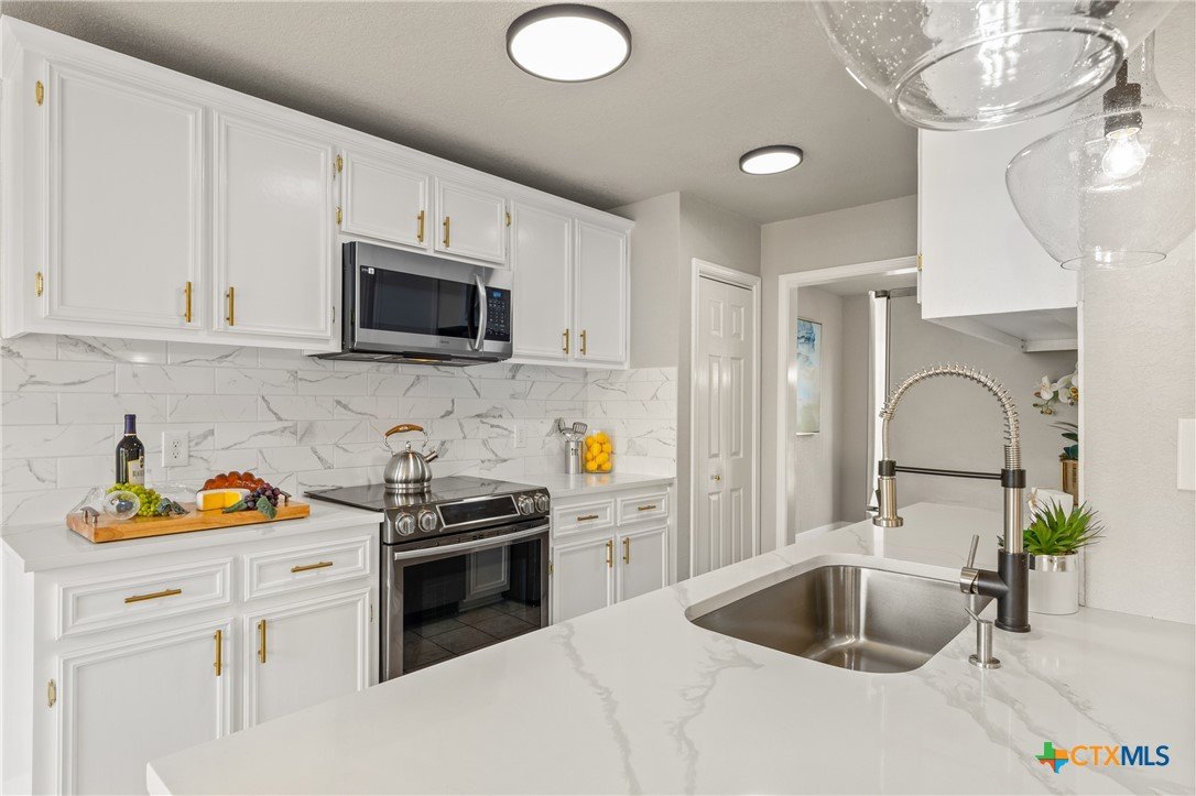 Your Hill Country Forever Home Awaits in Sunset Estates. Escape the hustle and bustle and find your sanctuary in this beautifully remodeled Hill Country gem. Situated on a quiet cul-de-sac in the highly sought-after Sunset Estates, this home offers over 2,100 square feet of sophisticated living on a generous 0.62-acre lot. Mature trees and breathtaking views create a private, picturesque setting, ideal for gathering with family or hosting guests. The interior is a perfect blend of modern elegance and charm, thoughtfully redesigned with the ultimate comfort in mind. The main floor features an inviting living room, a formal dining area, and a bonus flex room, offering plenty of space for every activity. Aspiring chefs will be inspired by the stunning kitchen, equipped with smart Samsung appliances and gorgeous Calacatta quartz countertops. Upstairs, the home continues to impress with four spacious bedrooms and two and a half stylish bathrooms. The primary suite is a true oasis, boasting a fully remodeled bath meticulously designed for rejuvenation. No detail has been overlooked in this impressive renovation. Upgrades include luxury vinyl flooring, plush Stainmaster carpet, new oak stair treads, and smart home features like a new 3-speed Rheem A/C and smart garage door motor. Recent additions like new windows and gutters add both beauty and efficiency. Start living your best life! Come experience this Sunset Estates beauty today.