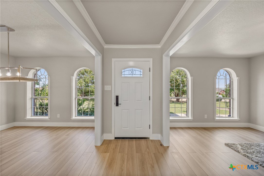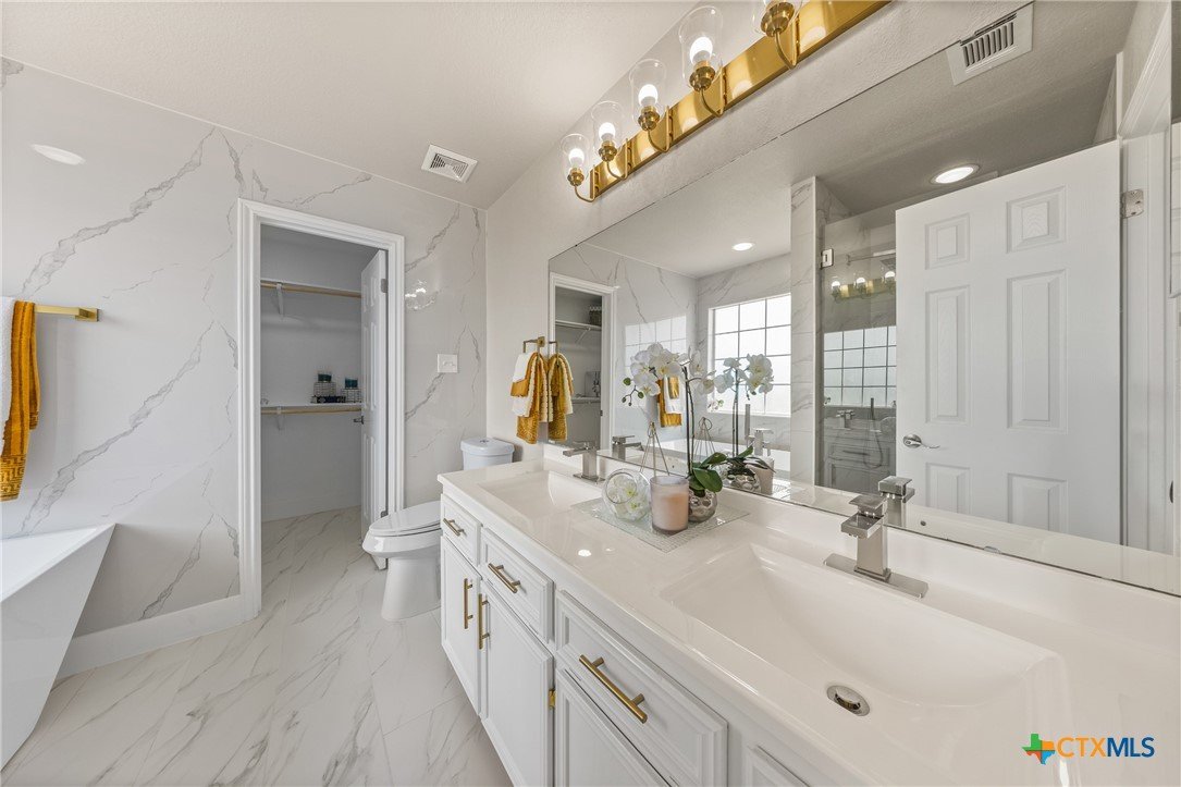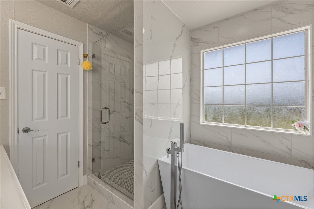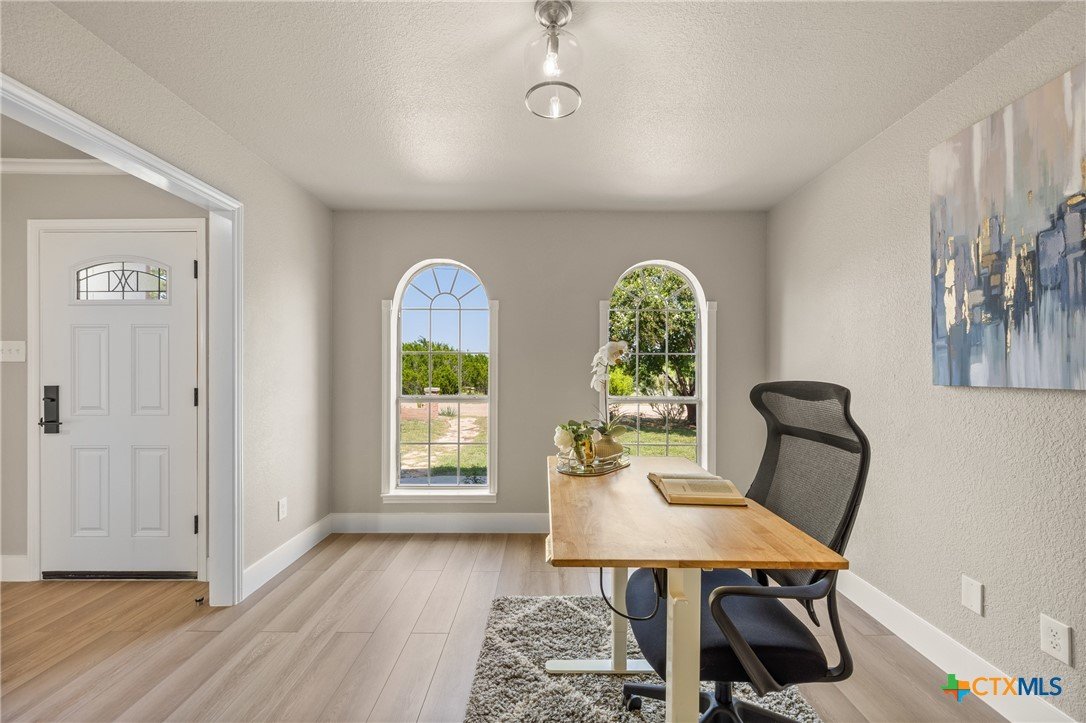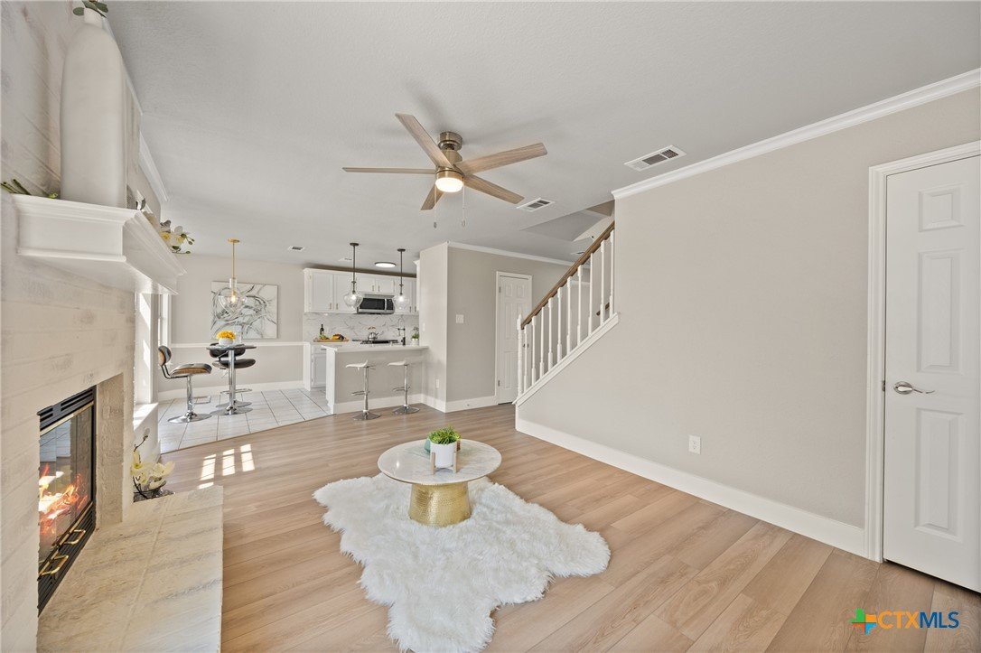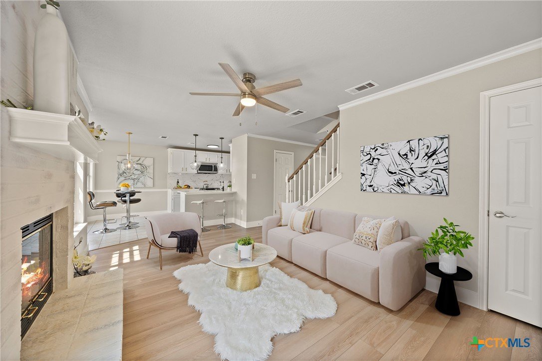 Your Hill Country Forever Home Awaits in Sunset Estates. Escape the hustle and bustle and find your sanctuary in this beautifully remodeled Hill Country gem. Situated on a quiet cul-de-sac in the highly sought-after Sunset Estates, this home offers over 2,100 square feet of sophisticated living on a generous 0.62-acre lot. Mature trees and breathtaking views create a private, picturesque setting, ideal for gathering with family or hosting guests. The interior is a perfect blend of modern elegance and charm, thoughtfully redesigned with the ultimate comfort in mind. The main floor features an inviting living room, a formal dining area, and a bonus flex room, offering plenty of space for every activity. Aspiring chefs will be inspired by the stunning kitchen, equipped with smart Samsung appliances and gorgeous Calacatta quartz countertops. Upstairs, the home continues to impress with four spacious bedrooms and two and a half stylish bathrooms. The primary suite is a true oasis, boasting a fully remodeled bath meticulously designed for rejuvenation. No detail has been overlooked in this impressive renovation. Upgrades include luxury vinyl flooring, plush Stainmaster carpet, new oak stair treads, and smart home features like a new 3-speed Rheem A/C and smart garage door motor. Recent additions like new windows and gutters add both beauty and efficiency. Start living your best life! Come experience this Sunset Estates beauty today.