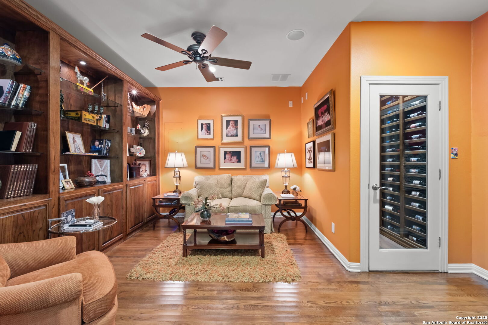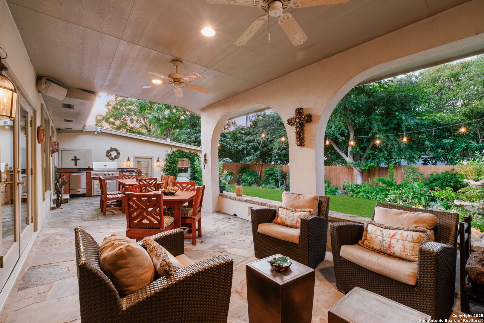Wonderful Spanish hacienda style one story house on a flat 0.32al. This four bedroom, three and a half bathroom, 3,884 square foot property offers a great floor plan with an open living kitchen and private master suite which includes a sitting area, walk-in closet and an updated bathroom. Step outside to the sizable covered entertaining area with a wood burning fireplace and built-in kitchen. Additional amenities include the walk-in wine cellar, a two-car garage, a two-car carport, a Spanish barrel tile roof, and mature landscaping with ample outdoor lighting.