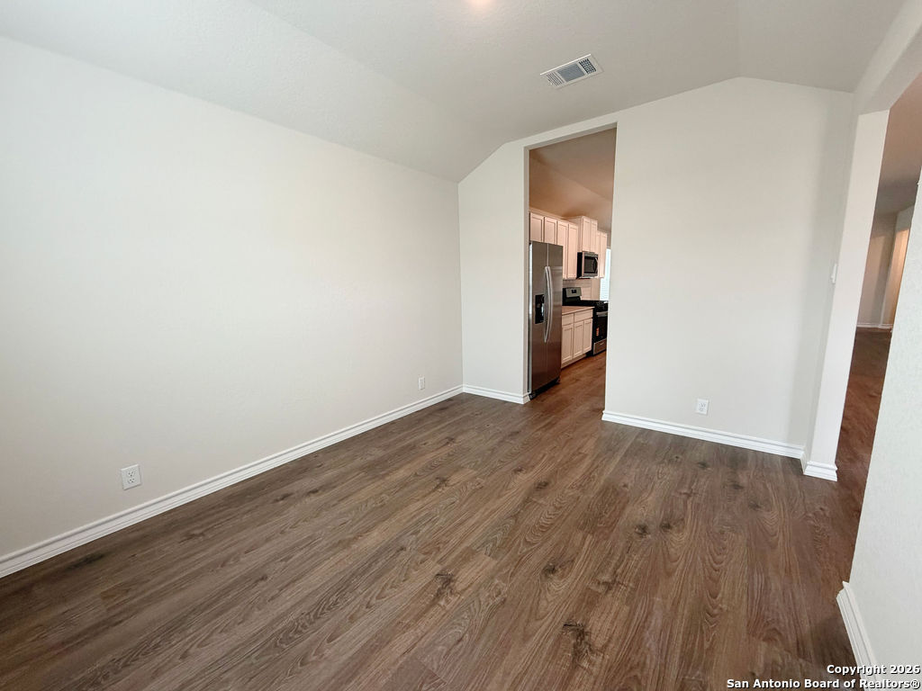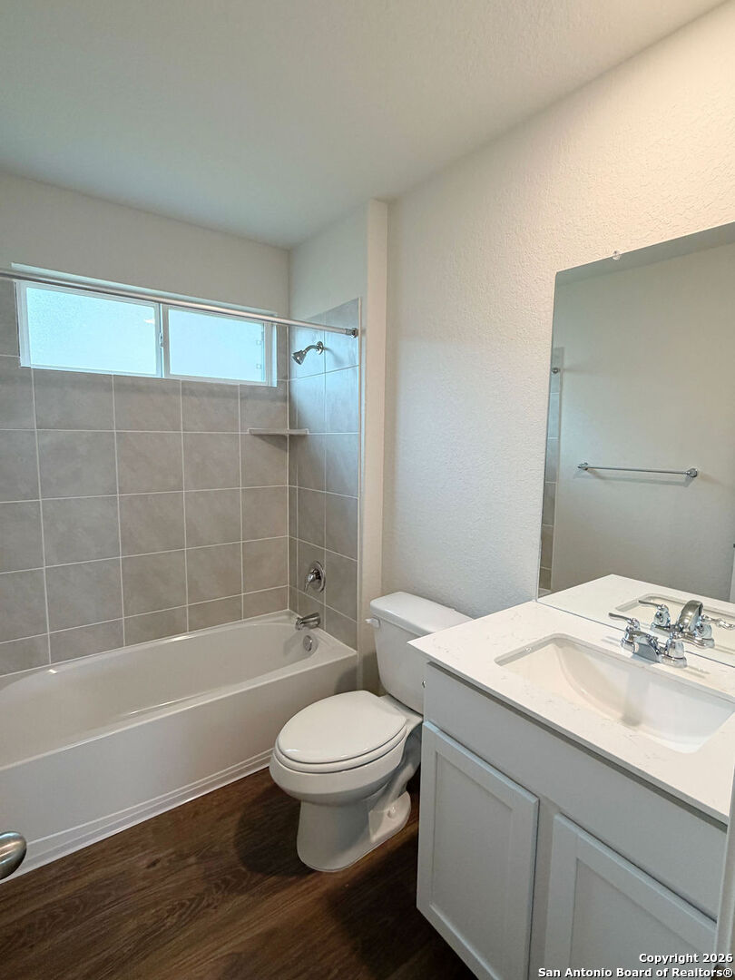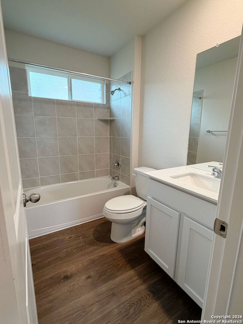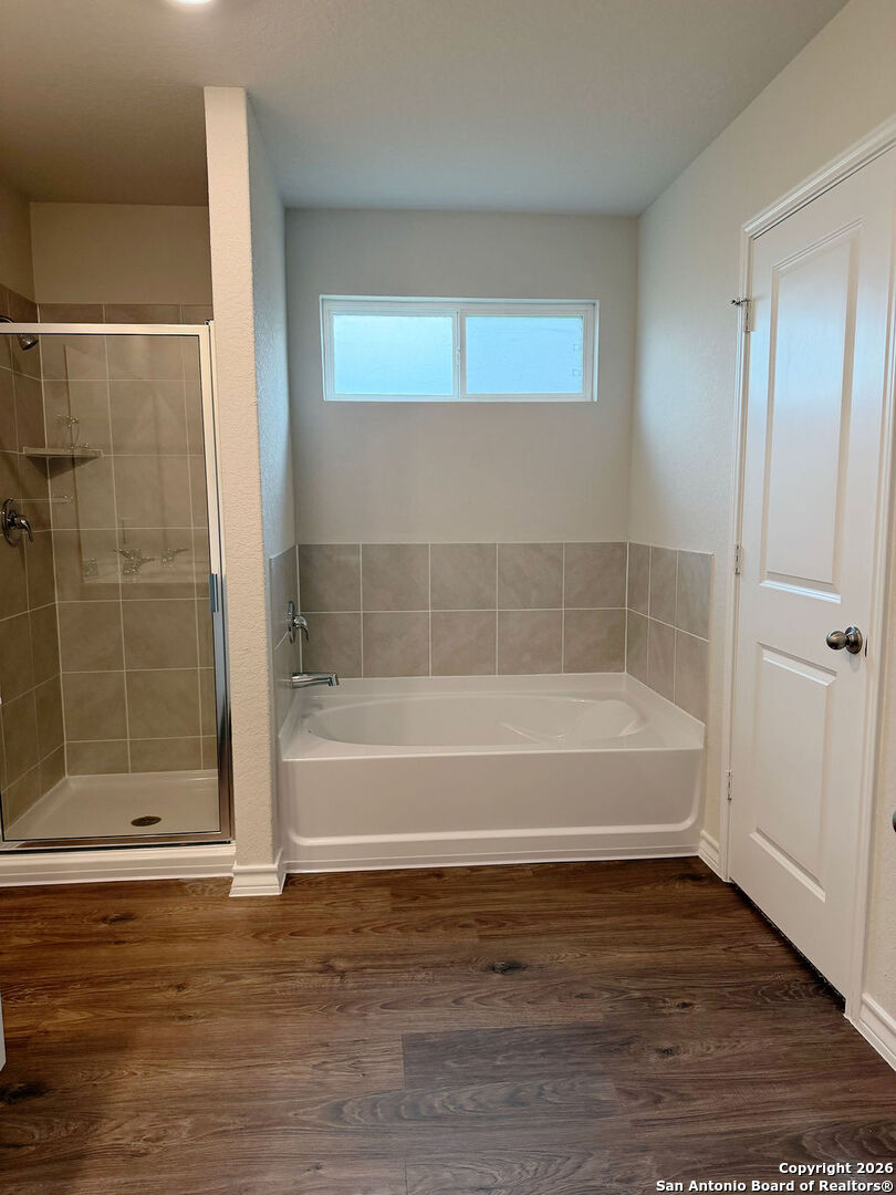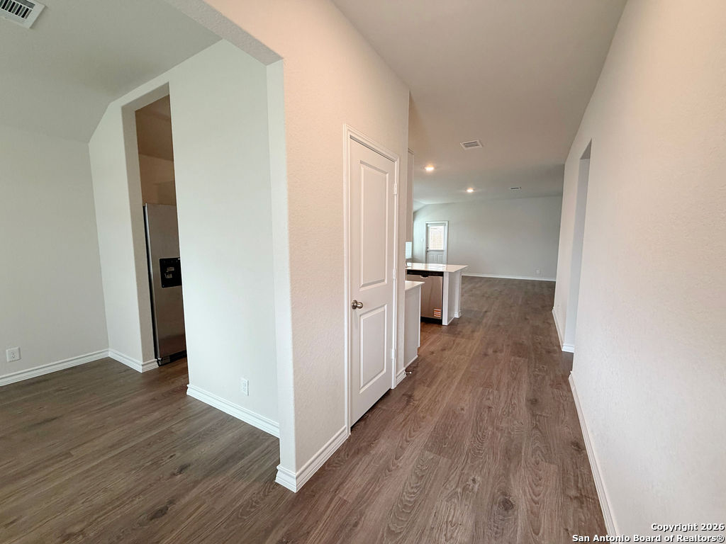 Welcome to 620 Sumpter Banks, a beautiful single-story home offering 1,650 square feet of thoughtfully designed living space, featuring 3 bedrooms, 2 bathrooms, and a 2-car garage. This well-appointed layout includes a separate dining area that flows seamlessly into an open-concept kitchen. The kitchen boasts ample cabinet storage, quartz countertops, a subway tile backsplash, stainless steel appliances, an electric cooking range, and a deep kitchen island overlooking the living room-perfect for both everyday living and entertaining. The spacious primary bedroom suite is located just off the family room and features a double vanity, separate soaking tub and walk-in shower, a private water closet, and a generous walk-in closet. The secondary bedrooms are well-sized with large closets and are conveniently located near the second full bathroom, which offers plenty of natural light. A dedicated utility room is also located off the family room for added convenience. Additional highlights include 9-foot ceilings, 2-inch faux wood blinds throughout, luxury vinyl plank flooring in the entry, family room, kitchen, and dining area, and ceramic tile flooring in the bathrooms and utility room. The home is pre-plumbed for a water softener loop and already includes a water softener system. The garage floors feature durable epoxy coating for a clean, finished look. For added comfort and convenience, all appliances are provided, including a washer, dryer, and refrigerator. Enjoy modern living with the home's Home Is Connected smart technology, allowing you to control lighting, thermostat, and door locks from your mobile device through one central hub. Step outside to relax on the large covered patio located off the family room and take advantage of full yard landscaping and full yard irrigation. This home offers comfort, functionality, and modern features-all in one exceptional package.