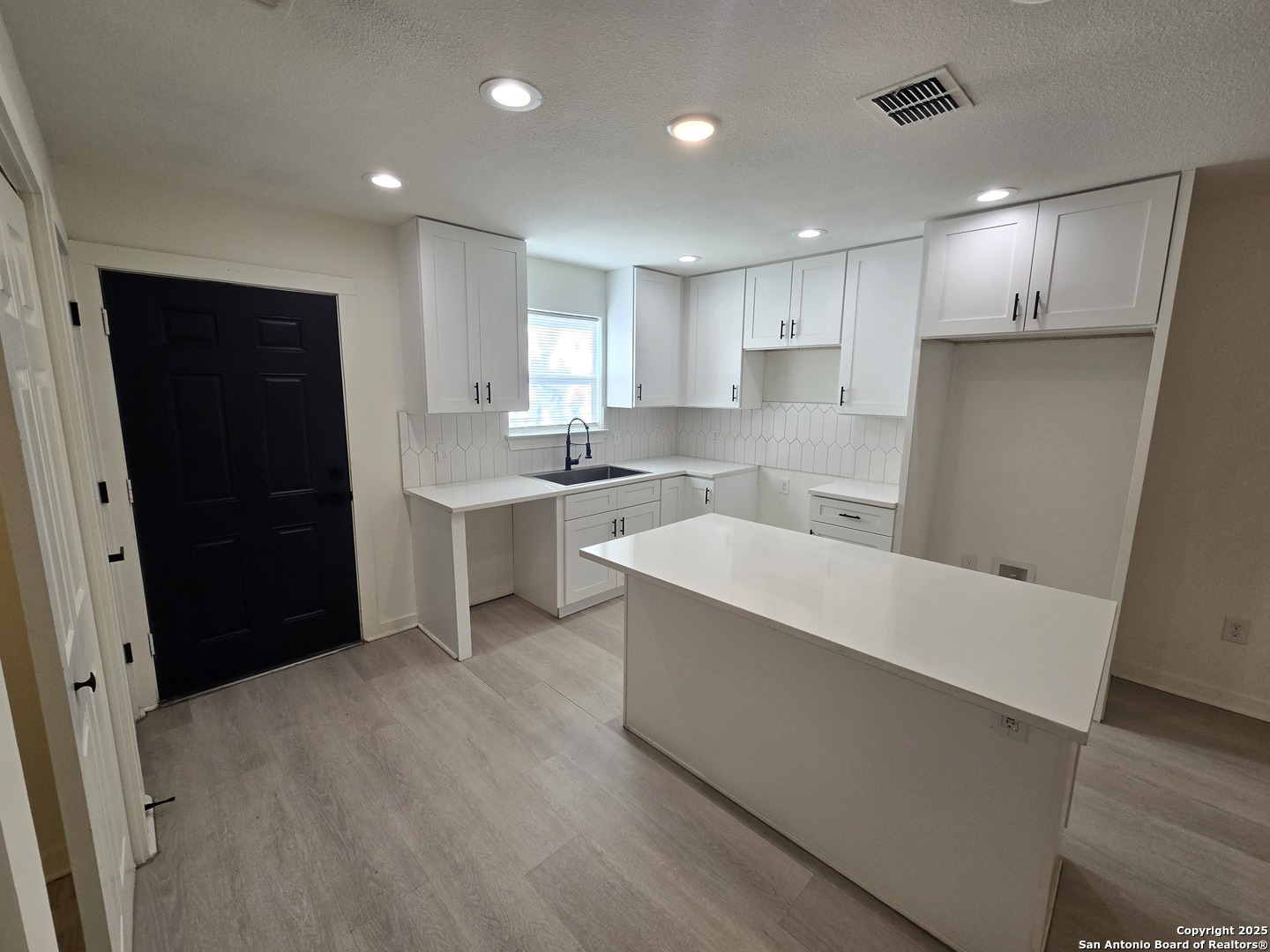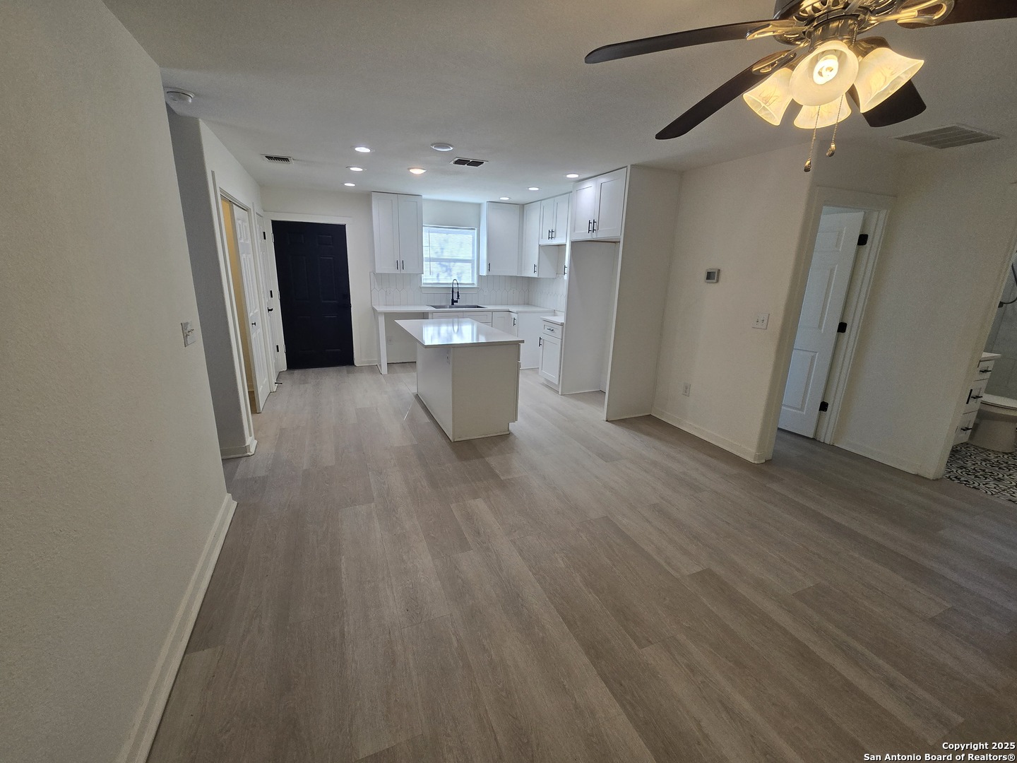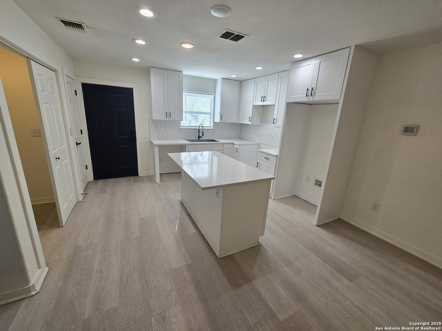 Great downtown home recently updated, 2 bedrooms downstairs with upstairs nice sized room for third bedroom or used as game room, flex room. Great updates, solid surface countertops, metal roof, nice flooring and tile throughout. Two bedrooms downstairs on first floor, nice privacy fenced backyard, private parking off street. Seller financing available! Convenient to downtown, the Pearl, San Antonio College UTSA downtown, great home for family or for potential Air Bnb rental.