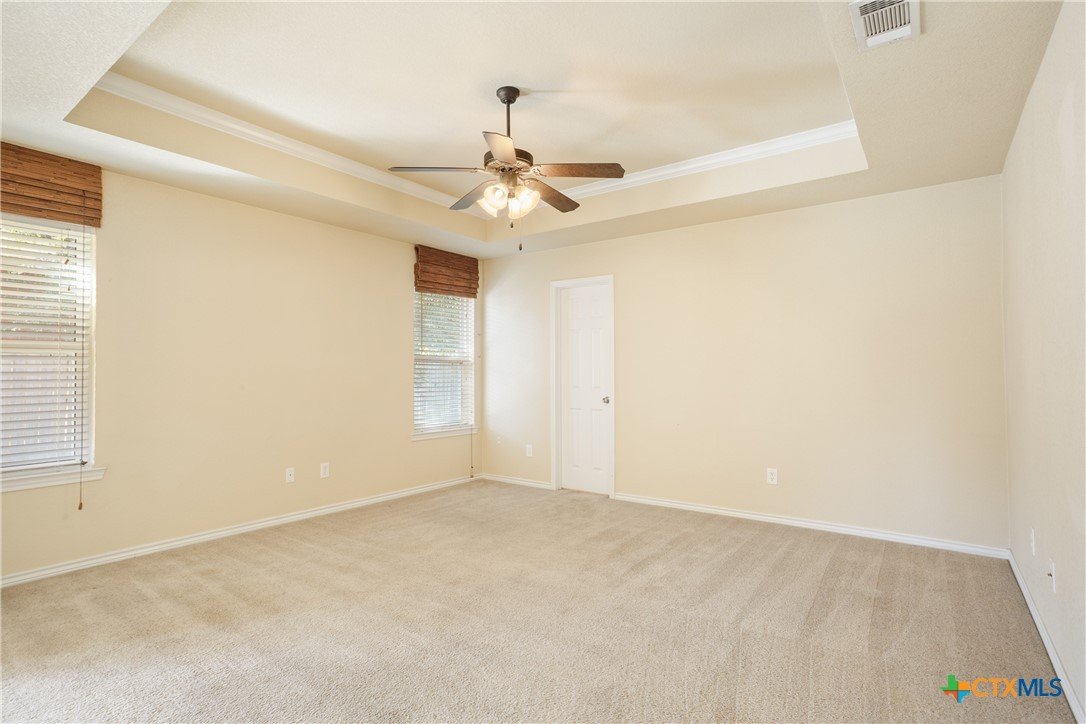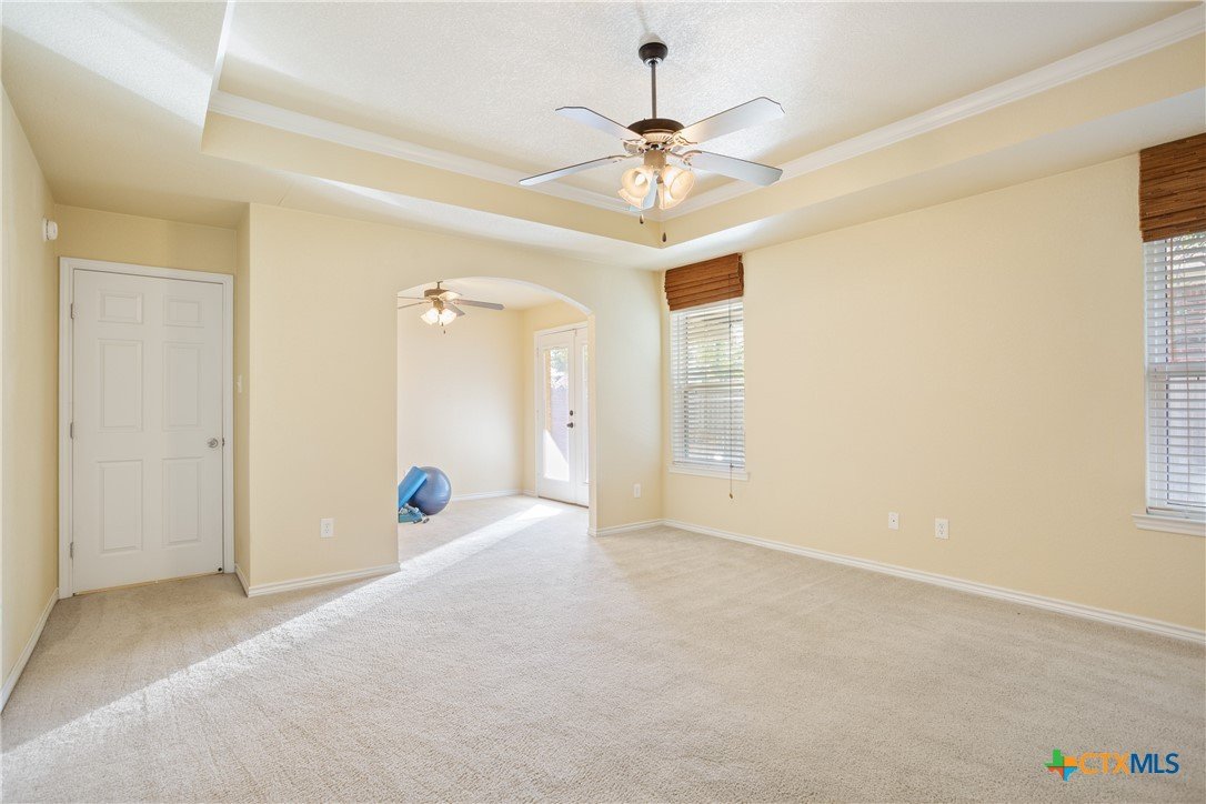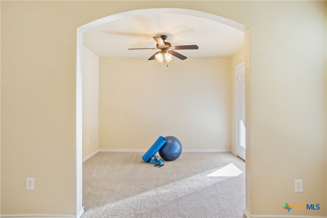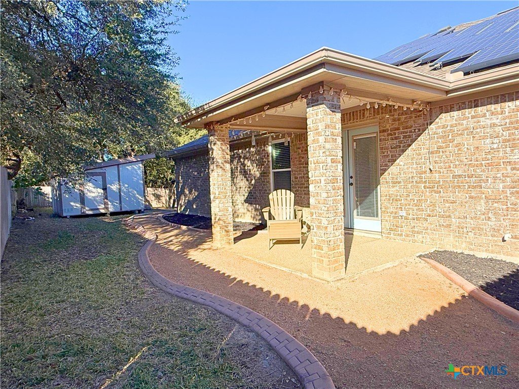 PAID OFF SOlAR PANELS * Welcome to this beautifully updated and versatile 4-bedroom home, where one of the bedrooms can easily function as a dedicated office or flex space. The inviting living room showcases a cozy fireplace, creating the perfect spot for relaxing evenings or gatherings. The primary suite offers a true retreat, featuring a private study/den that can be used as a library, workout room, office, or even a personal living area. Enjoy direct access to your own covered patio, ideal for unwinding in peace. A second covered patio provides the perfect space for grilling, entertaining, or even setting up a dartboard for fun nights with friends. This home has been thoughtfully updated with a new roof (2023), 8-year-old HVAC system, updated windows (2012), fresh exterior paint (5 years old), paid-off solar panels, and a clean epoxy garage floor. The primary bathroom offers a spacious walk-in shower with a built-in bench and added cabinetry for extra storage and linen space. Situated in a convenient location, you’re just minutes away from groceries, dining, and entertainment. Enjoy easy access to a nearby neighborhood walking and biking trail—perfect for morning strolls or evening rides. Best of all, the property is in an area with no HOA, giving you freedom and flexibility. This home delivers comfort, convenience, and multiple indoor and outdoor spaces to truly make your own.