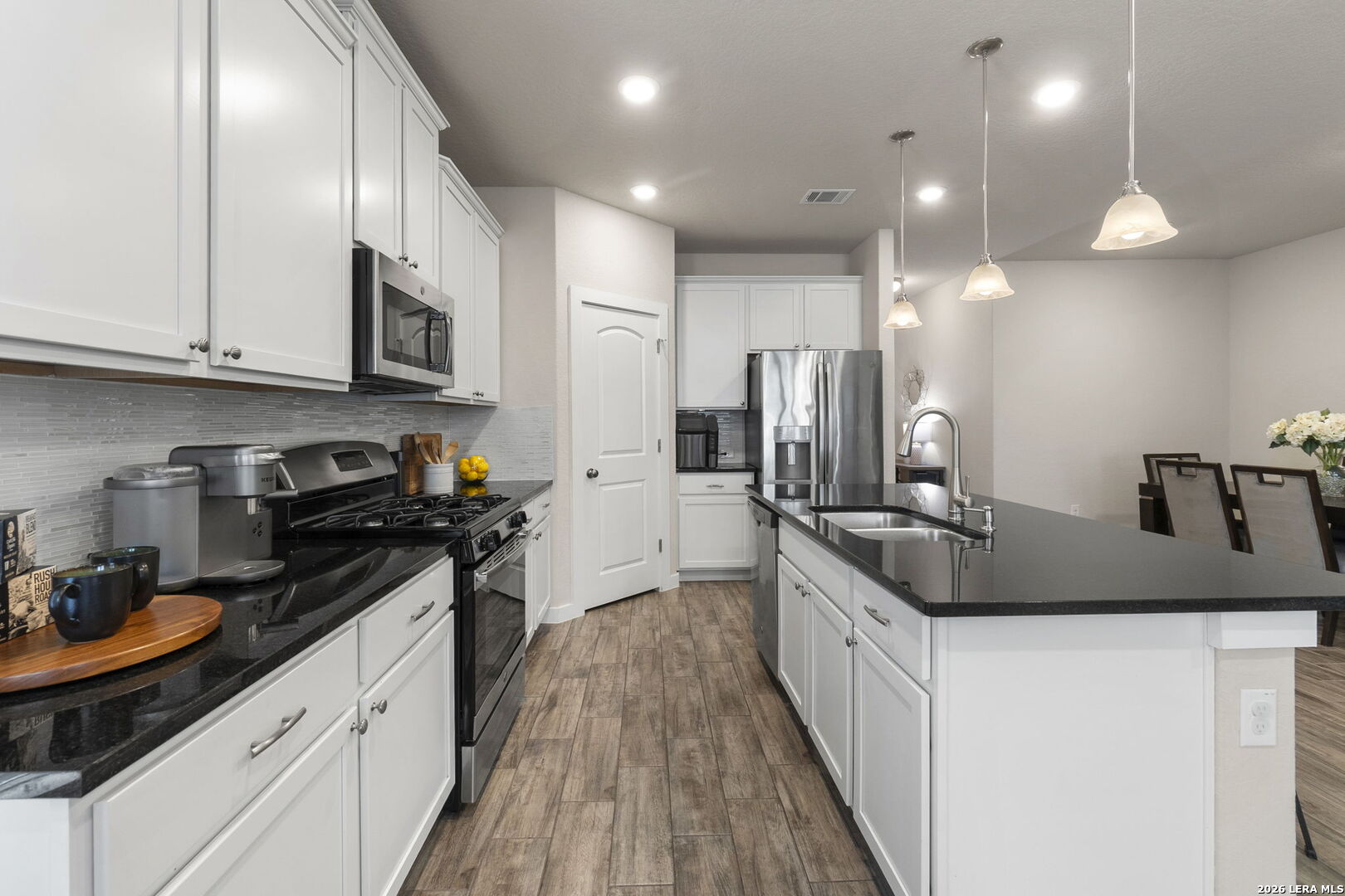 Located at 6211 Fox Peak Dr, San Antonio, TX 78247, this 4-bedroom, 2-bath residence offers a functional layout designed for comfortable living and everyday convenience. The foyer opens into an open-concept dining, living, and kitchen area that creates a natural flow for gatherings and daily routines.The kitchen features an eat-in island and a sizable pantry, providing practical storage and workspace while remaining connected to the main living areas. A wall of windows brighten the living room with natural light, adding to the open and inviting atmosphere.The primary bedroom offers a comfortable retreat with an en suite featuring dual vanities, beautiful shower and a walk-in closet. Secondary bedrooms are well sized and flexible for guests, work, or hobbies. The extra large 2.5 car garage offers plenty of space for parking and storage. Outside, a covered patio overlooks the backyard, creating space to relax, entertain, or enjoy time outdoors. Conveniently located in San Antonio with access to nearby shopping, dining, and major roadways, this property blends functionality and location. Schedule your private showing to experience all that 6211 Fox Peak Dr has to offer.