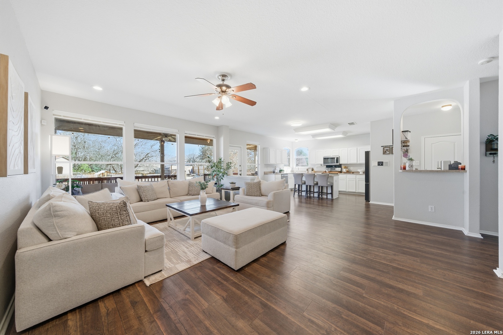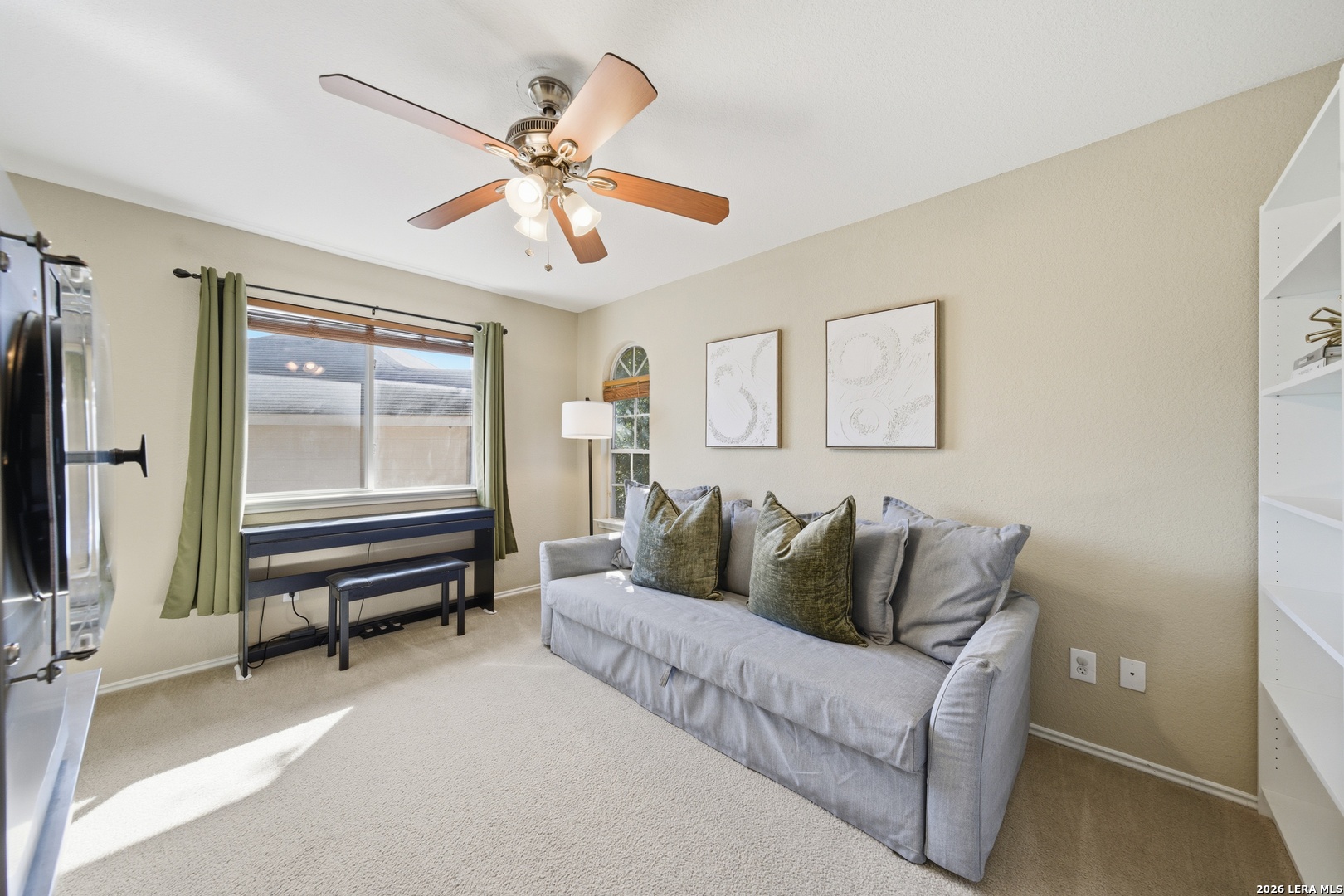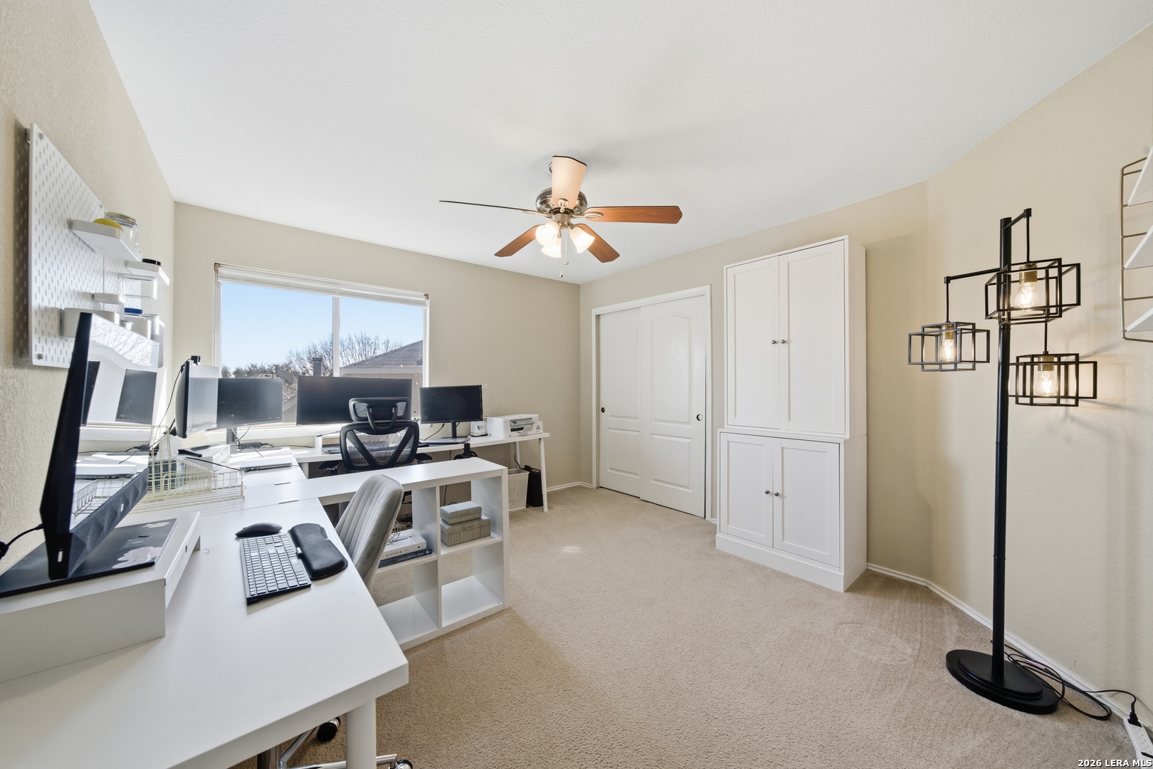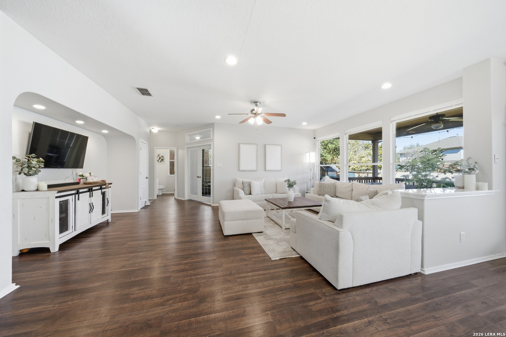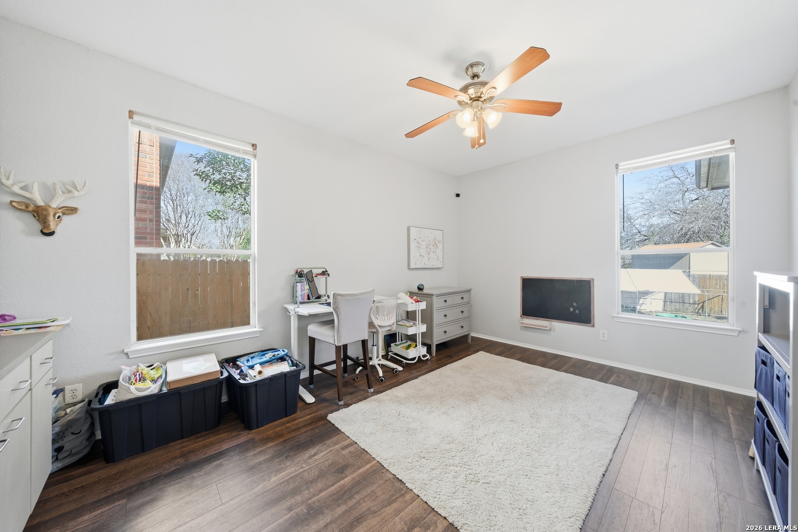 Spacious and inviting single family home in the desirable Riverstone at Alamo Ranch community, offering comfort, function, and flexibility in a well thought out layout. This 4 bedroom, 2.5 bath home features an open concept living area, a modern kitchen with ample counter space, Stainless steel appliances, with a stove that can be converted to gas or kept electric and a bright dining area ideal for entertaining. The primary suite includes his and hers walk in closets, adding both space and convenience. Downstairs also features a dedicated formal office, perfect for working from home or converting into an additional bedroom if needed. The interior has been freshly painted with modern gray tones and white ceilings, with hardwood floors throughout the downstairs. A new roof was installed in 2023, along with a water softener in 2025 and a filtration system under the kitchen sink for added peace of mind. Upstairs, the enclosed loft creates a private flex space with the potential for a 5th bedroom, media room, or office, plus an additional bonus room that could be converted into another bedroom, offering the potential for up to 6 bedrooms total. Step outside to a private backyard featuring an above ground pool with deck, a greenhouse area with pavers, and a shed that conveys. Enjoy walkable access to the amenity center, elementary school, and nearby favorites like HEB, Bubba's, shopping, dining, and easy access to major highways, making everyday living both convenient and enjoyable.