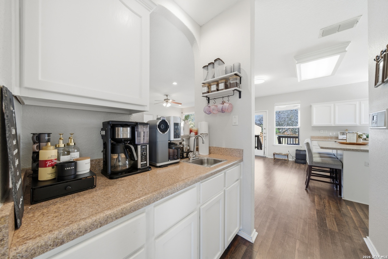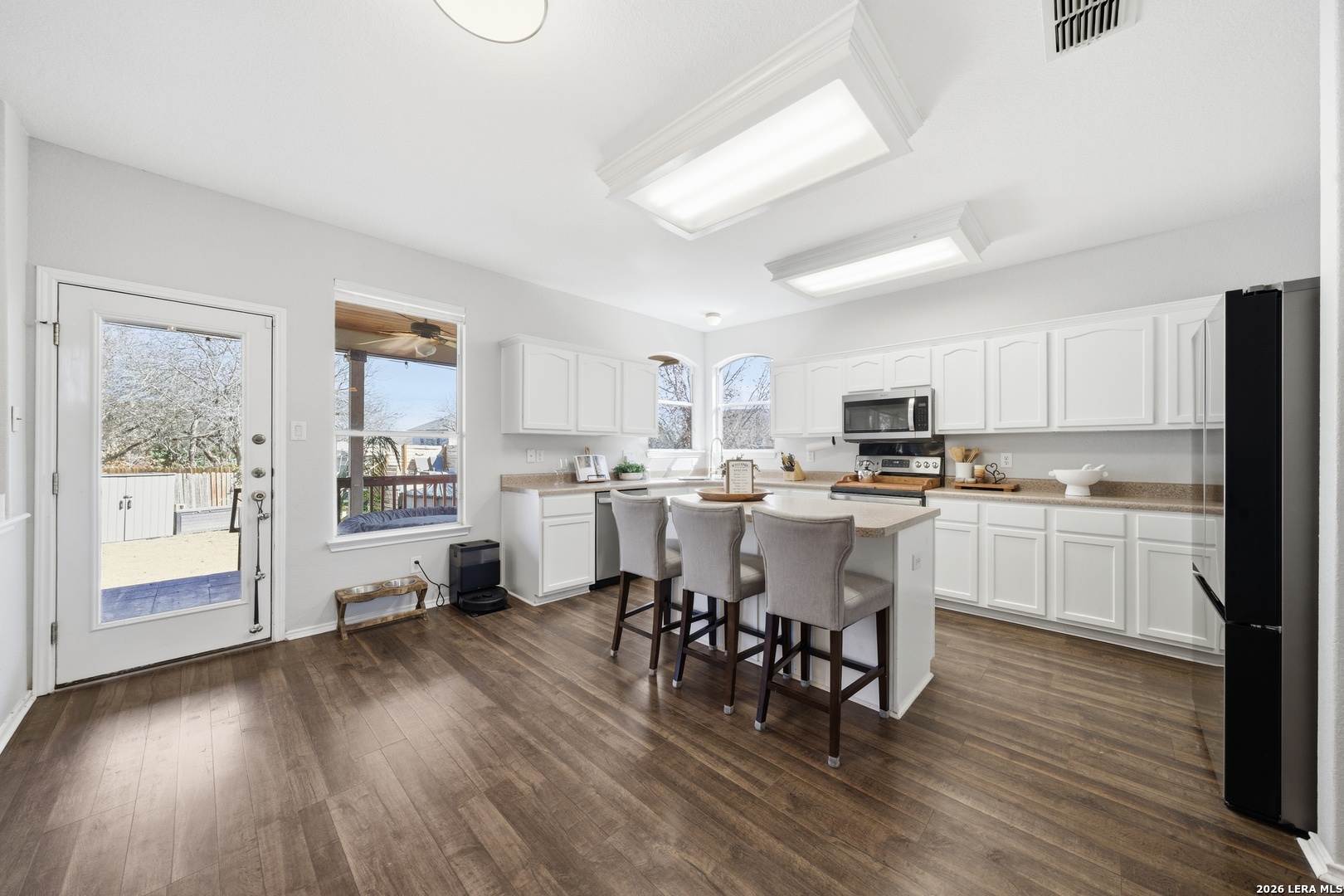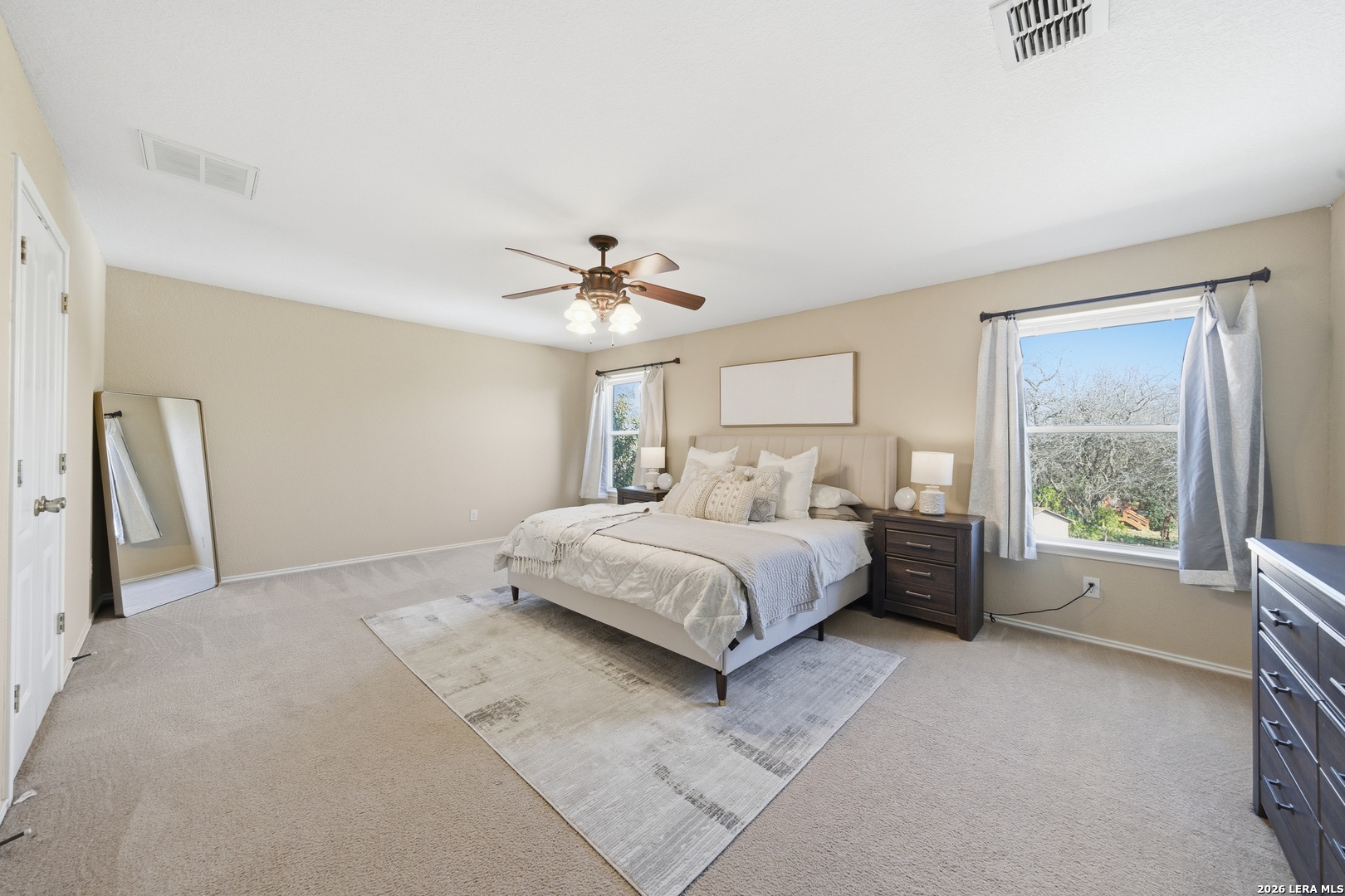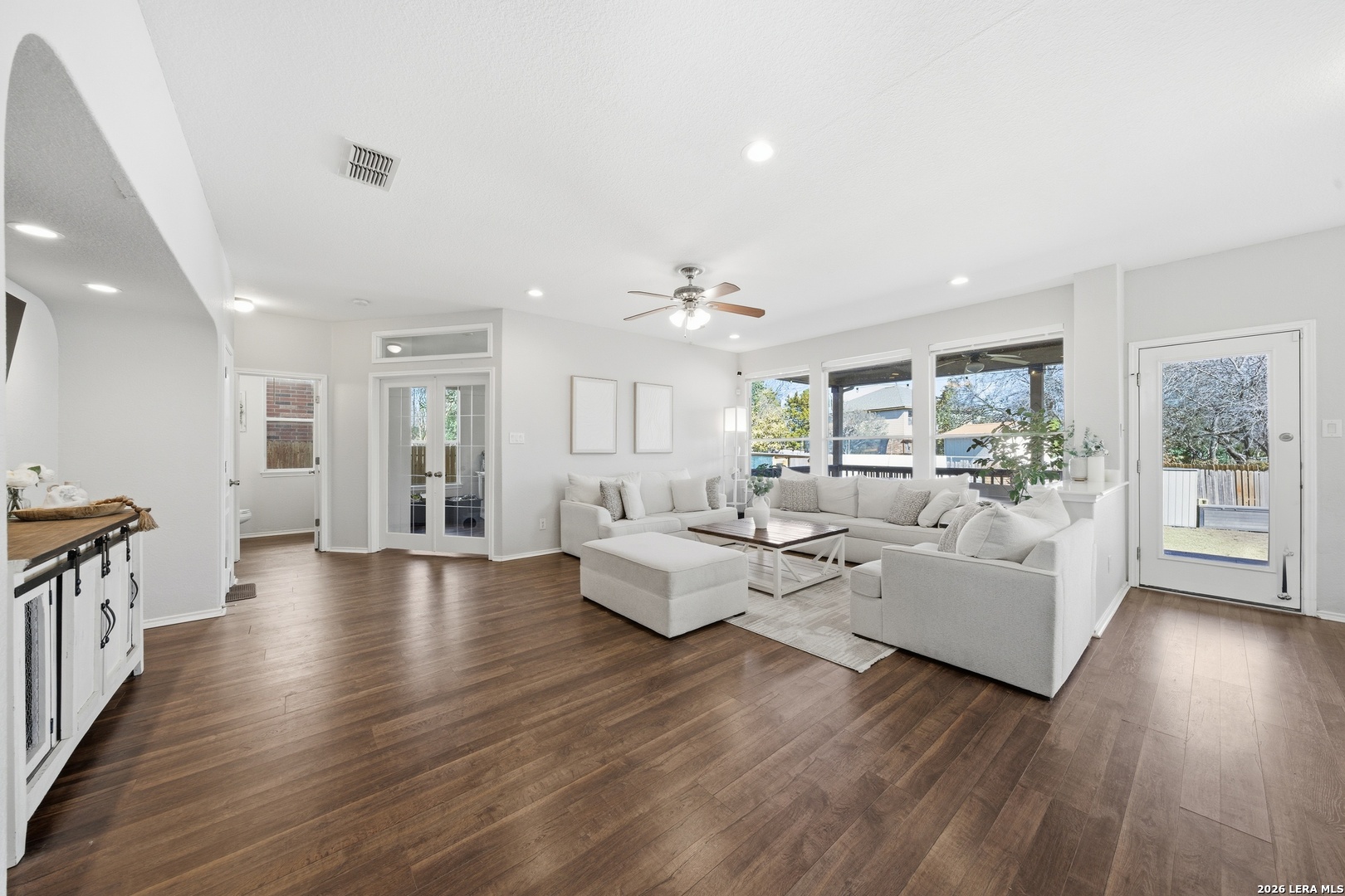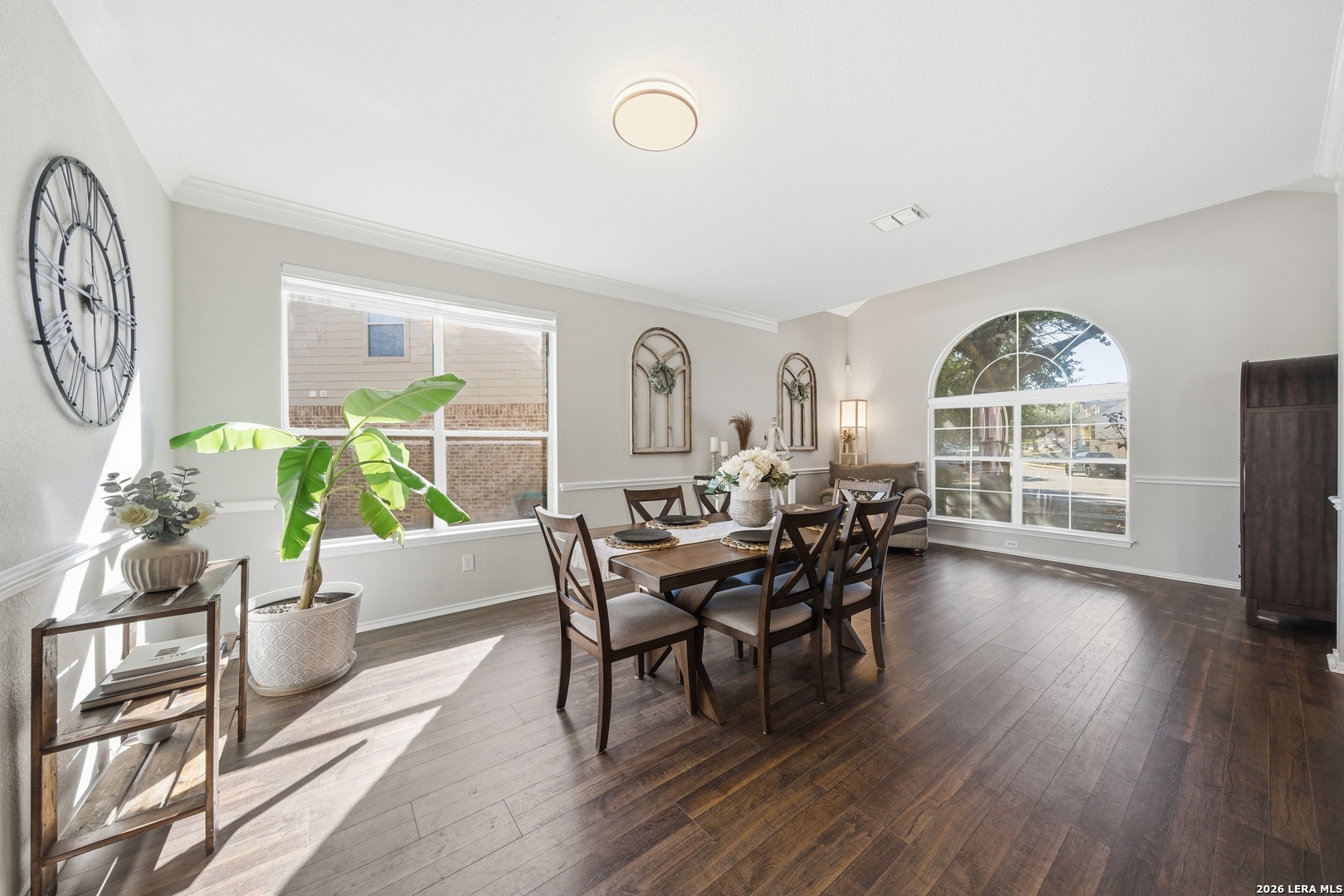 Spacious and inviting single family home in the desirable Riverstone at Alamo Ranch community, offering comfort, function, and flexibility in a well thought out layout. This 4 bedroom, 2.5 bath home features an open concept living area, a modern kitchen with ample counter space, Stainless steel appliances, with a stove that can be converted to gas or kept electric and a bright dining area ideal for entertaining. The primary suite includes his and hers walk in closets, adding both space and convenience. Downstairs also features a dedicated formal office, perfect for working from home or converting into an additional bedroom if needed. The interior has been freshly painted with modern gray tones and white ceilings, with hardwood floors throughout the downstairs. A new roof was installed in 2023, along with a water softener in 2025 and a filtration system under the kitchen sink for added peace of mind. Upstairs, the enclosed loft creates a private flex space with the potential for a 5th bedroom, media room, or office, plus an additional bonus room that could be converted into another bedroom, offering the potential for up to 6 bedrooms total. Step outside to a private backyard featuring an above ground pool with deck, a greenhouse area with pavers, and a shed that conveys. Enjoy walkable access to the amenity center, elementary school, and nearby favorites like HEB, Bubba's, shopping, dining, and easy access to major highways, making everyday living both convenient and enjoyable.