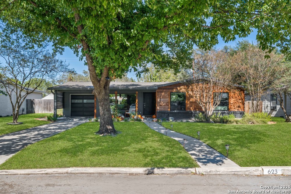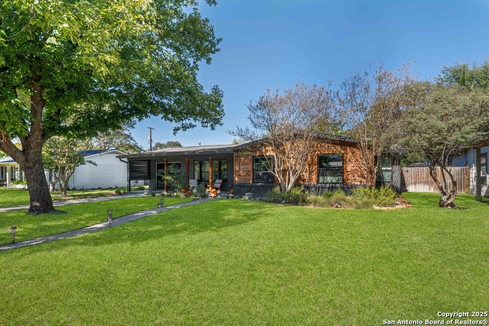 Welcome home to this stunningly reimagined mid-century modern retreat! Essentially rebuilt from the studs up, this one-story residence offers modern comfort and timeless design with every major upgrade already completed. Major upgrades include refinished hardwood floors (2023), all-new stainless steel appliances, soft-close cabinetry, and an open, light-filled layout-ideal for gatherings and entertaining. Recent updates include a new roof (2022), HVAC system (2022), air ducts (2023), extensive plumbing and electrical work (2022), a tankless water heater (2023), and soundproofing in the front wing of the house. Additional 2023 improvements include new windows, drywall, siding, doors, gutters, landscaping, sprinkler system, and attic insulation. Offering 5 bedrooms and 3 bathrooms in a functional split layout-allowing flexibility for a private guest suite or home office-this home is located within the highly sought-after Alamo Heights ISD, just steps from Woodridge Elementary and Alamo Heights Junior High.