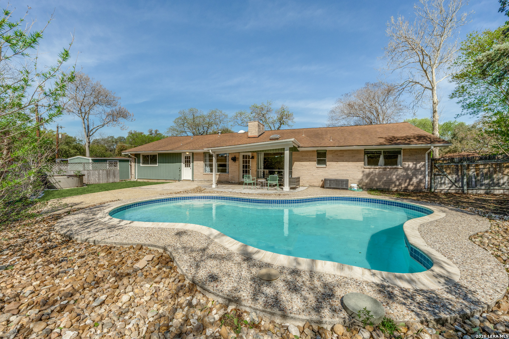 Experience modern luxury in the heart of the prestigious Windcrest community with this stunning, recently renovated ranch-style home at 626 Moorside Dr. This residence has been meticulously updated with a fresh, contemporary palette of interior paint, new designer lighting, and flooring. The heart of the home features a refreshed kitchen equipped with brand-new appliances, while the primary suite serves as a true retreat with a completely renovated master bathroom. Situated on an expansive, oversized 0.34-acre lot, the outdoor living space is an entertainer's dream, boasting a private in-ground pool that has been freshly resurfaced with new tile, new pool light, and updated pool equipment. Additional amenities include a two-car garage, a convenient carport, and a substantial storage shed featuring a new roof and flooring. Living in the "City of Lights" offers an unparalleled lifestyle with NO HOA fees and access to premier amenities. Residents enjoy the Windcrest Golf Club, a scenic 9-hole course with a driving range and social clubhouse. The city is a hub for active living, featuring Takas Park with its tennis, pickleball, and basketball courts, as well as multiple walking trails like Windy Hollow and Brook Falls. Families will appreciate being within the highly-rated North East ISD and minutes from JBSA-Fort Sam Houston and BAMC. From the world-famous holiday light displays to community events at the civic center, Windcrest provides a small-town atmosphere with big-city convenience.