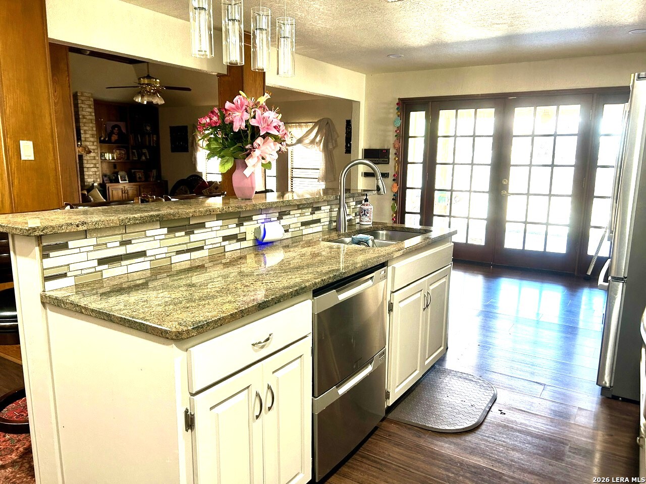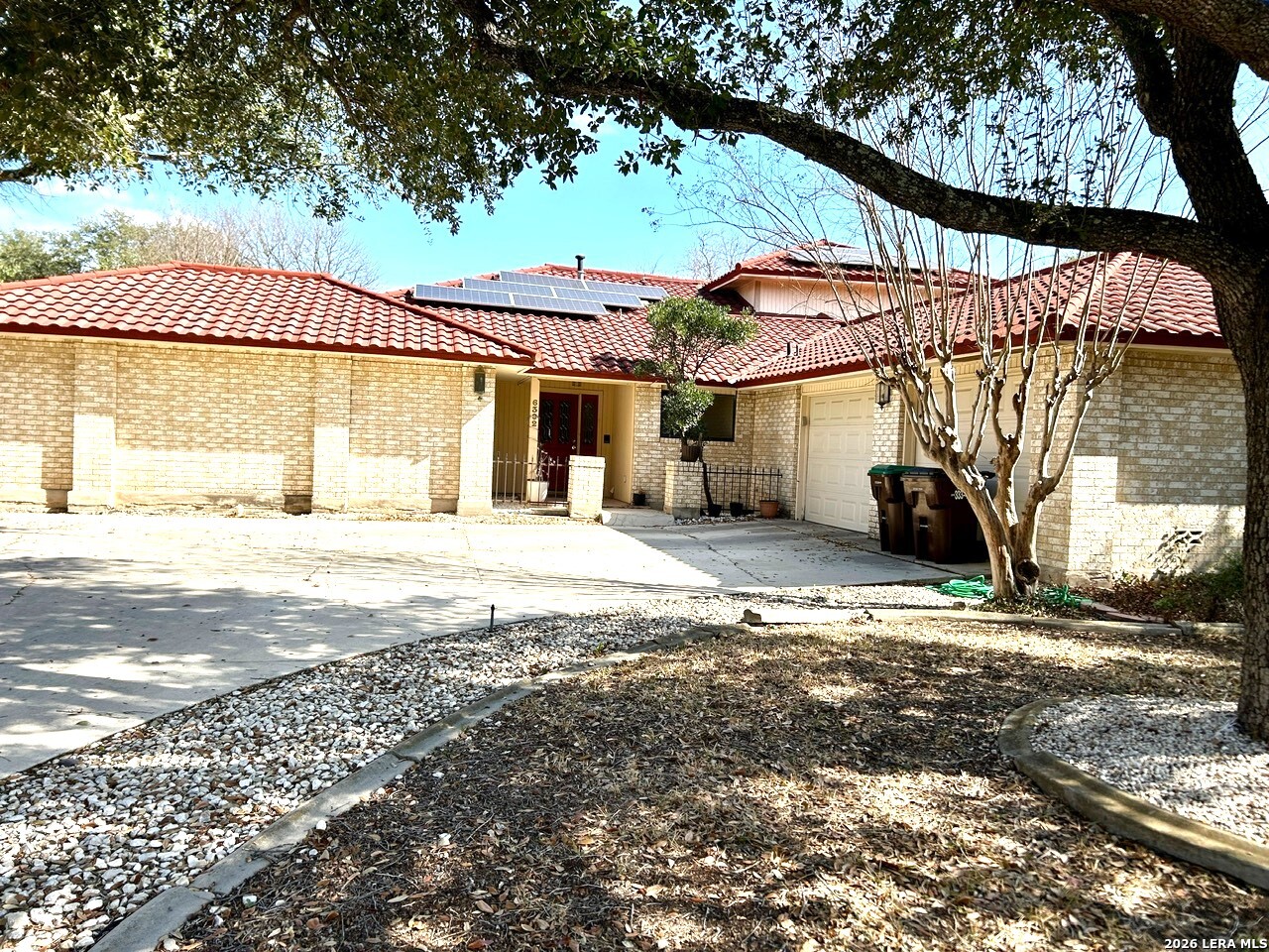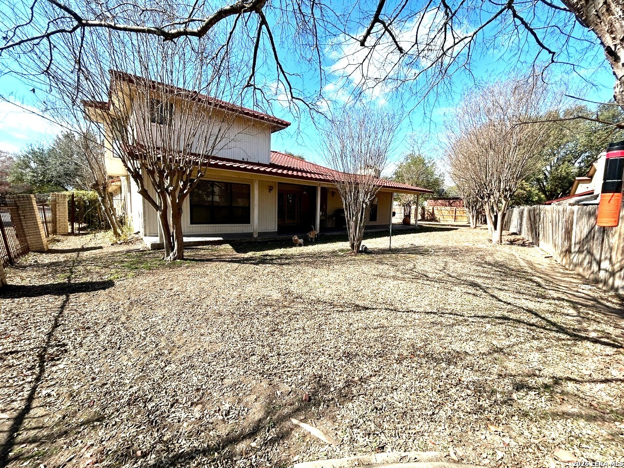 Spanish Style Villa, oversized corner lot, Nestled in the Woodlake Estates! $15,000 towards Closing cost fees!! Metal Tile Roof, with a lifetime warranty -Bosch Appliances (all appliances convey), home features over 3,000 sq ft, 4 bedrooms and 3 full baths (Including the primary and secondary bedrooms and 2 full baths on the main level), Upstairs, two addition bedrooms provide plenty of space for family and visitors. island bar overlooking living room with a ceiling to floor brick and mantal fireplace home also has walls of sunlight! this home has beautiful mature trees, walk out the French wood doors to a back yard with a covered titled patio ready for you to host your next celebration! primary bedroom features a private wraparound patio that leads to outside courtyard. This home offers one of the largest lots in the subdivision at nearly 1/3 acre. a spacious two-car garage, offering convenience this home provides easy access to Randolph AB, schools, shopping, dining, and major highways- This home is a must see, schedule your appointment today!