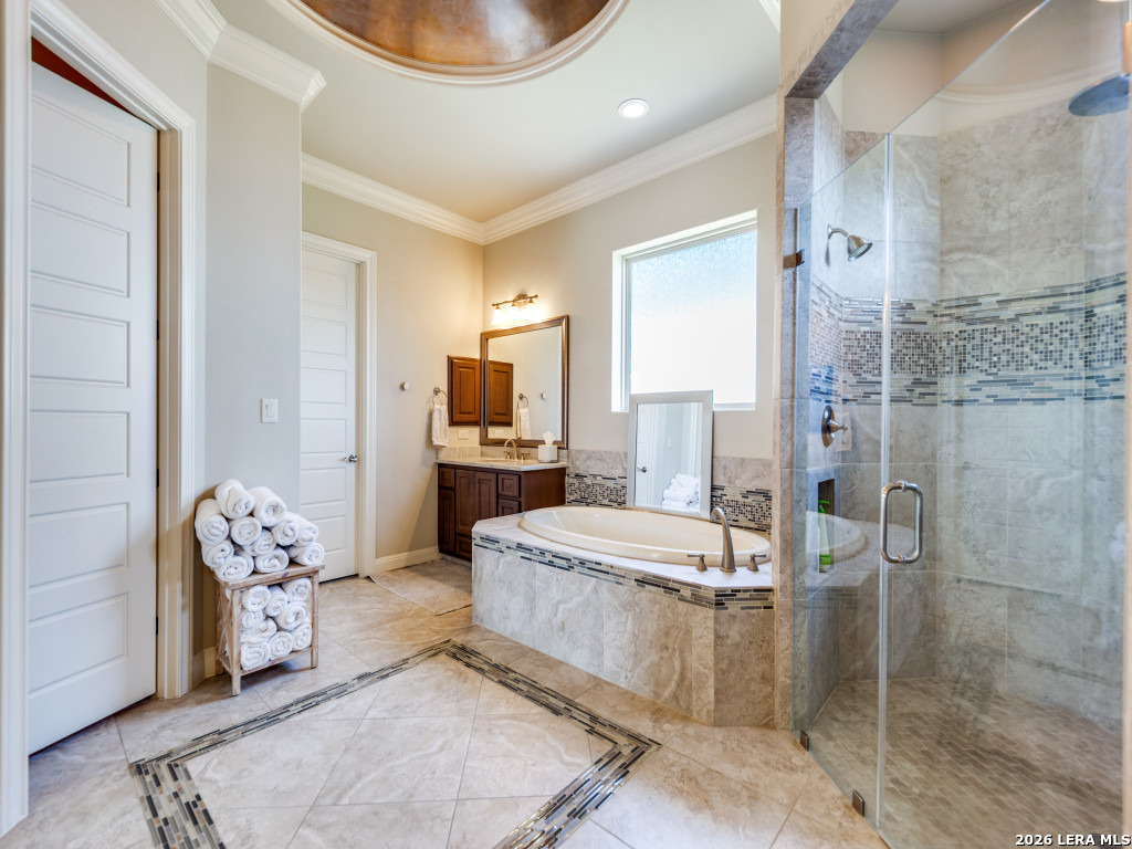 Fully furnished and move-in ready in The Dominion, this stunning 5-bedroom, 5.5-bath residence offers luxury living with space to entertain and unwind. Multiple living areas are complemented by soaring ceilings and a dramatic floor-to-ceiling stone fireplace that anchors the main gathering space. Enjoy a true resort-style backyard featuring a sparkling pool and inviting outdoor areas perfect for entertaining. Inside, the home is designed for fun and relaxation with a private theater room, game room, and even a golf simulator to keep your swing sharp year-round. Tastefully furnished throughout with high-end pieces, this home offers a seamless, turnkey opportunity to experience San Antonio living at its finest in one of the city's most prestigious communities.
