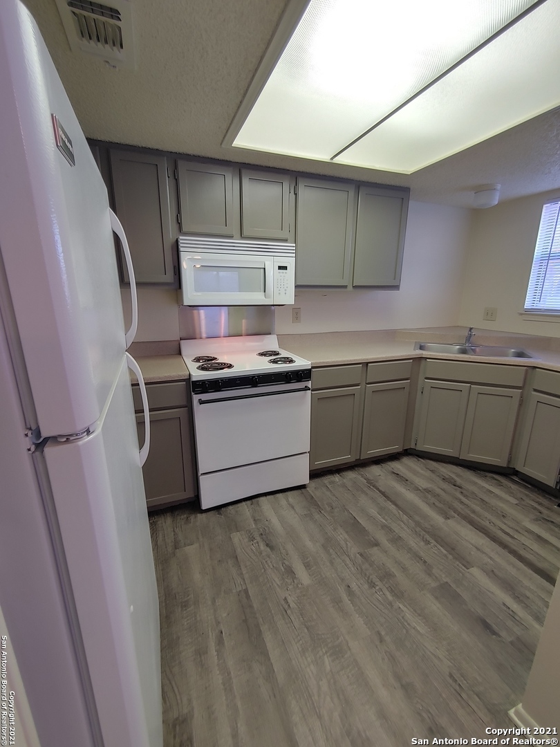 Large 1 bd 1 bath in a gated community, vinyl wood plank floors through out, full size washer & dryer included. Close to I-35, BAMC, Ft Sam Houston, nearby schools & shopping, entertainments **TENANT WILL PAY $45 PER MONTH FOR WATER SERVICE**