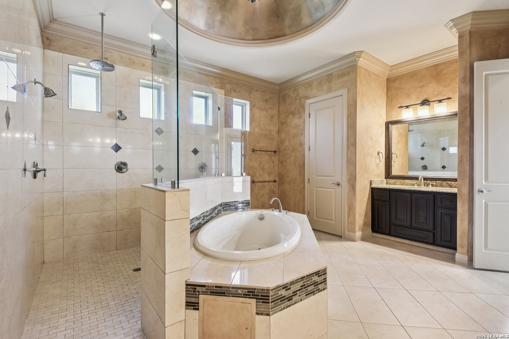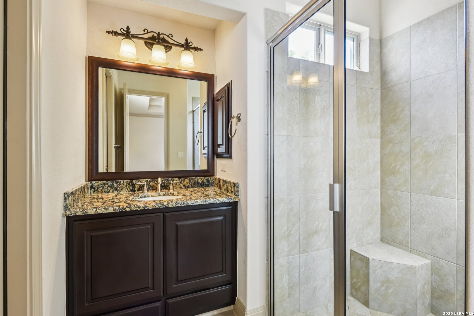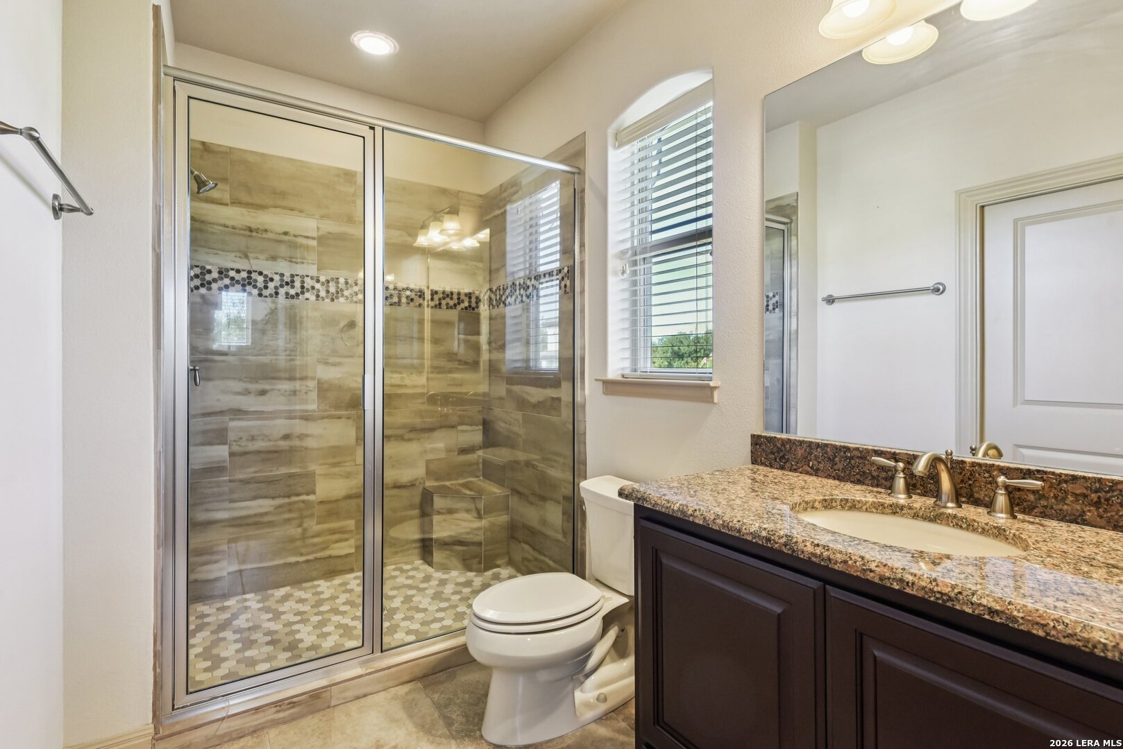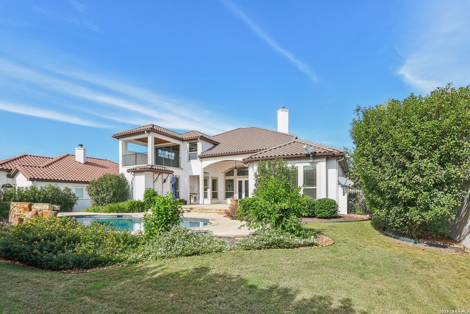 Looking for a spacious, elegant home with a resort style pool and total privacy? This impeccably maintained, move-in-ready 5 bed, 5.5 bath residence delivers it all. Featuring a main level primary suite, a mother-in-law suite with a full bath, dedicated office space, and a stunning resort style pool, it's perfect for working from home, relaxing, entertaining, or raising a family in one of San Antonio's most desirable communities. The upper level offers additional bedrooms, a game room with wet bar, and a full bathroom. Must see for yourself. Easy access to major highways, shopping, restaurants and parks.