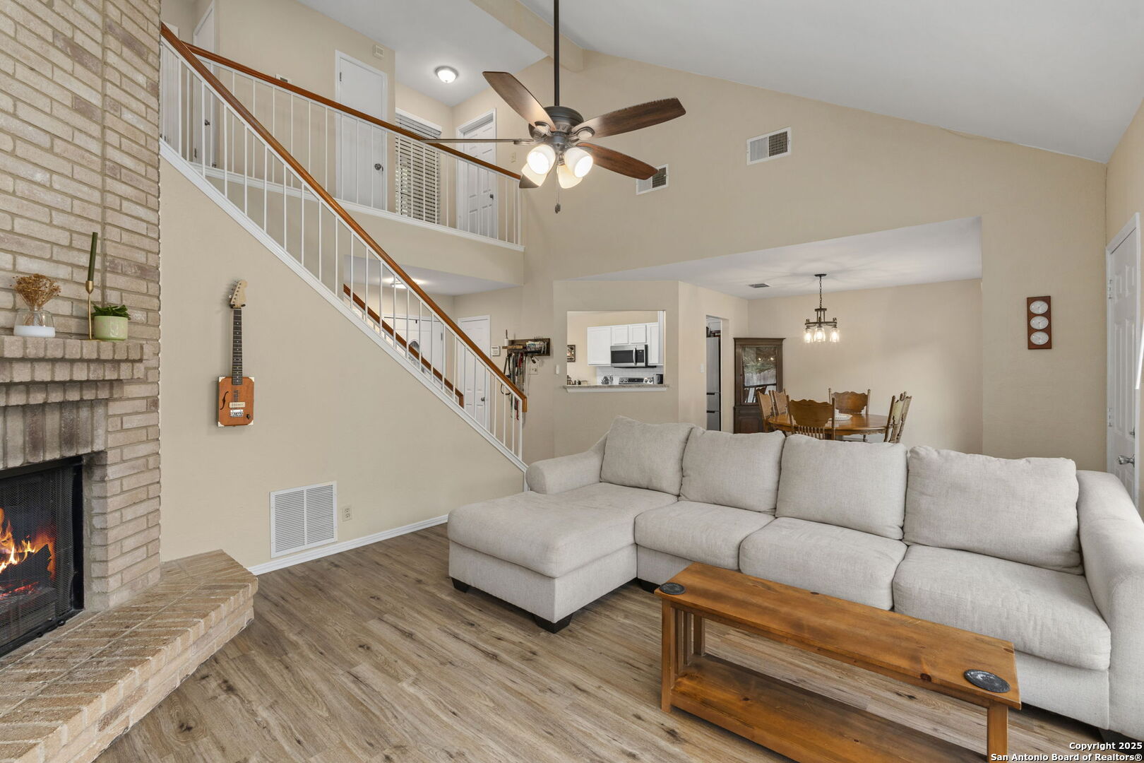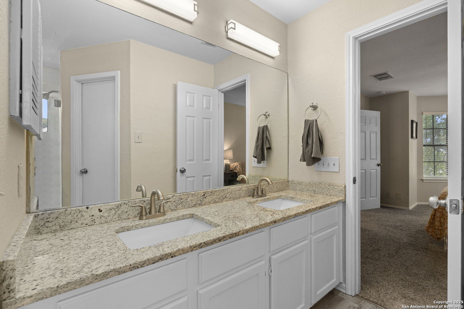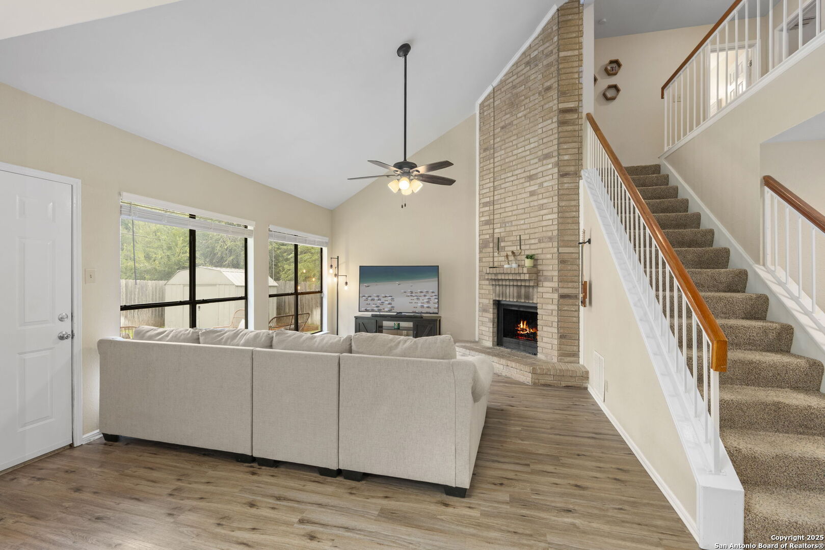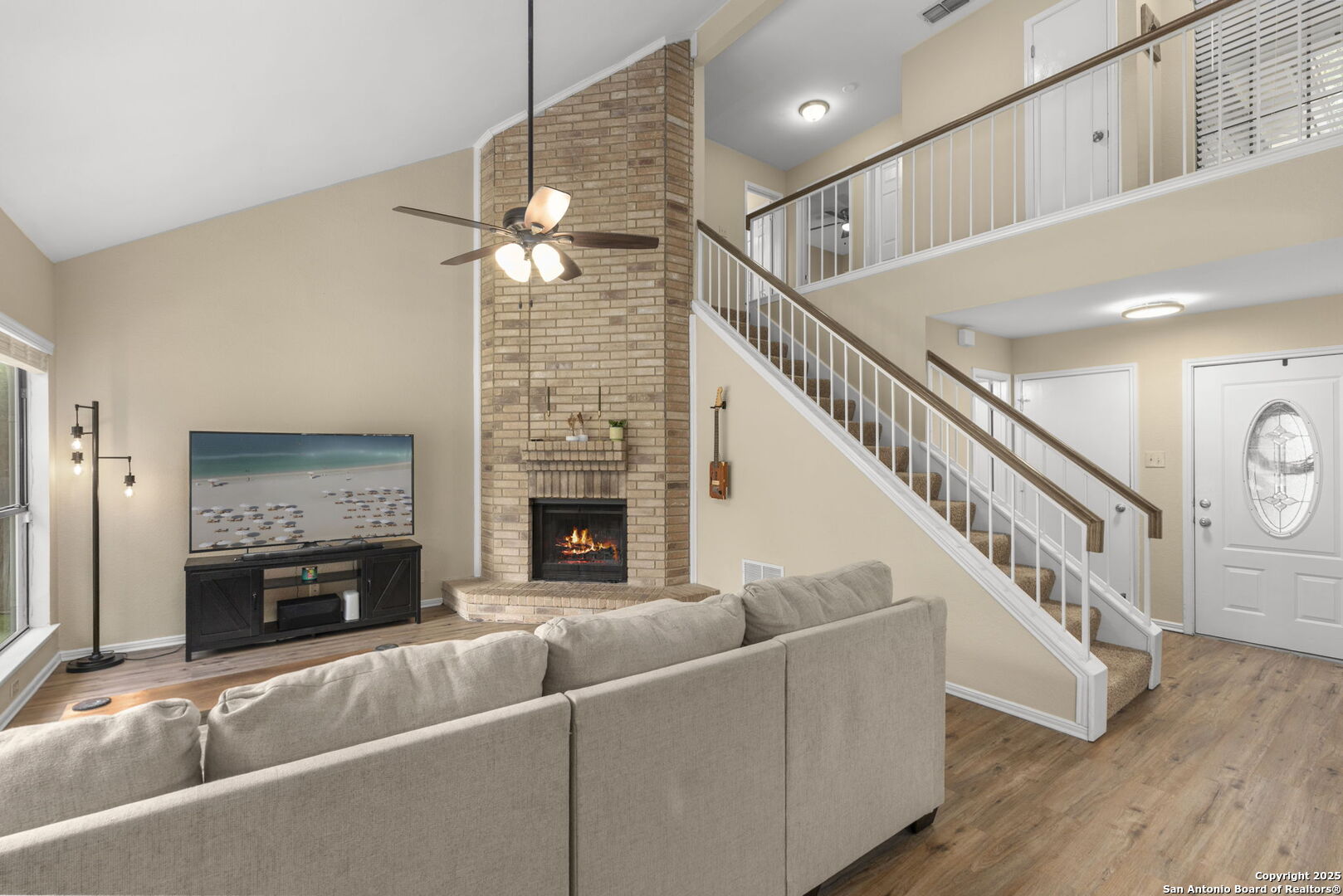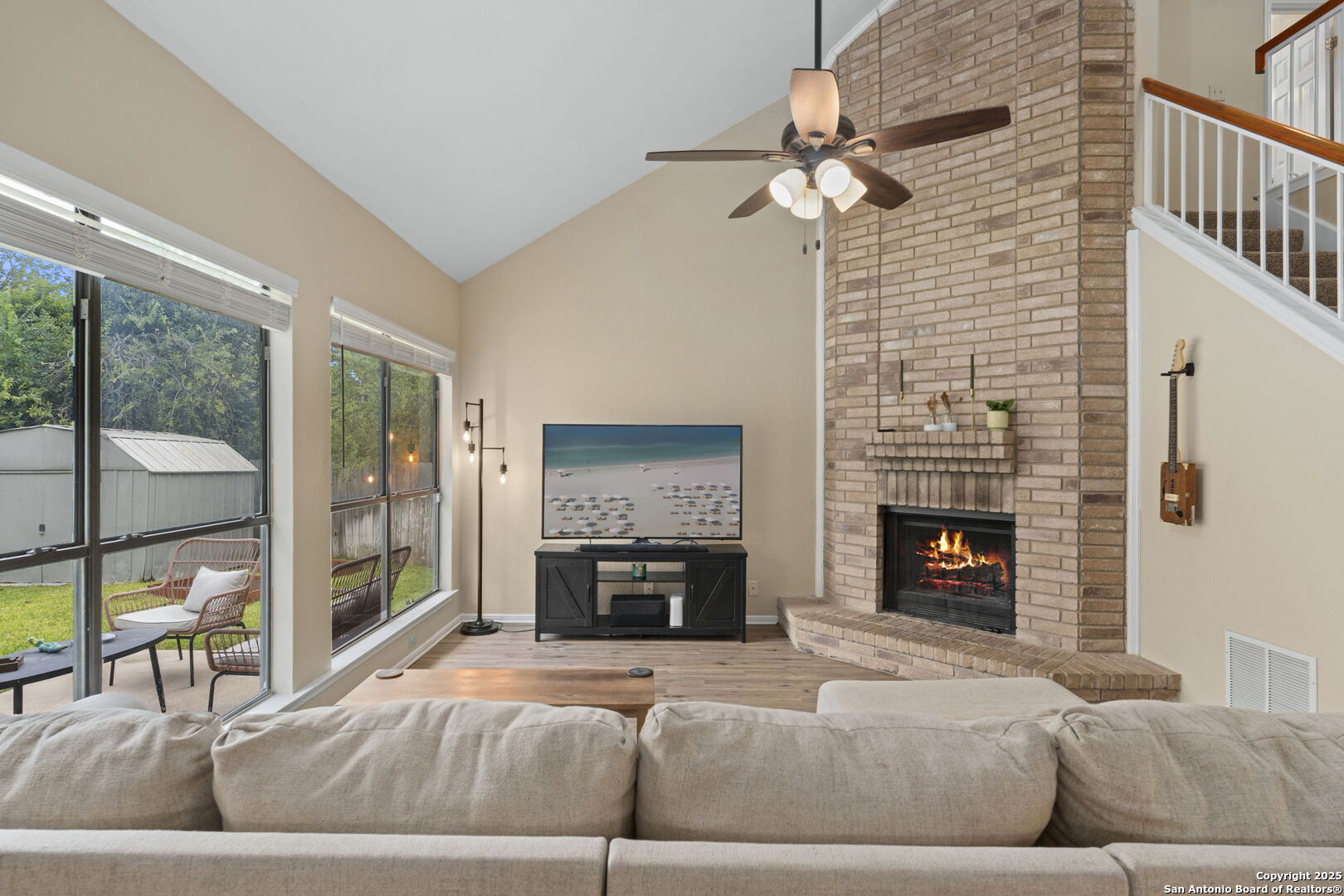 Price reduced to $296,000. Looking for a home in the Medical Center area come and see this well maintained two-story 3/2-1/2 bath home with 1550 Square feet of living space located in Apple Creek off Huebner/Babcock. Home is situated in a cul-de-sac. You will find an open floor plan with a beautiful floor to ceiling Fireplace in the living room, all bedrooms upstairs, updated kitchen, newer interior paint, gas, newer LVP flooring, granite counters, ceiling fans throughout, new roof 2019, water heater 2019, HVAC replaced in 2022, new epoxy garage floors, gutters, sprinklers, storage shed in backyard. Neighborhood amenities include a clubhouse, pool, bb court, volleyball court, tennis, playground and park. Easy access to 1-10/1604 offering you everything you need in your backyard.