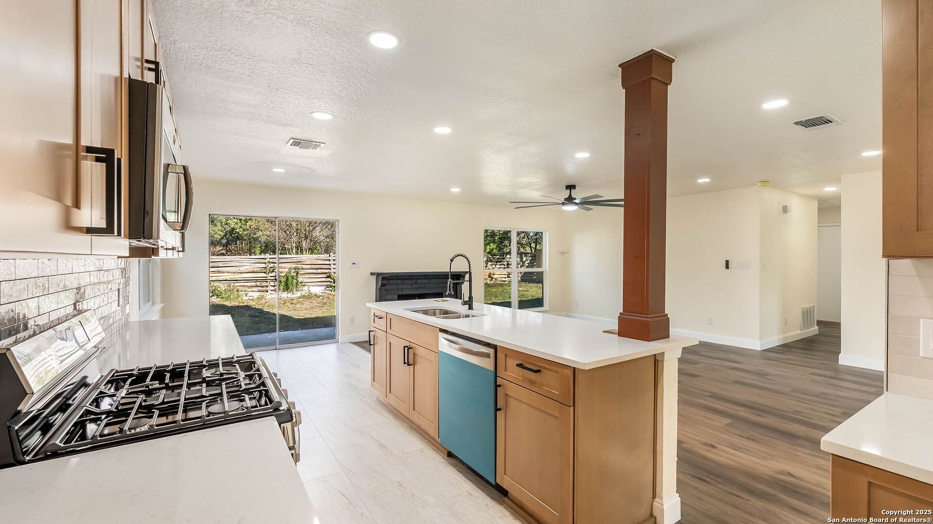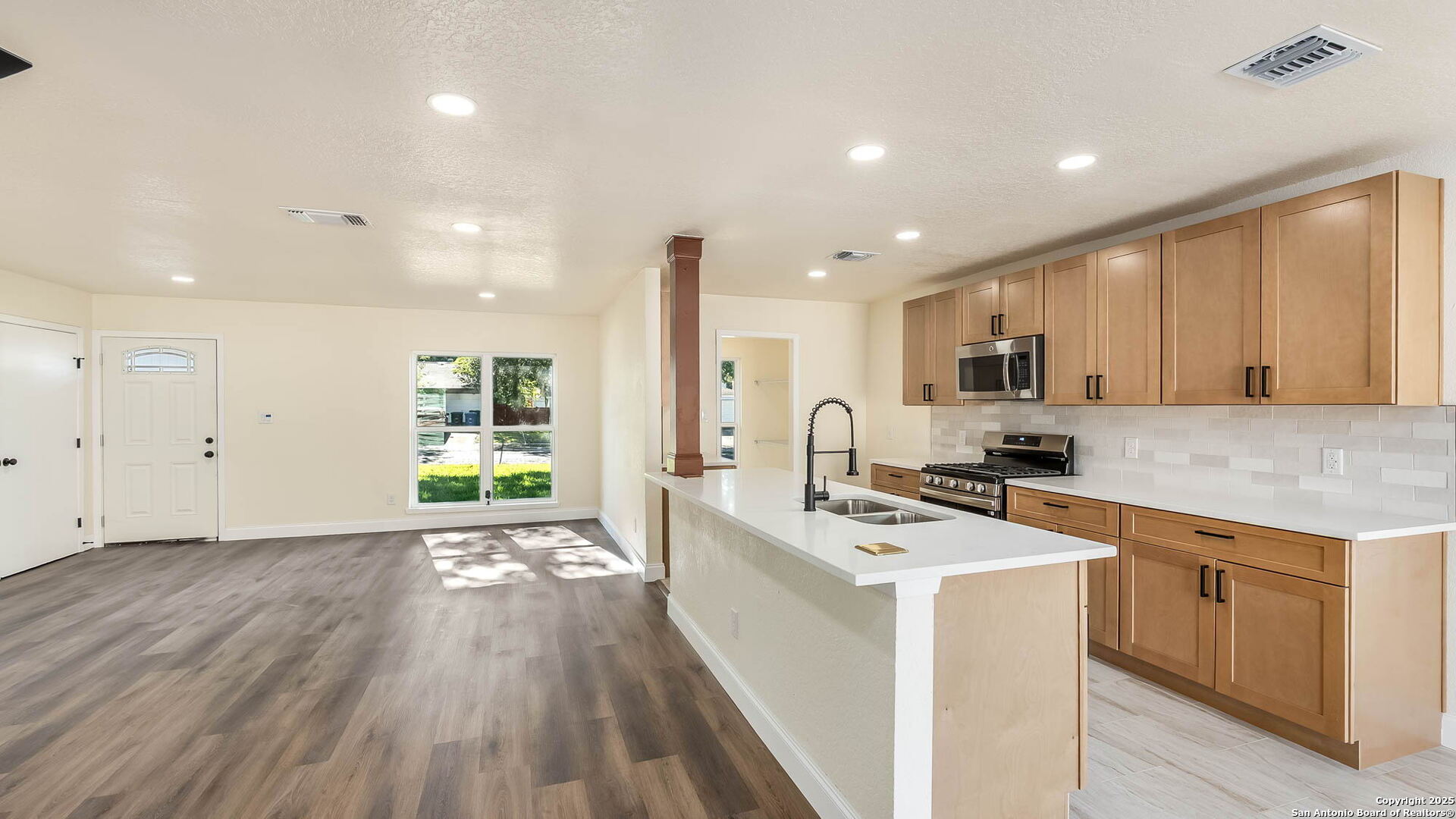 Step into this stunning 3-bedroom, 2-bathroom home offering 1,470 sq. ft. of stylish living space. Every major system has been updated-including brand-new windows, roof, and HVAC-giving you peace of mind for years to come. The heart of the home is the designer kitchen, featuring a large island perfect for entertaining, quartz countertops, soft-close natural wood cabinets, stainless steel appliances, and a gorgeous tiled backsplash. Both bathrooms have spa-like finishes, including fully tiled showers, natural wood vanities, and sleek quartz countertops.