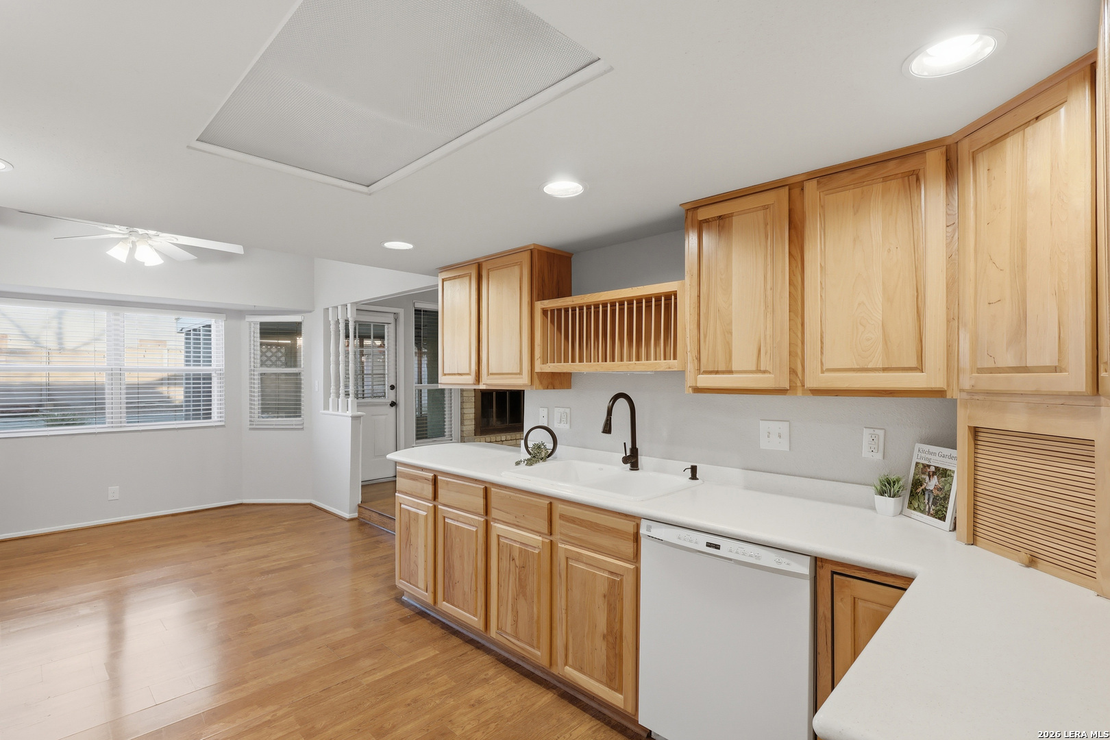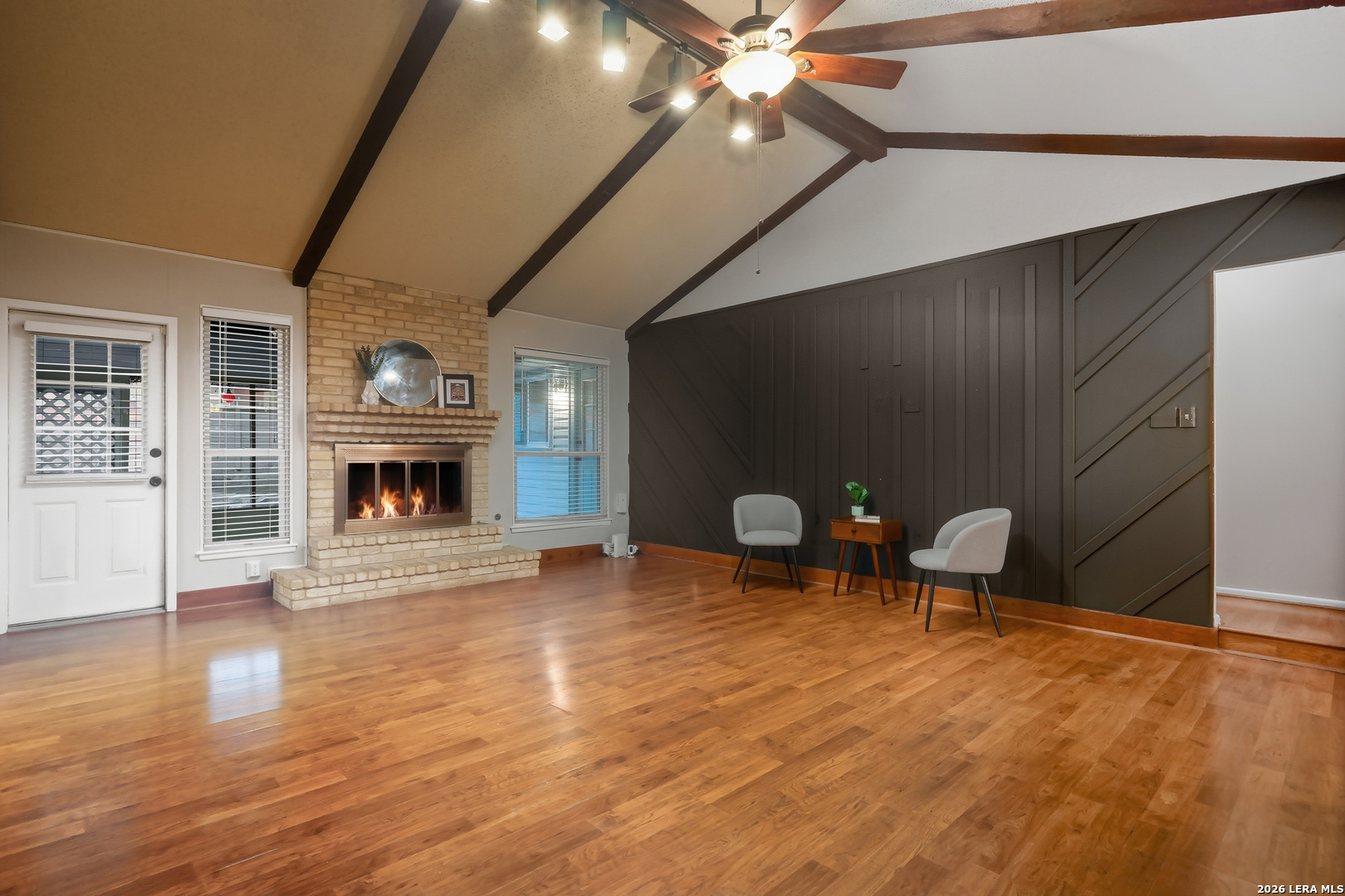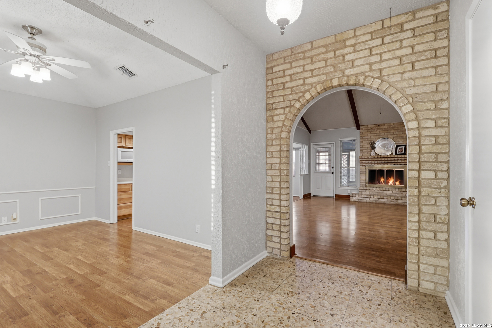 Welcome to 6339 Mary Jamison, a charming home in a convenient Northwest San Antonio location just minutes from Loop 410 and Bandera Rd, offering easy access to shopping, dining, and everyday essentials. This property features spacious living areas with vaulted ceilings, exposed beams, and a classic brick fireplace that gives the main living room warm character and charm. The layout offers great flow for everyday living and entertaining, with generous room sizes and plenty of natural light throughout. The backyard is a true standout, offering a pool with diving board, multiple outdoor entertaining areas, a deck, and a fire pit-perfect for enjoying Texas summers and hosting friends and family. With ample outdoor space, this yard provides endless potential to create your own personal retreat. Whether you're looking to move in and enjoy it as-is or put your own touches on it over time, this home offers a solid layout, great bones, and an excellent location.