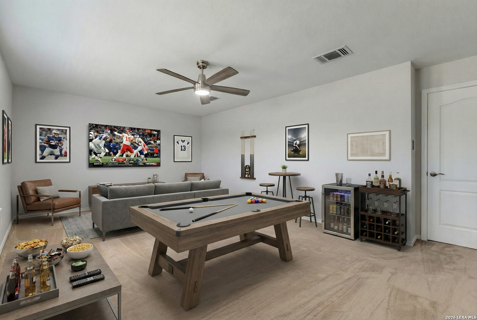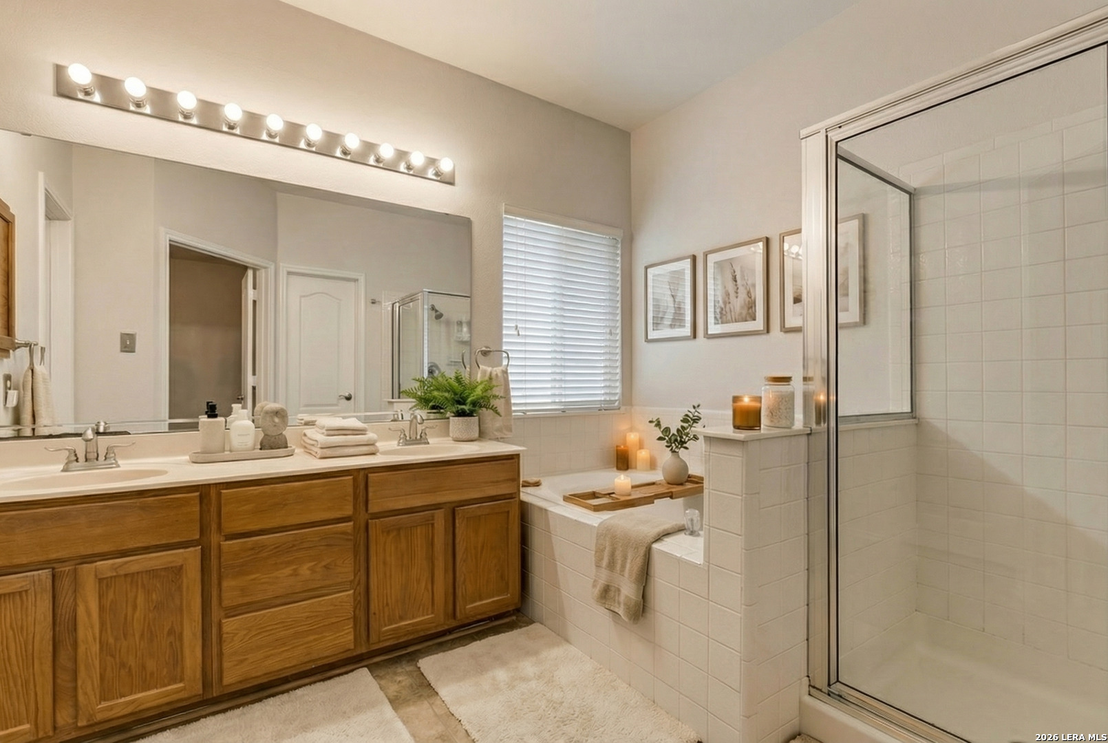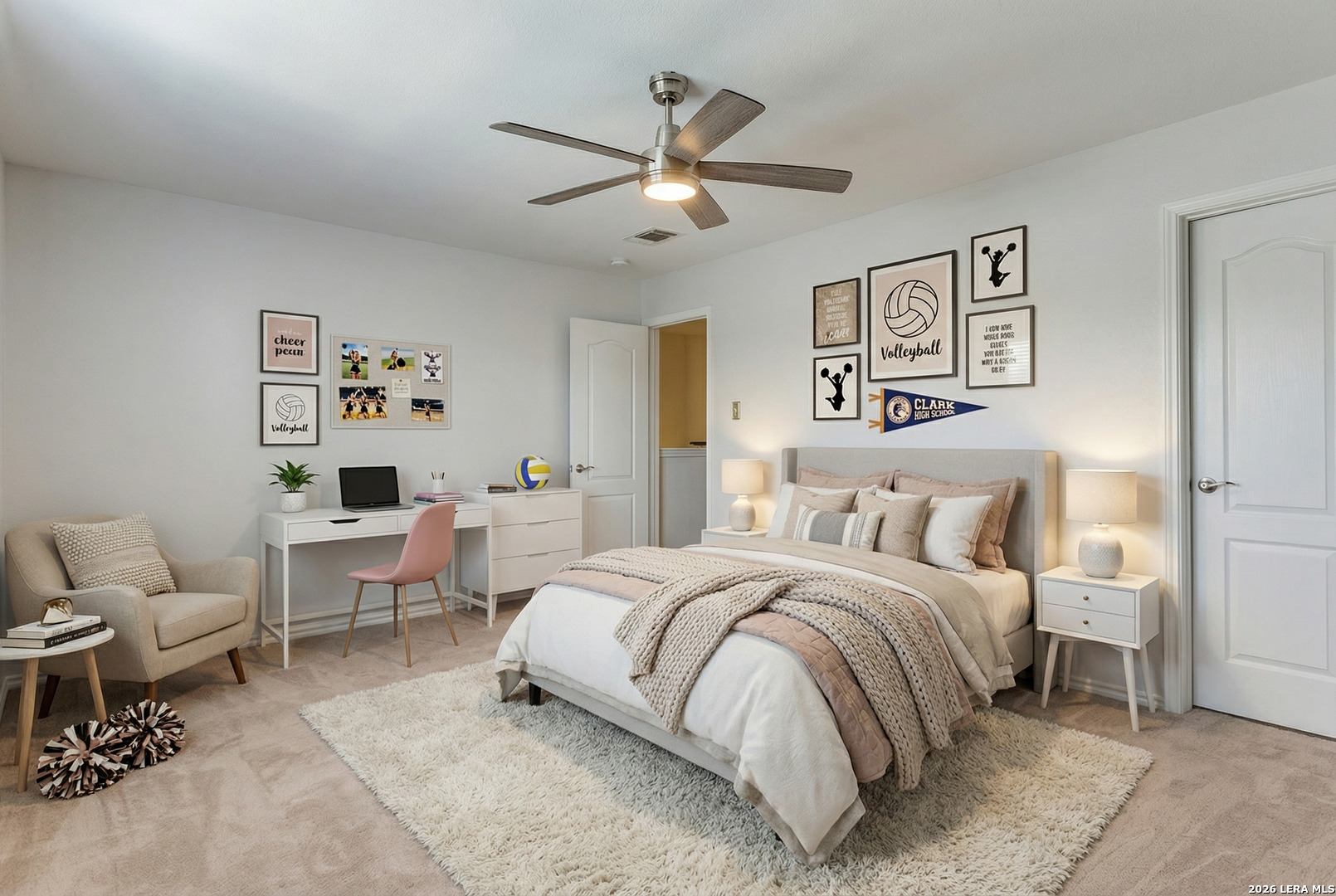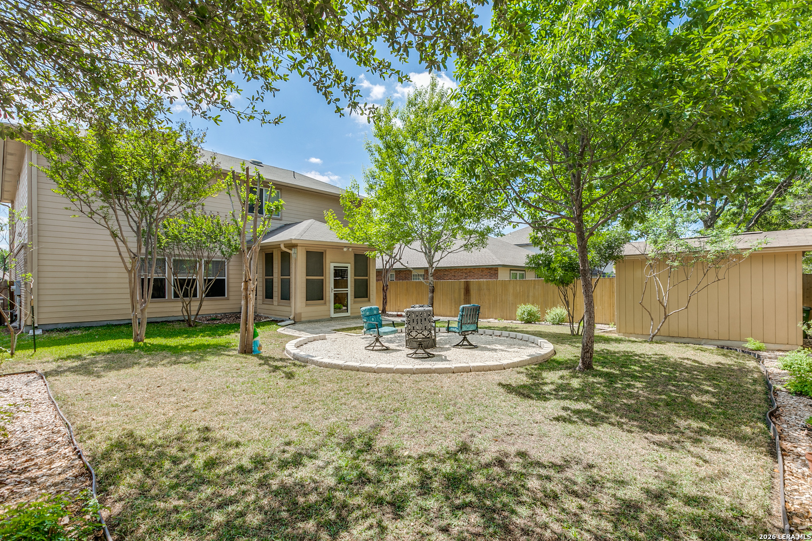 Located in the desirable Oakmont Downs neighborhood within the highly sought-after Northside Independent School District, this one-owner spacious 4-bedroom, 2.5-bath home offers 2,828 square feet of thoughtfully designed living space-ideal for a growing or multi-generational family. A standout feature of this home is the size of every bedroom. Each room is generously sized and includes a walk-in closet, providing ample storage and personal space for everyone. Whether accommodating a large family, guests, or a home office setup, this layout offers flexibility without compromise. Inside, you'll find multiple living and dining areas along with a large upstairs game room, creating the perfect balance of functionality and comfort. The interior has been freshly painted, giving the home a clean, updated, and move-in ready feel. The outdoor spaces have been thoughtfully redesigned for both enjoyment and low maintenance. The backyard is a show stopper and features a custom seating area and fire pit, making it an ideal setting for relaxing evenings or entertaining guests. A storage shed adds convenience and additional functionality. The majority of the backyard, along with the entire front yard, has been xeriscaped, offering excellent curb appeal while minimizing upkeep. Situated on a .152-acre lot with a 2-car garage, this home also includes access to an HOA community park and pavilion located at the end of the street-perfect for gatherings, play, and neighborhood connection. Location is key, and this home delivers-just 7 minutes from UTSA, 10 minutes from USAA, 10 minutes from Six Flags Fiesta Texas, and 10 minutes from The Shops at La Cantera, placing you near top employers, entertainment, and shopping. Built in 1998 and thoughtfully updated, this home offers the perfect combination of space, comfort, and low-maintenance living in a prime San Antonio location.