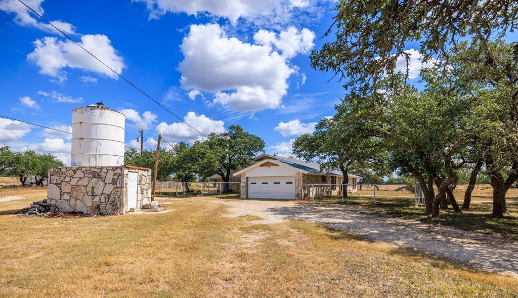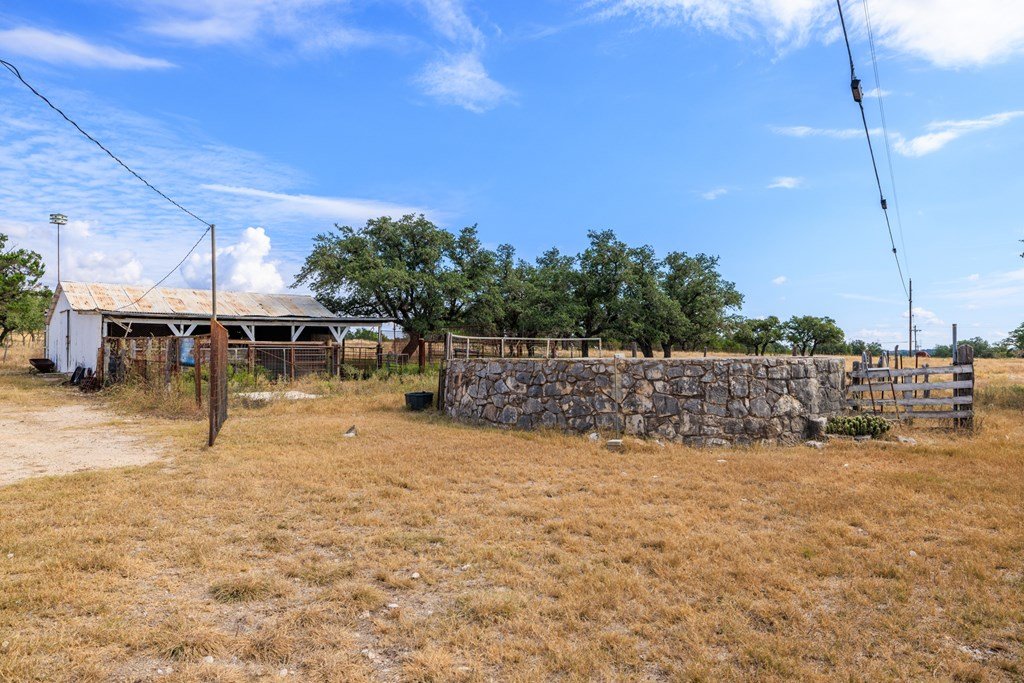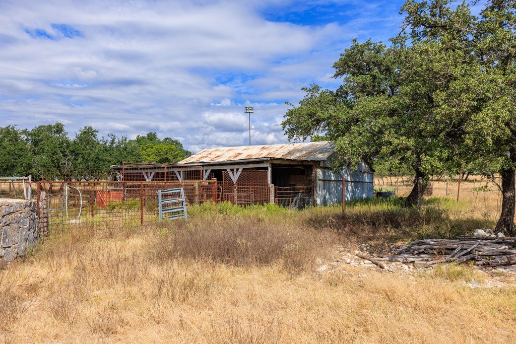 Discover the perfect blend of country living and modern convenience with this gently rolling, fully perimeter-fenced 16.35-acre property boasting frontage on FM 479 and quick access to IH-10 and Kerrville. The property features a warm and inviting 3-bedroom, 2-bath ranch-style home with flagstone veneer, a metal roof, and an attached 2-car garage. Inside, enjoy a spacious open-concept living area and a cozy den with a fireplace insert—ideal for relaxing evenings. Step outside to a fenced yard, perfect for pets or gardening, and take advantage of the barn/workshop for hobbies, storage, or small-scale agricultural use. A set of corrals adds versatility, making this property great for livestock enthusiasts. Whether you're seeking a weekend retreat, hobby farm, or full-time residence, this well-located property offers country charm just minutes from town amenities.