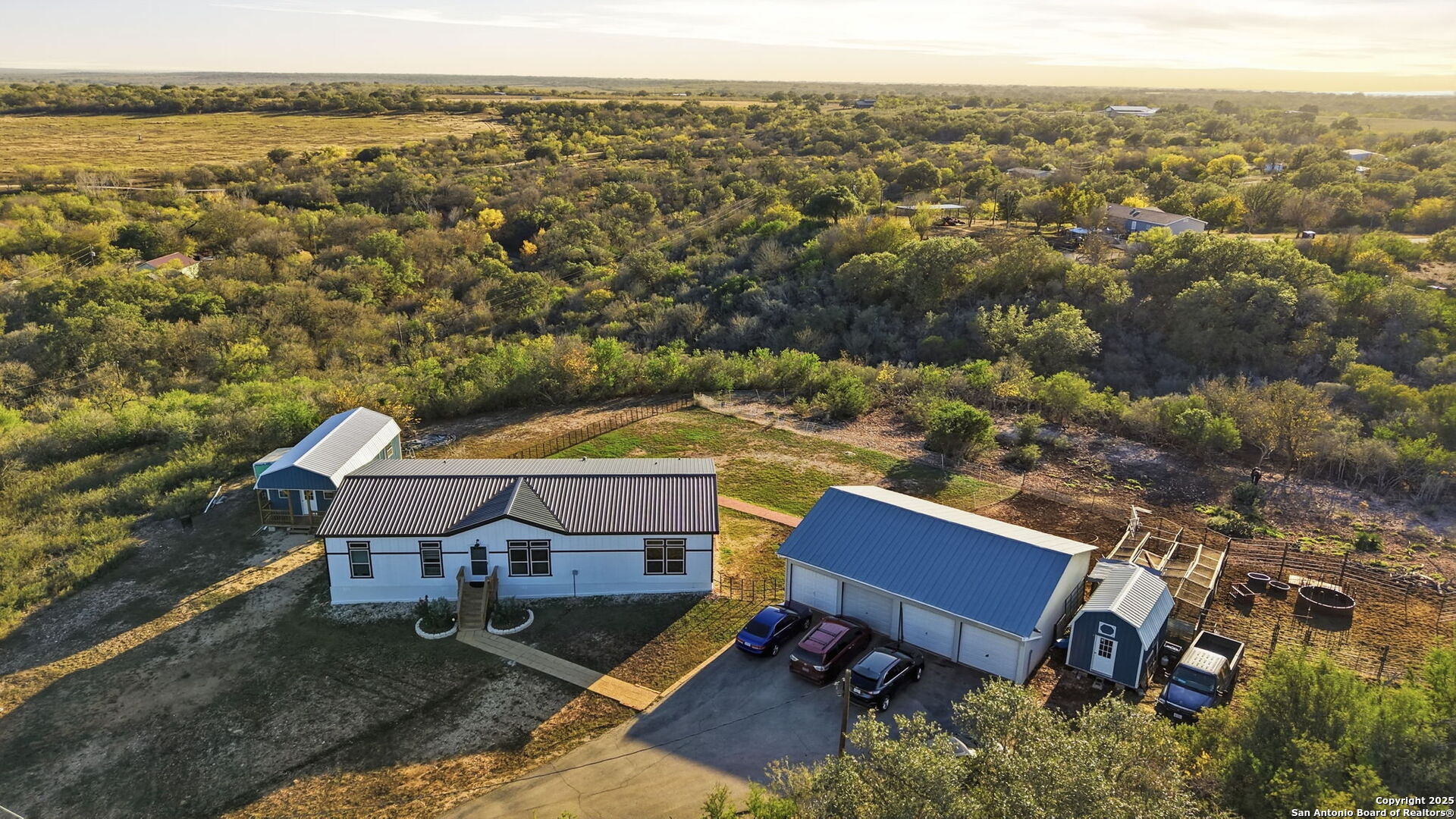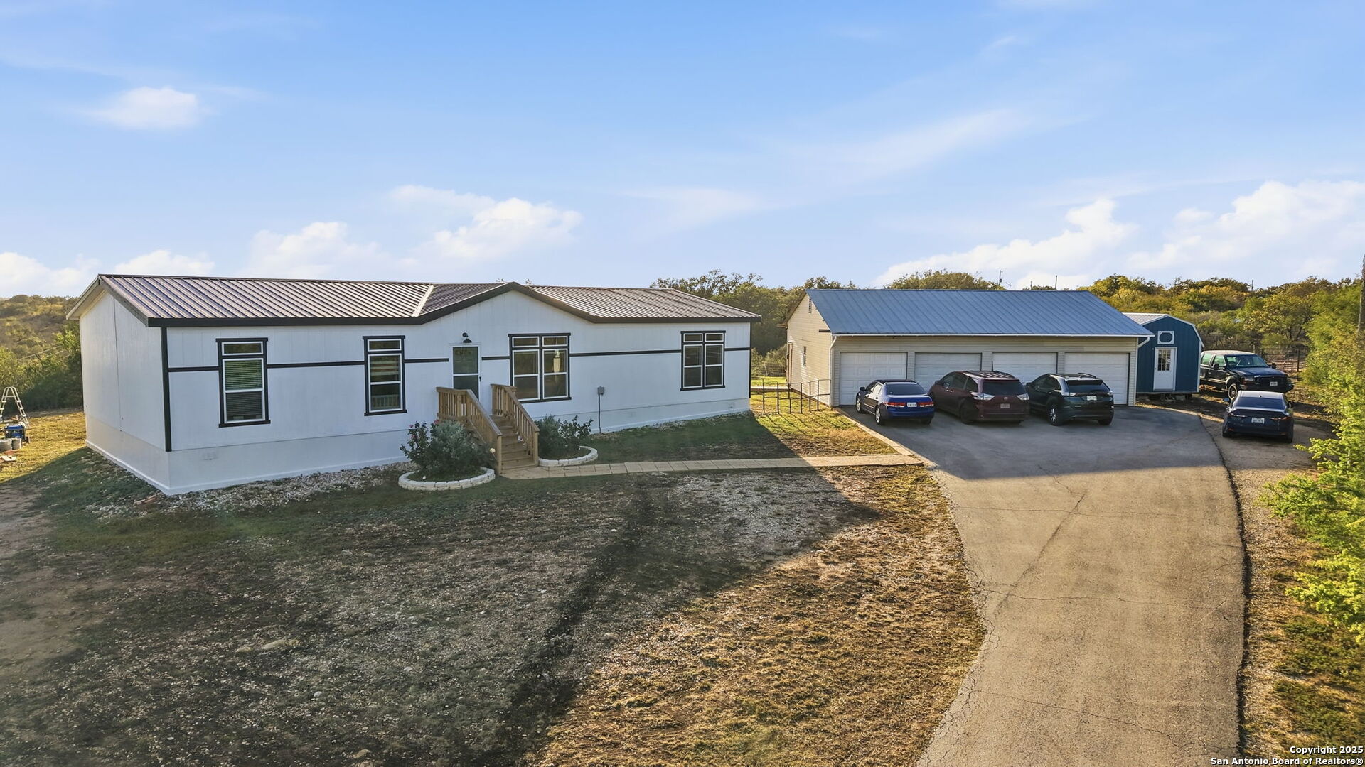 THIS 2024 HOME QUALIFIES for FHA, VA and USDA for NO DOWN PAYMENT!... Here's a rare opportunity to enjoy country living with hilltop views and still close to San Antonio! Come and see this gorgeous four bedroom two bath manufactured home located outside of Castroville city limits. This 1984 square-foot beauty sits on a wooded 5 acre hilltop where you can enjoy privacy, sunrises, sunsets, and stars! There is two additional buildings one is a cabin with utilities 2 bed and 1 bath. the other is spray foamed and has a mini-split AC. And don't forget the 4 Car Garage!