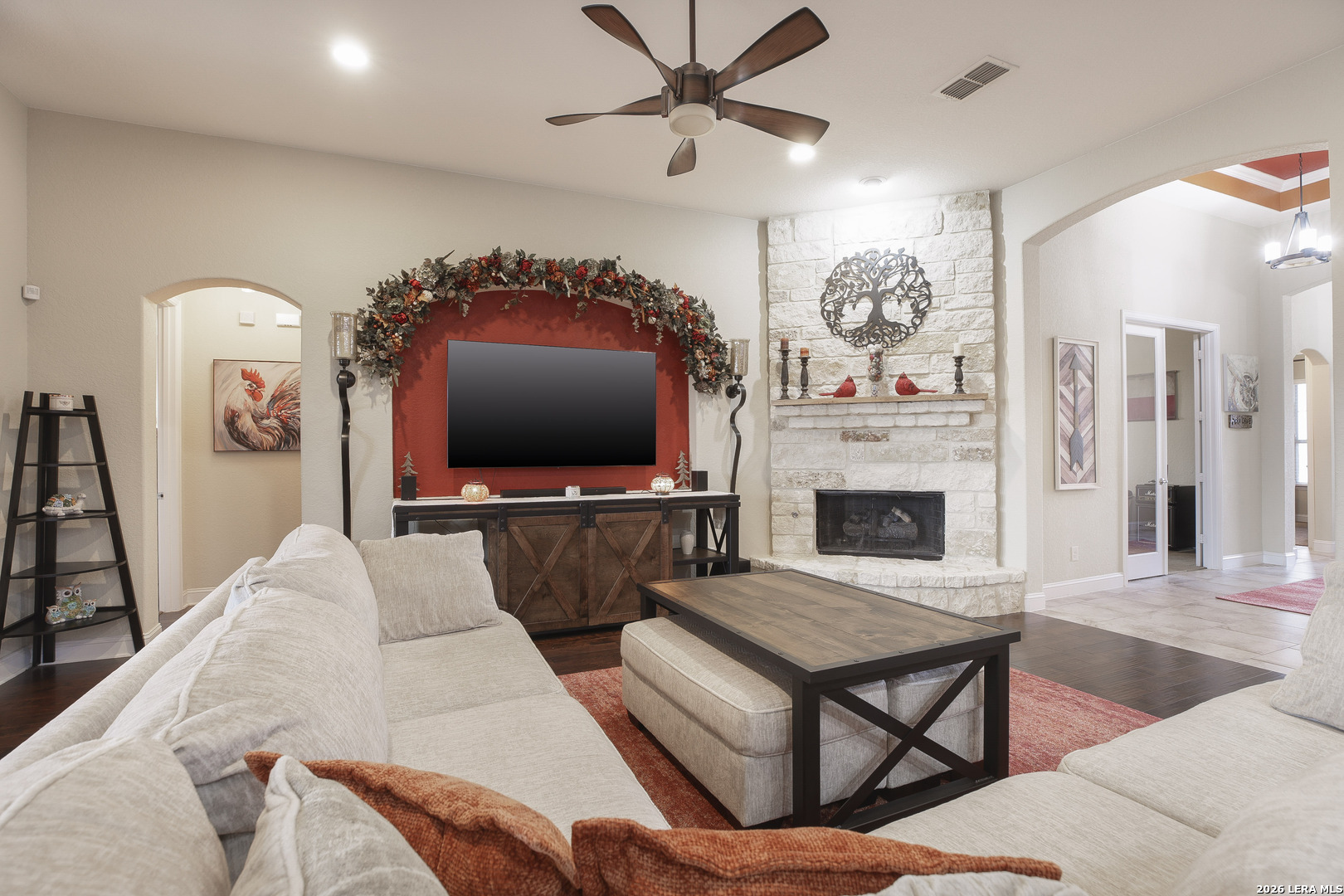 Stunning one-story home situated on an almost 3/4-acre lot, offering space, comfort, and upscale finishes throughout. This thoughtfully designed residence features 4 bedrooms, 3 full bathrooms, and a 3-car garage. The gourmet kitchen is a true centerpiece, showcasing granite countertops, an oversized island, and built-in appliances, perfect for everyday living and entertaining. The spacious primary suite includes a luxurious en-suite bath with dual vanities and walk-in closets. Enjoy outdoor living year-round on the large covered patio, which is completely screened in, and features custom concrete flooring, which continues into the garage for a polished, cohesive look. The home is also equipped with solar/privacy screens to enhance energy efficiency and comfort, as well as a water softener system. Situated on an expansive 3/4-acre lot, this property offers privacy, functionality, and room to breathe-all in a beautiful single-story layout. The home features an assumable VA loan at an incredible 2.25 interest rate (for qualified buyers) - a rare and valuable advantage in today's market.