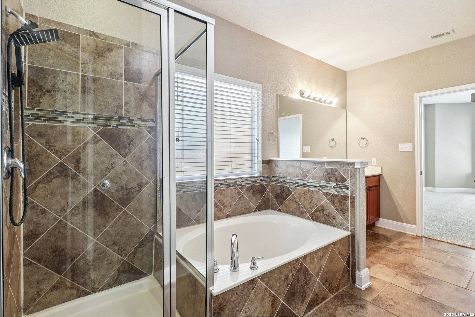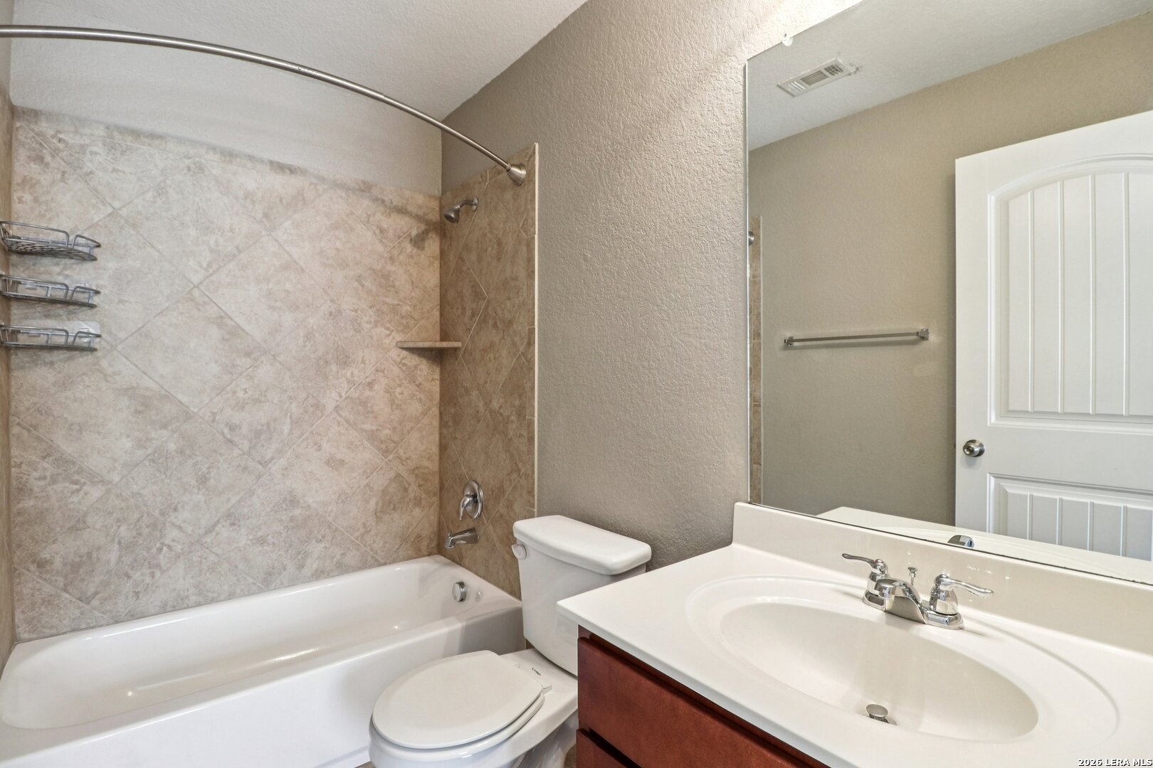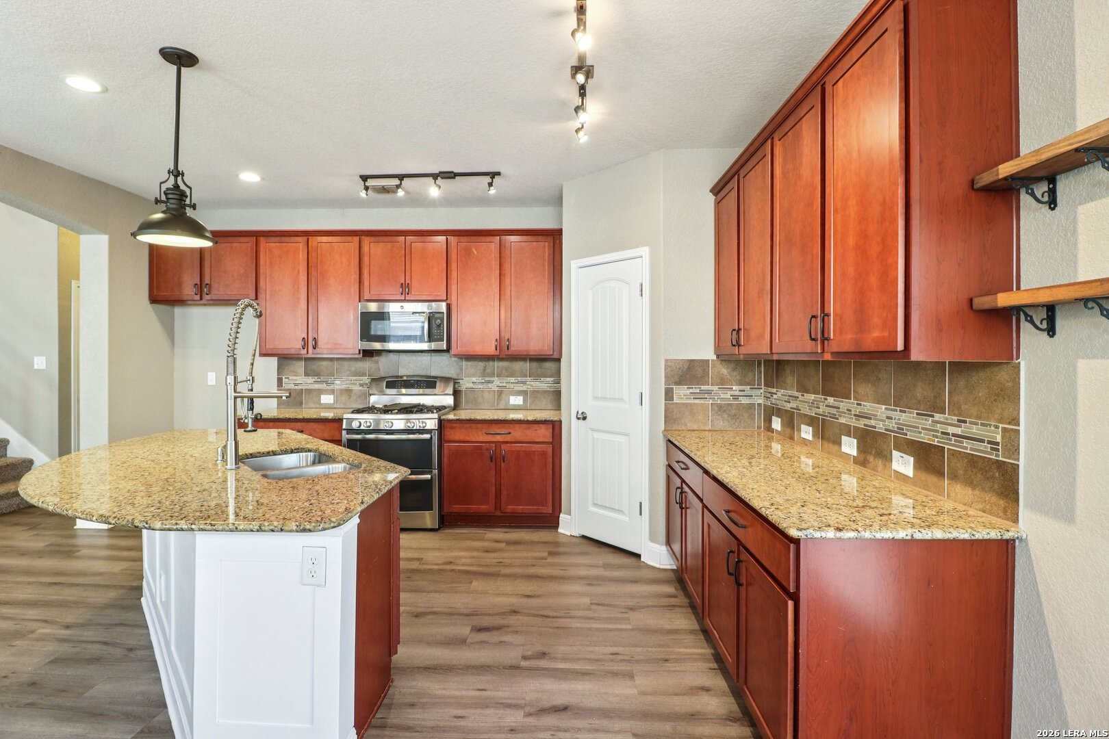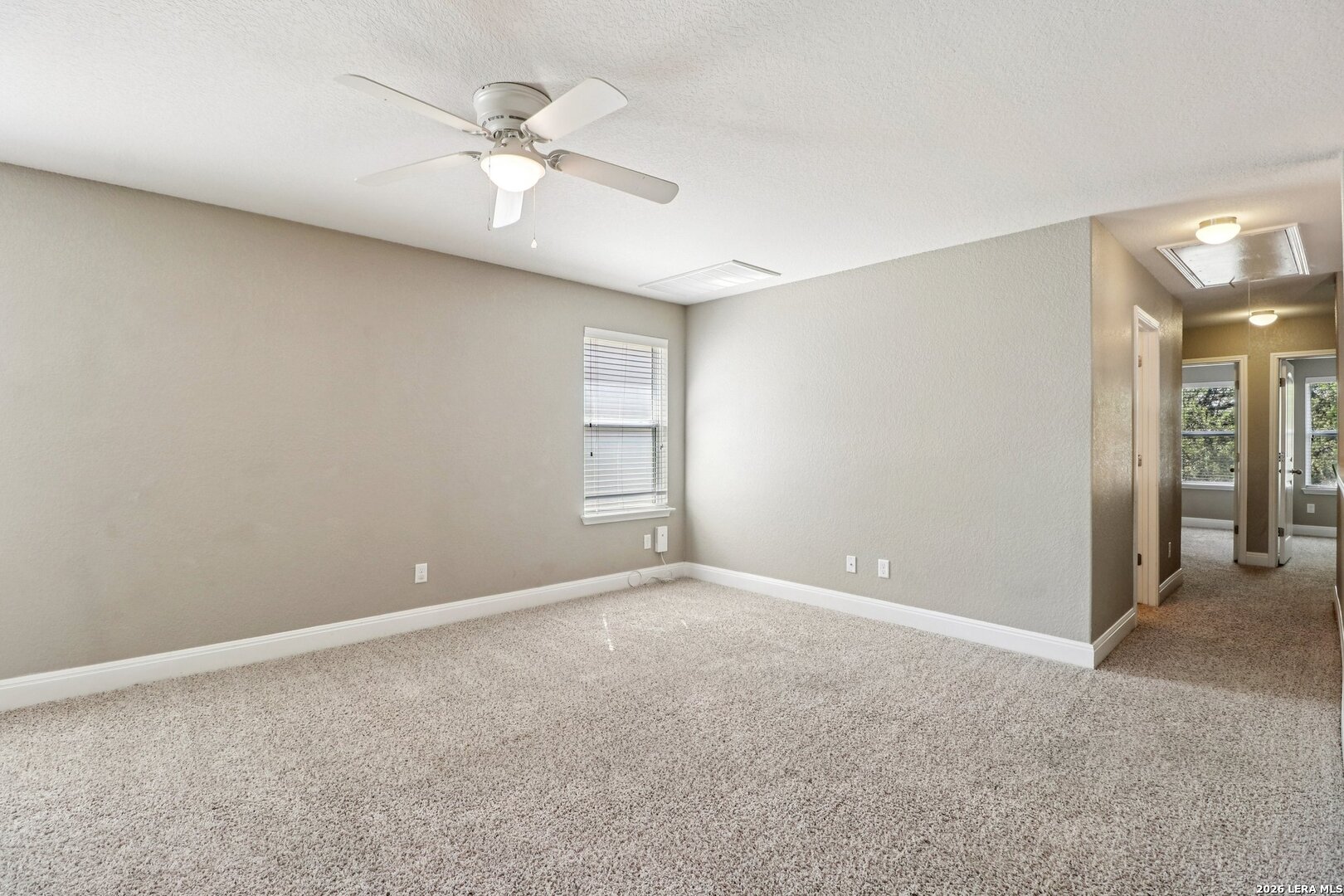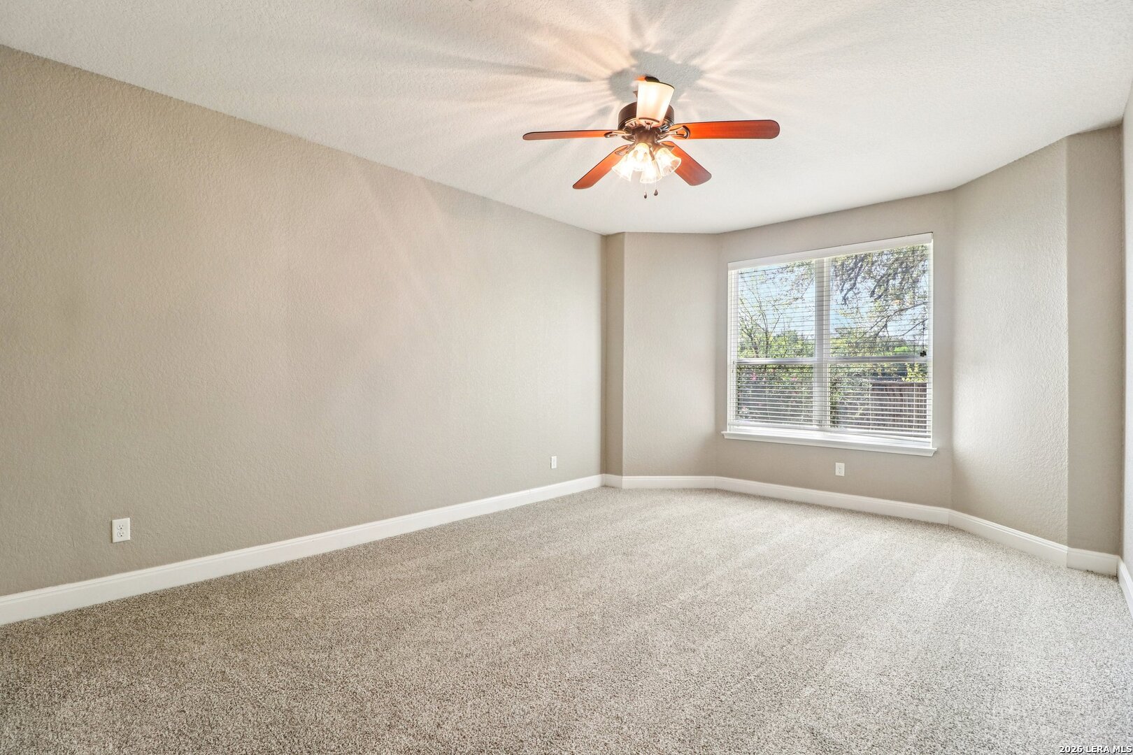 Alamo Ranch 2 Story Beauty. Features large covered Patio, Brick Patio Area, HUGE Mature Tree, Storage Shed and Privacy Fence. Separate office at the entrance, and the Family Room has Soaring 2 Story Tall Ceilings that are open to the upstairs loft area. The Island Kitchen features Granite Counters, TONS of Counter Space and Storage, Stainless Appliances, Double Oven, Upgraded Microwave, Pot Fill type Faucet. The Master Bedroom is downstairs and has a large walk-in closet with plenty of organizers. *Solar Panels are owned by a 3rd party and a CPS Credit is given based on the amount of energy generated. See Solar Panel Disclosure for details*