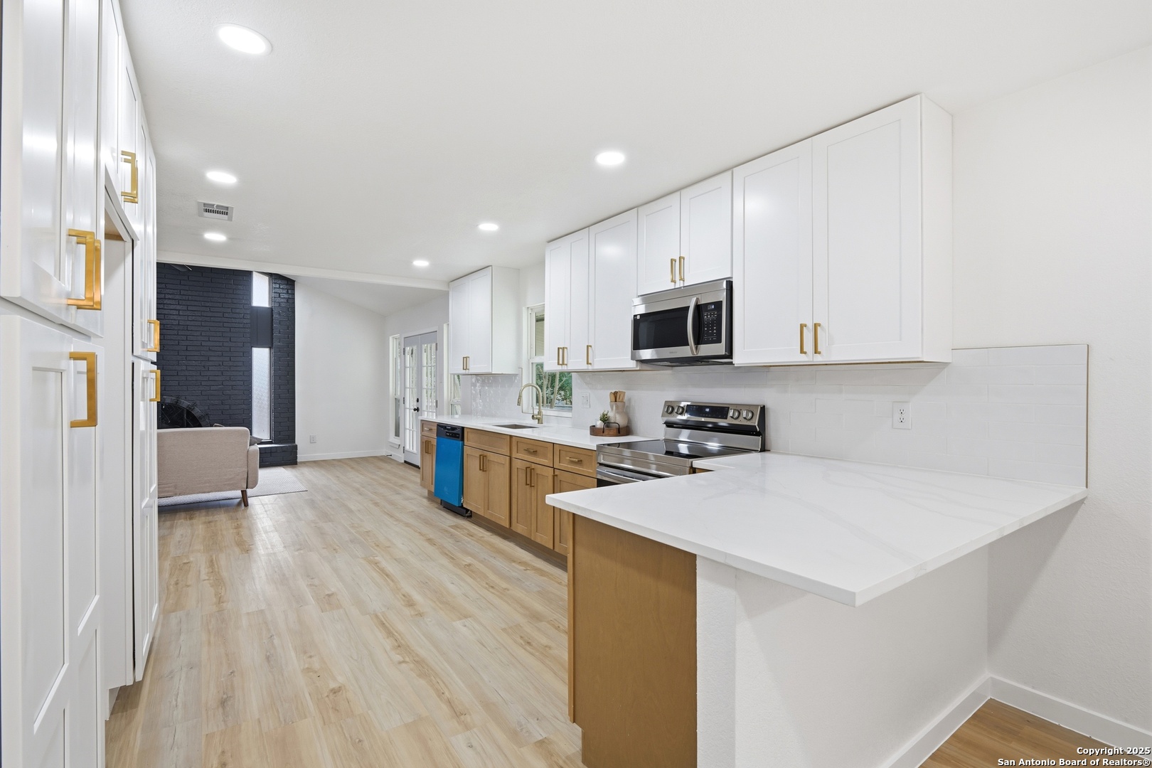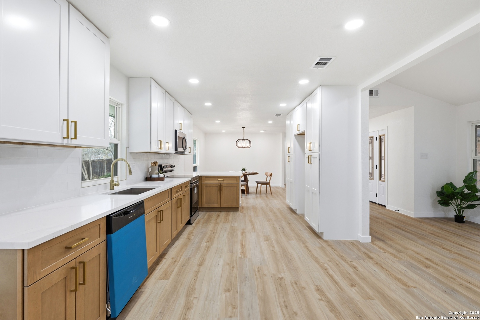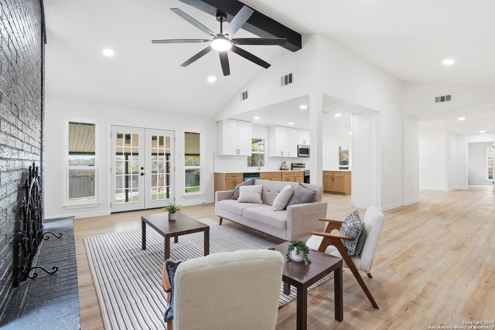 Fully Remodeled Home in Seneca Estates - This beautifully updated 4-bedroom, 2-bath home in the established Seneca Estates neighborhood of Leon Valley offers a fresh, modern living experience with convenient access to Loop 410, the Medical Center, and a variety of nearby shopping and dining options. With approximately 2,091 square feet of living space (per BCAD), this home has undergone a comprehensive renovation. Interior improvements include updated flooring throughout, fresh paint, and a reconfigured layout featuring a spacious Kitchen. Both bathrooms have been fully updated with contemporary vanities, fixtures, and finishes. Ceiling fans have been installed in all bedrooms and living areas for added comfort. The home also includes a fireplace and a two-car garage. Outdoors, the large backyard features a covered patio, privacy fencing, and a side gate for convenient access.